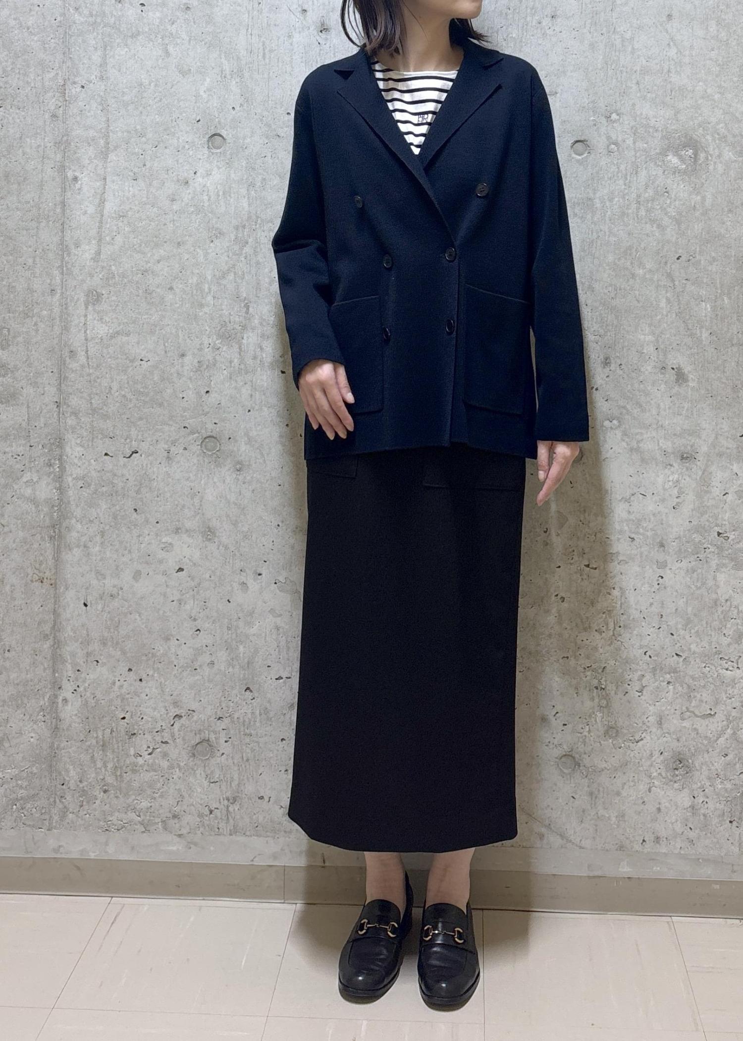 ROPÉミラノリブ ニットダブルジャケット/イージーケアネイビー / 36¥29,260レビュー身長163cm、36サイズ着用。
