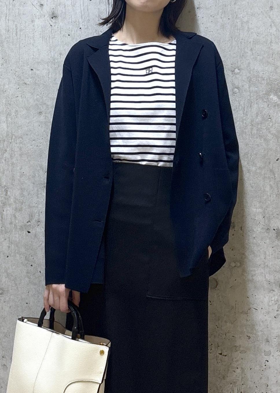 ボーダーカットソーを合わせて、カジュアルダウンしたコーディネイトにしました。