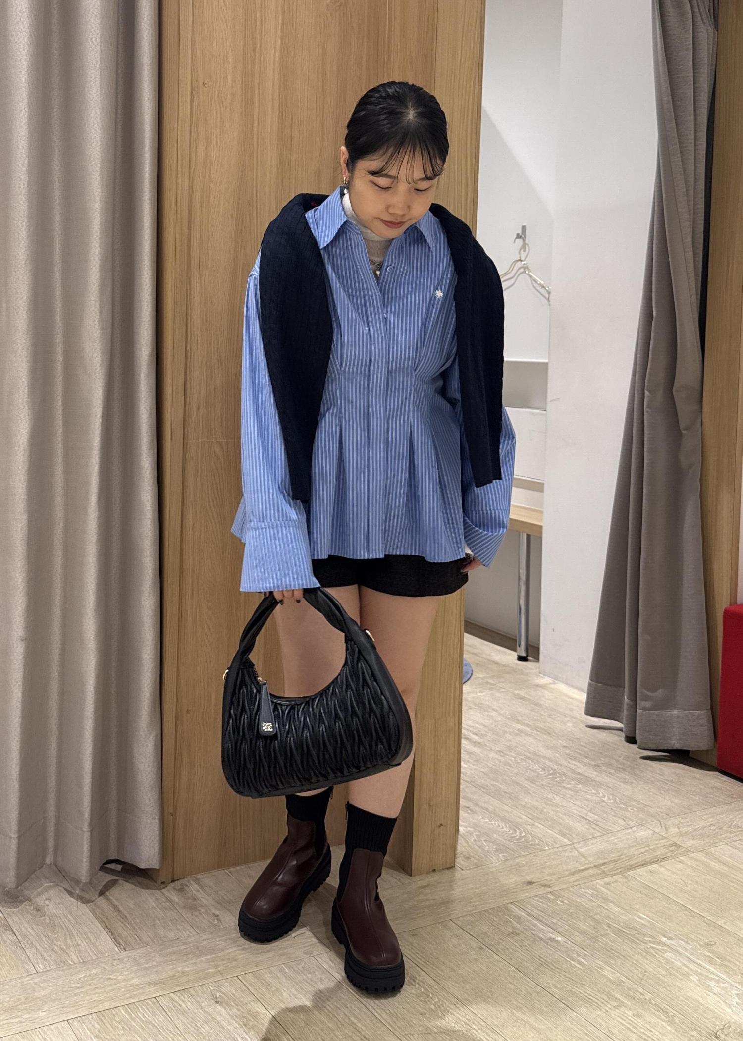 VIS【POLOBCS】VIS別注ウエストタックフレアシャツブルー系 / F¥6,930レビュー153cmの私ですが、ヒップが隠れるくらいの丈感です。