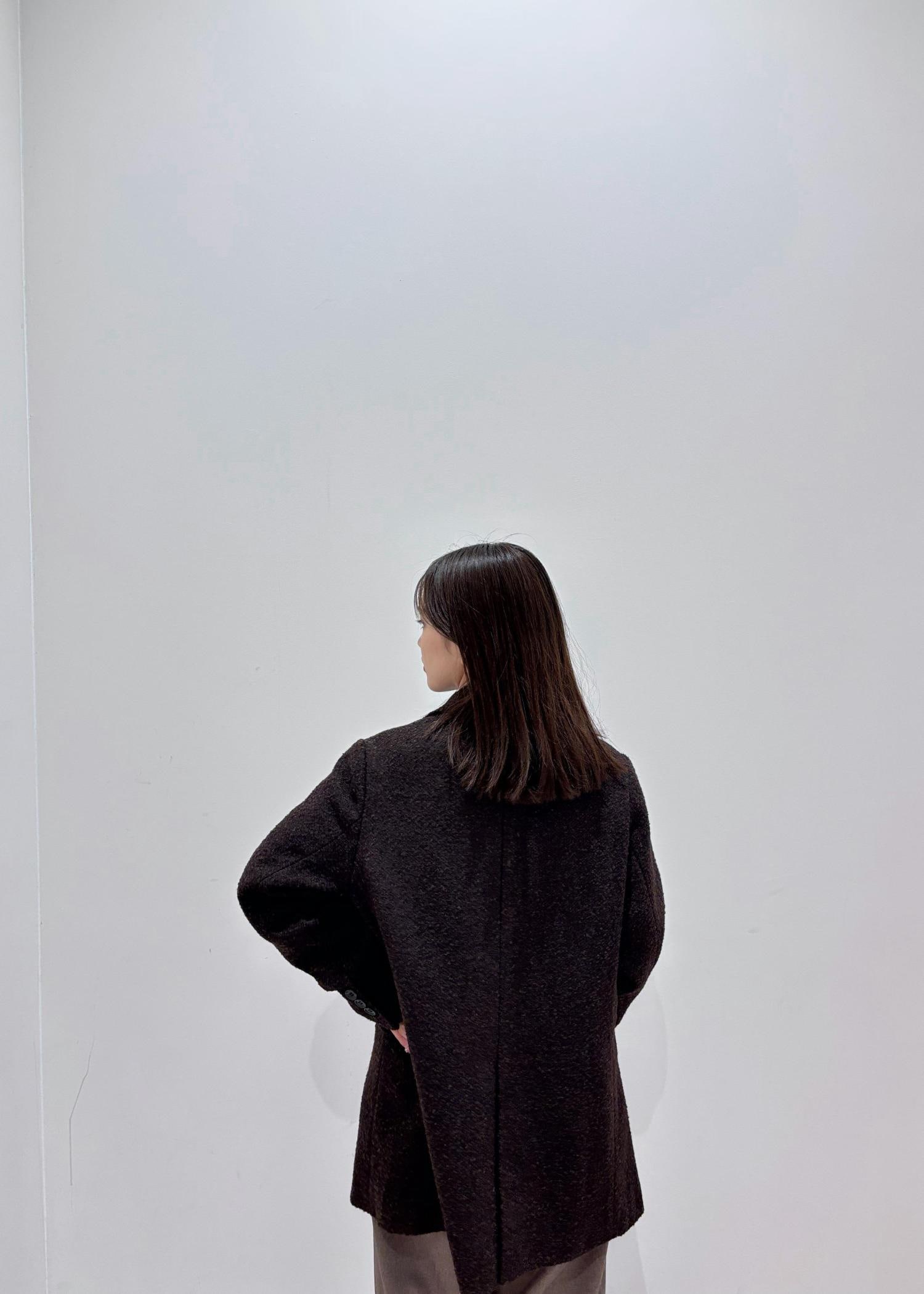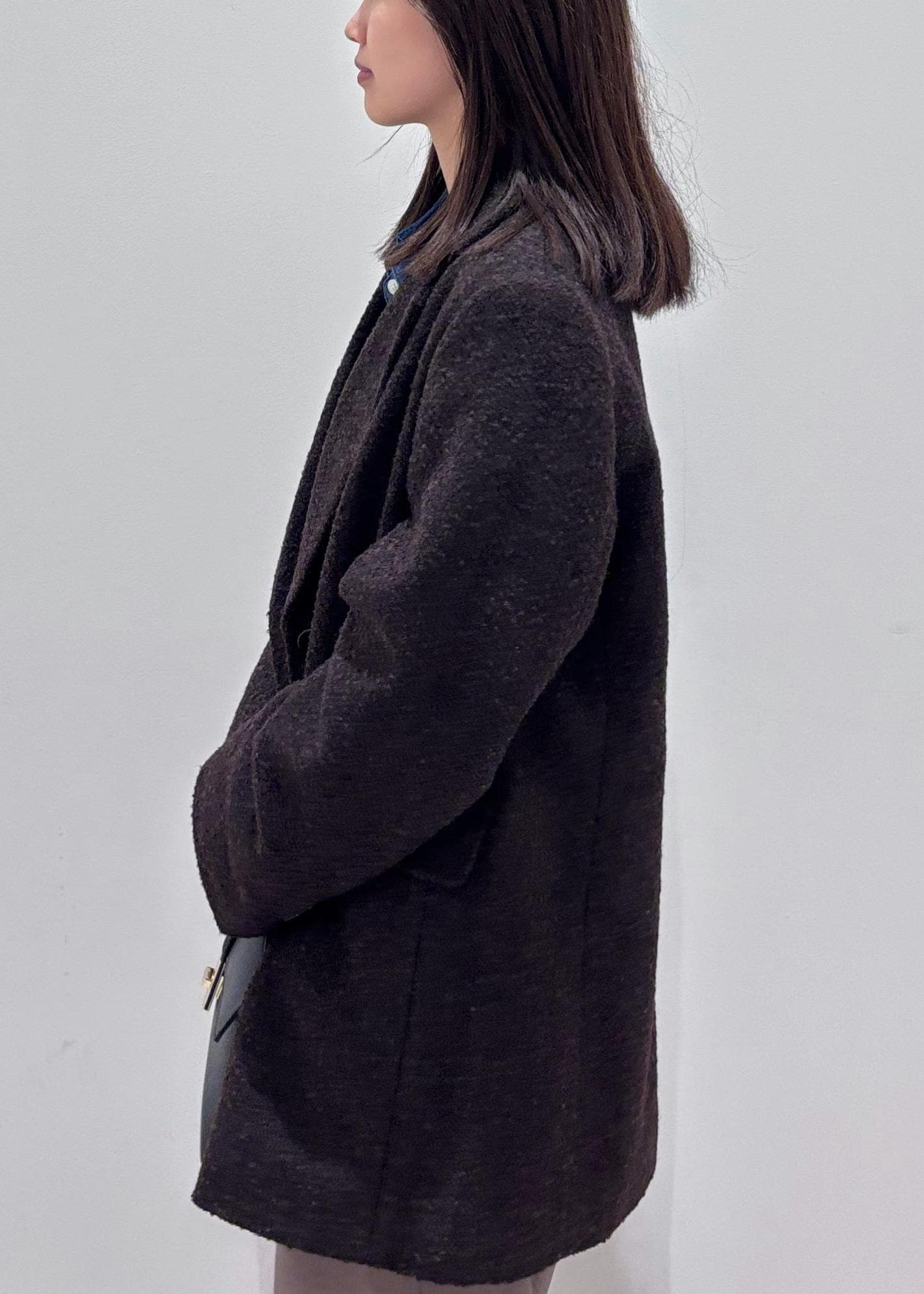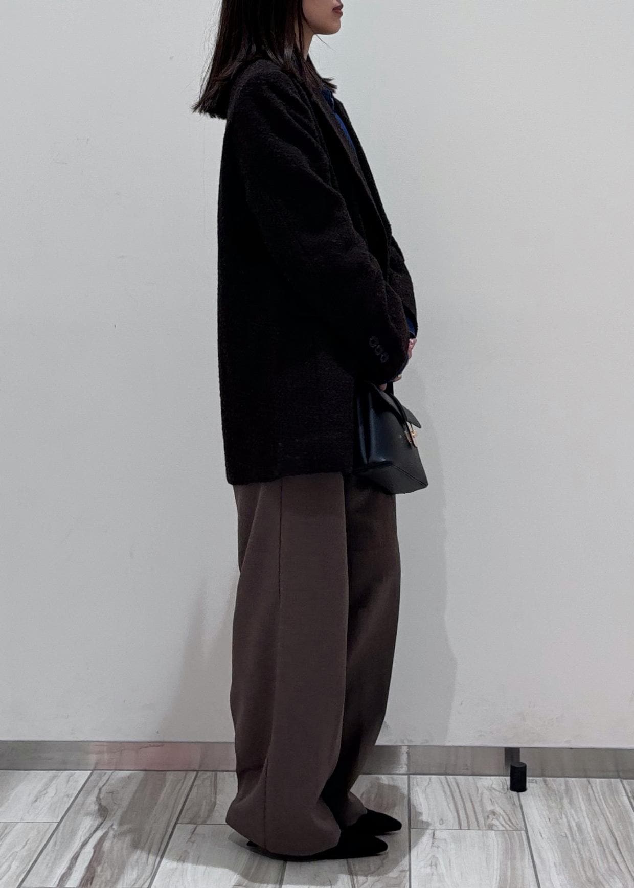 ROPÉ PICNICネップツイードテーラードジャコットダークブラウン系 / F¥13,200レビュー154センチで、お尻がすっぽり隠れるほどの長さです。落ち着いた色味のコートとジャケットのいいとこ取りをしたアウターなので、しっかり暖かく、ゆとりのある作りで、中に地厚なニットも着込めます。