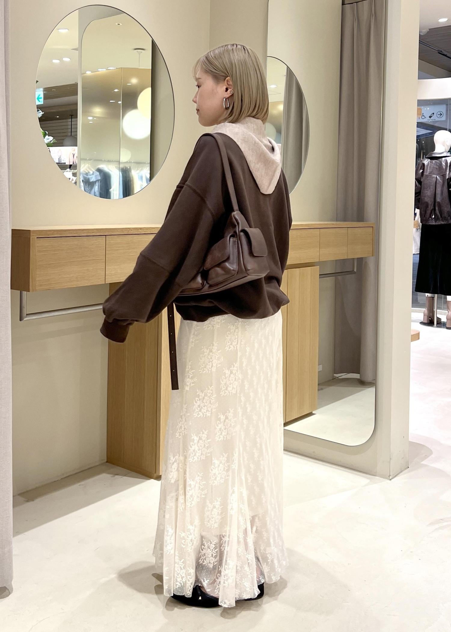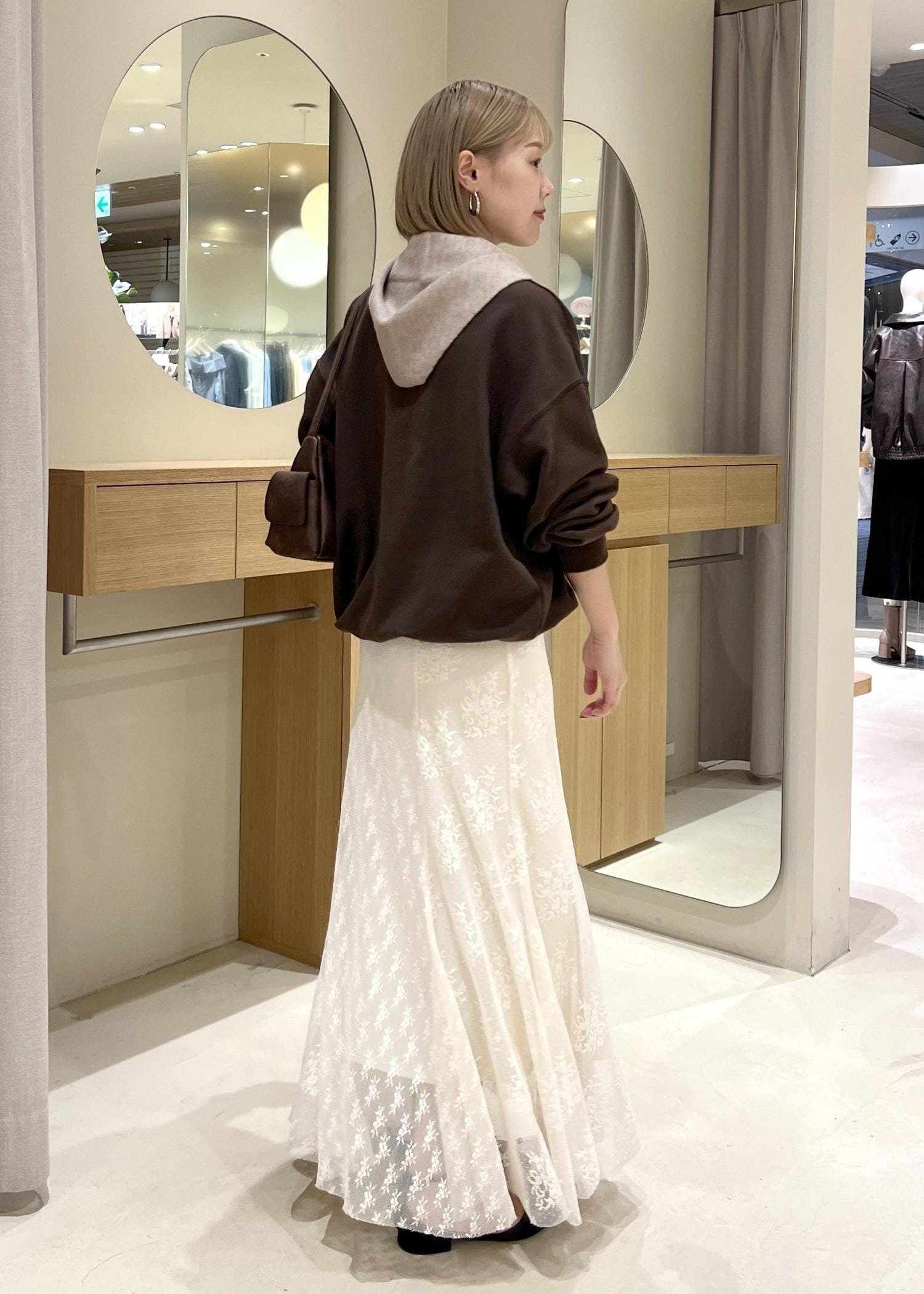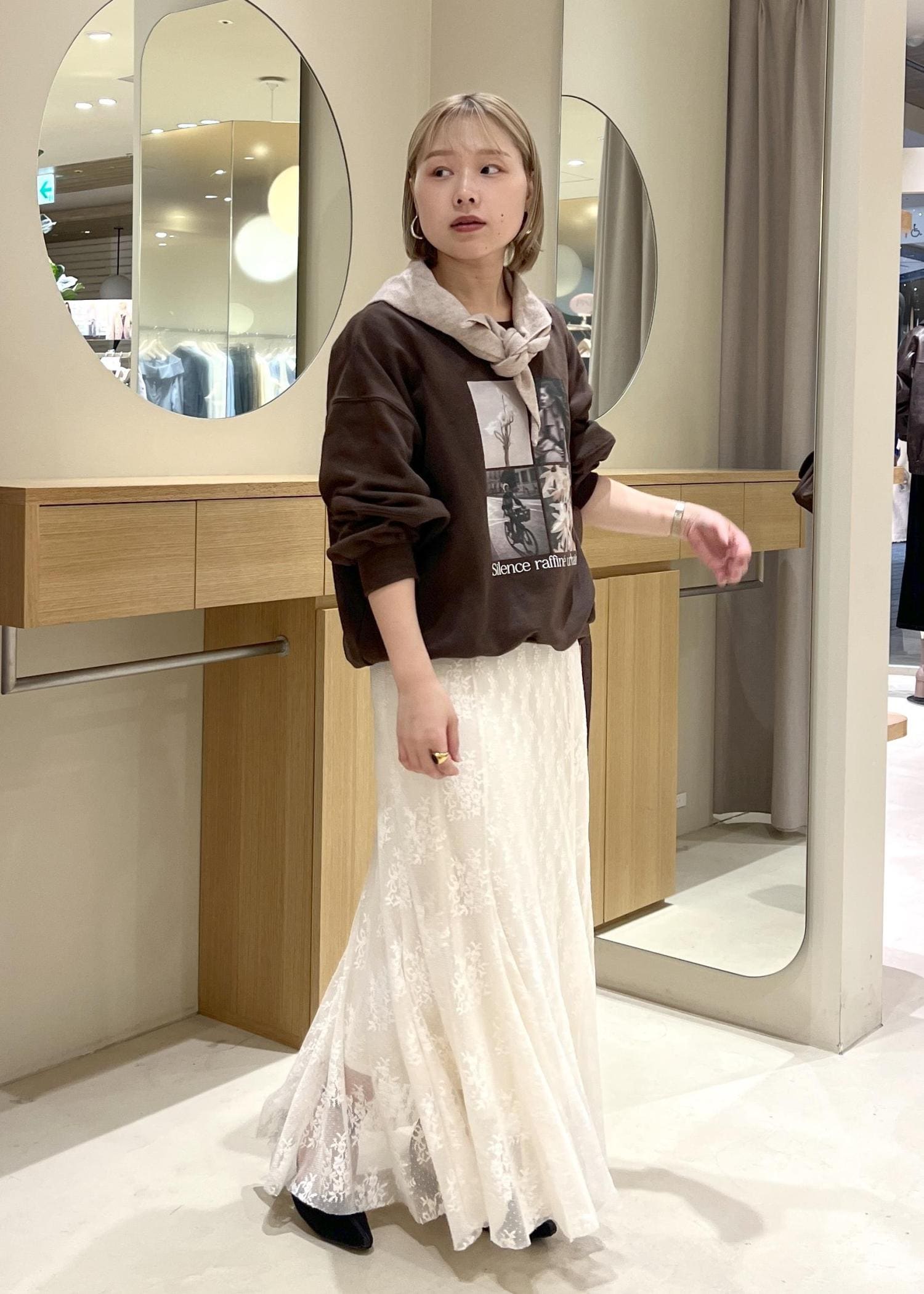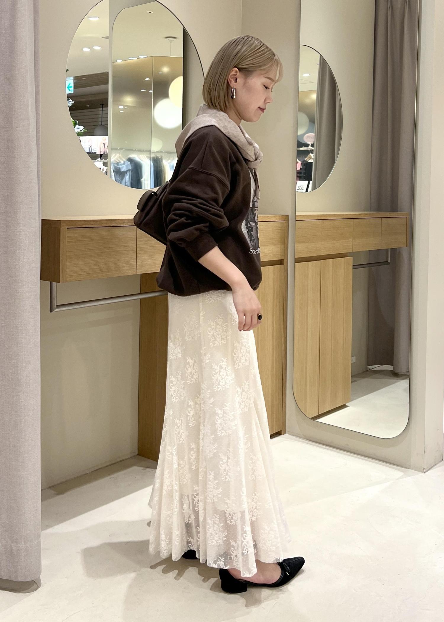ニットスカーフを合わせることで、”今っぽフェミニン感”を