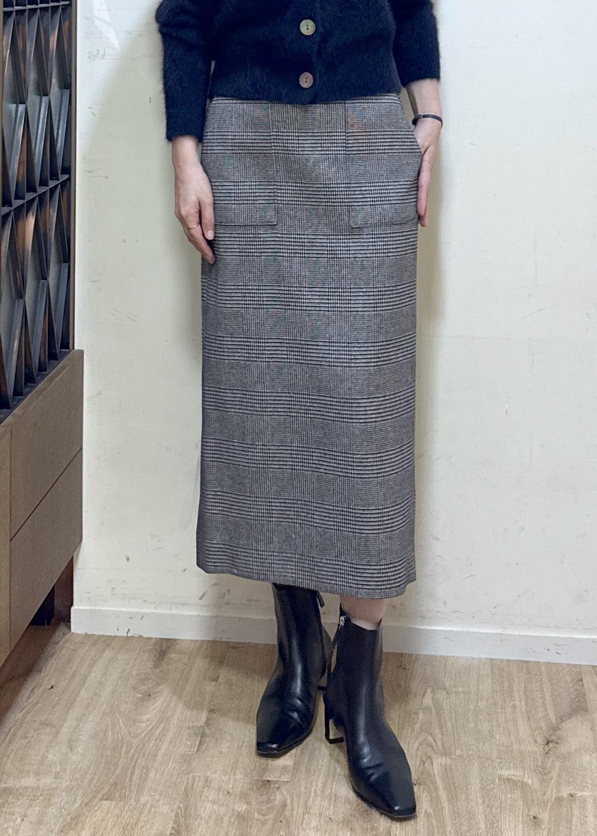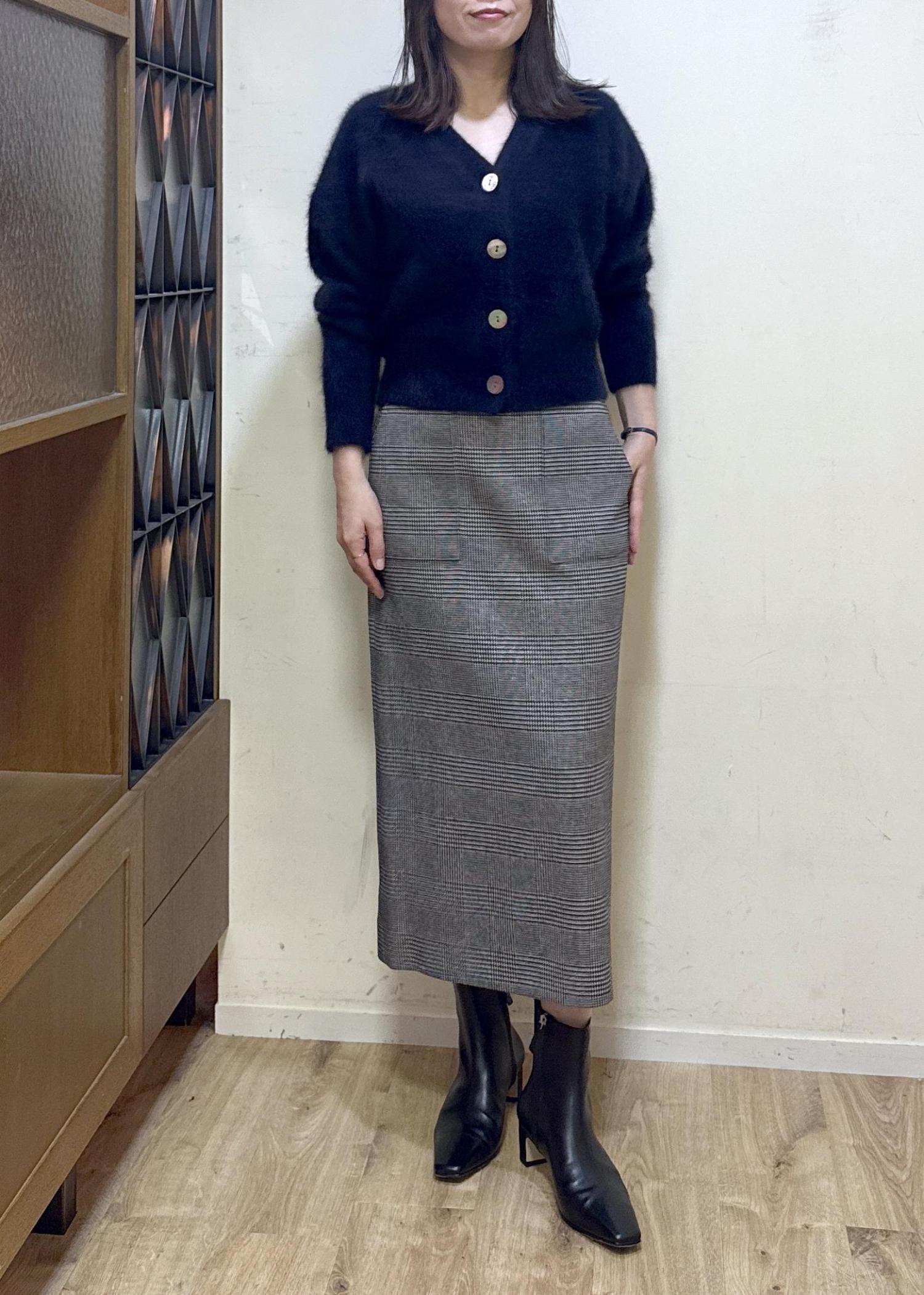 NEW!ROPÉ[美人スカート]ウールレーヨンポケット付きタイトスカート(ヘリンボーン/グレンチェック)/セットアップ対応ブラック系 / 38¥25,300レビュー163センチ 38サイズ着用
