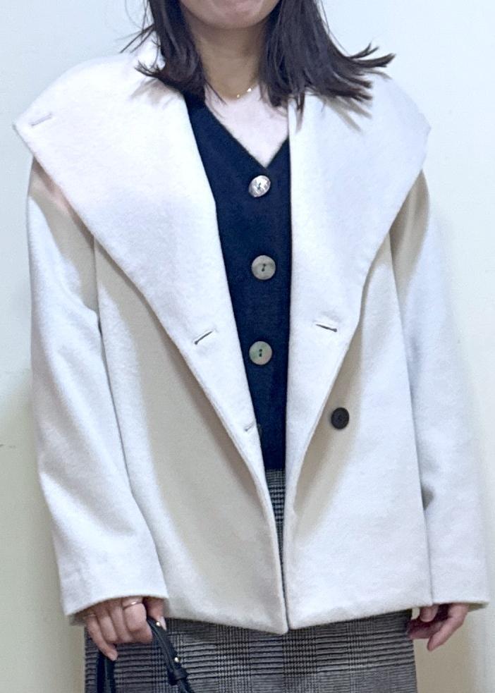 NEW!ROPÉプレミアムカシミヤ ショートコート【25AW】オフホワイト / 38¥53,900レビュー163センチ 38サイズ着用