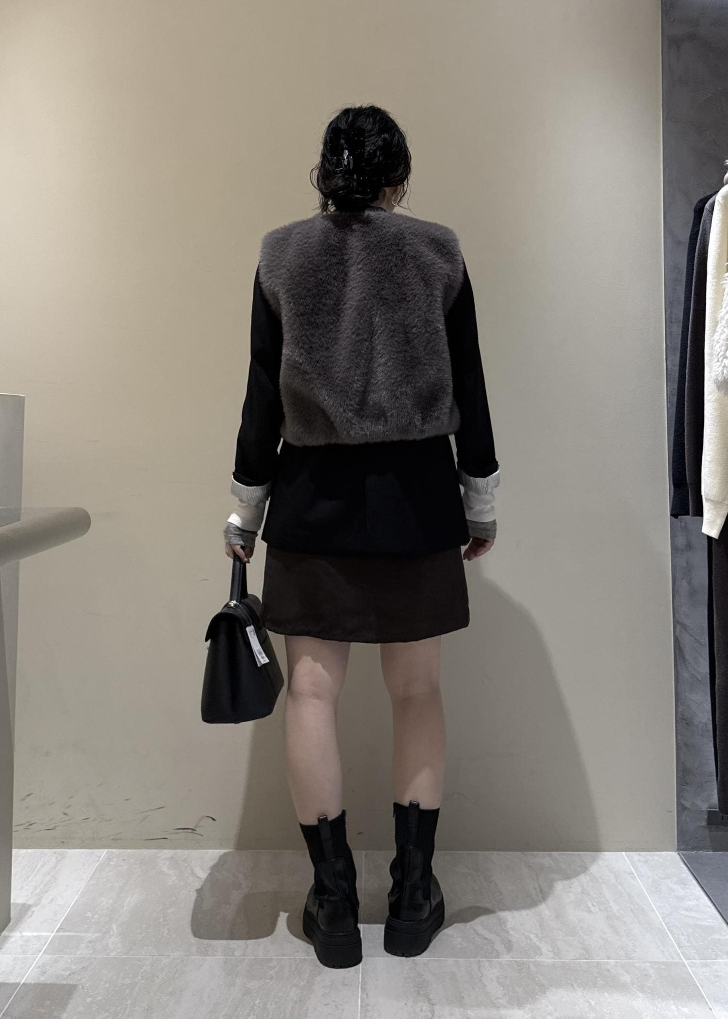 VISアソートファーショートベストグレー系 / F¥8,899レビュー凄く質の良いファー素材で柔らかくて気持ちいい触り心地。軽くて、アームフォールも広めなのでレイヤードもしやすいです!