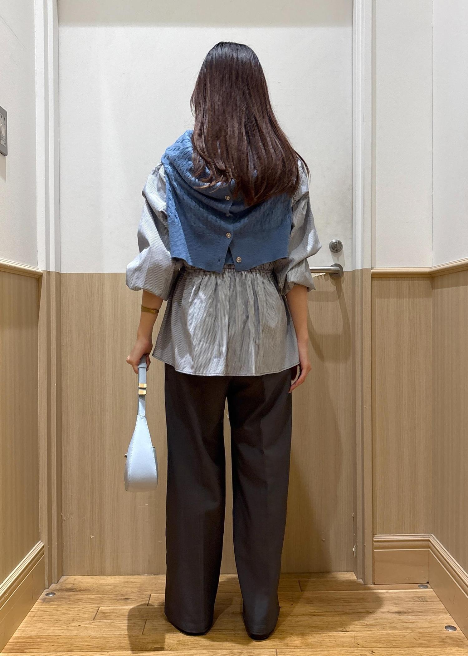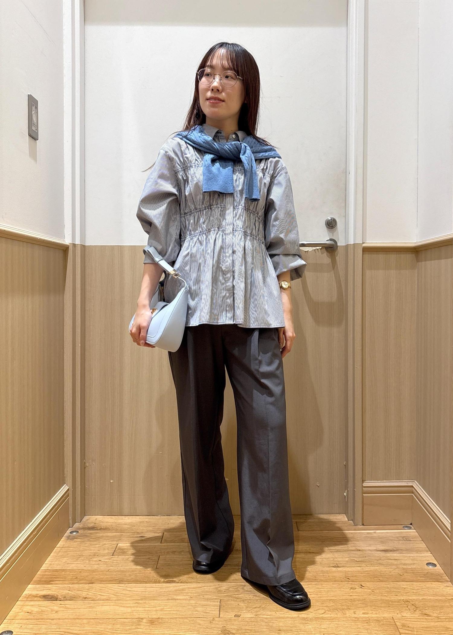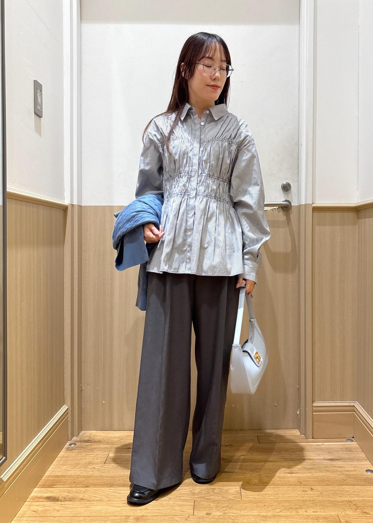VISシャーリングデザインシャツネイビー系 / F¥5,489レビューシャーリングデザインがウエストをきゅっと見せてくれるので、ワイドパンツ合わせでも重たく見えません◎