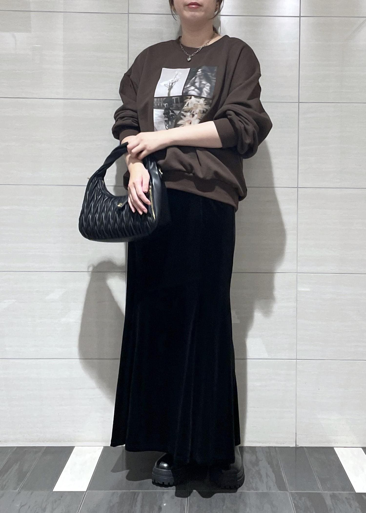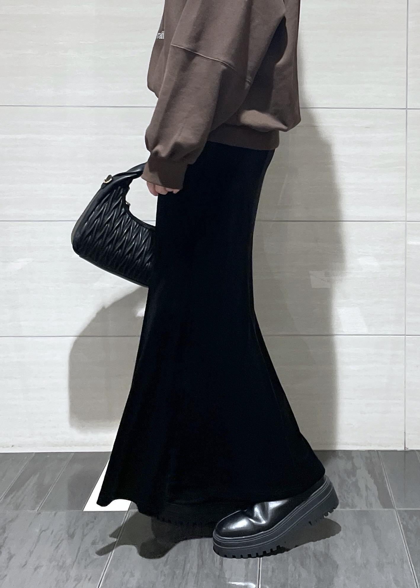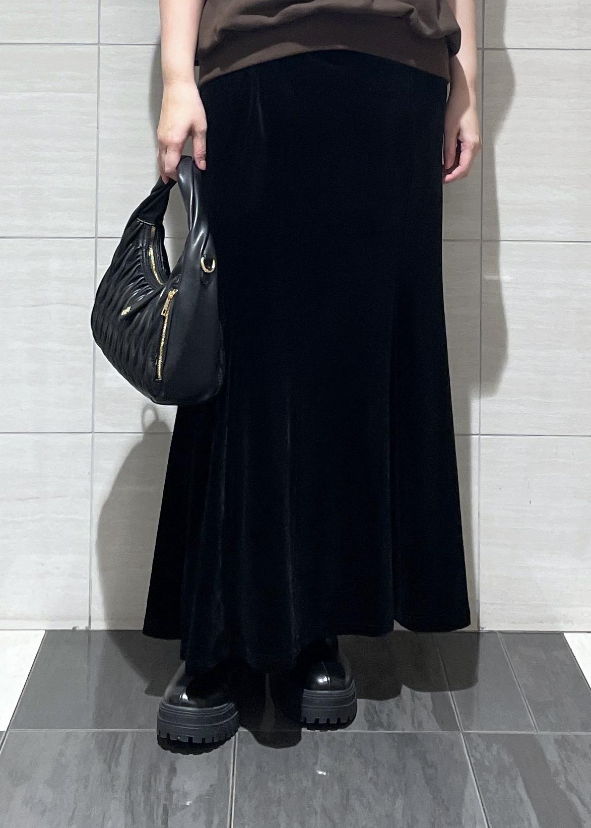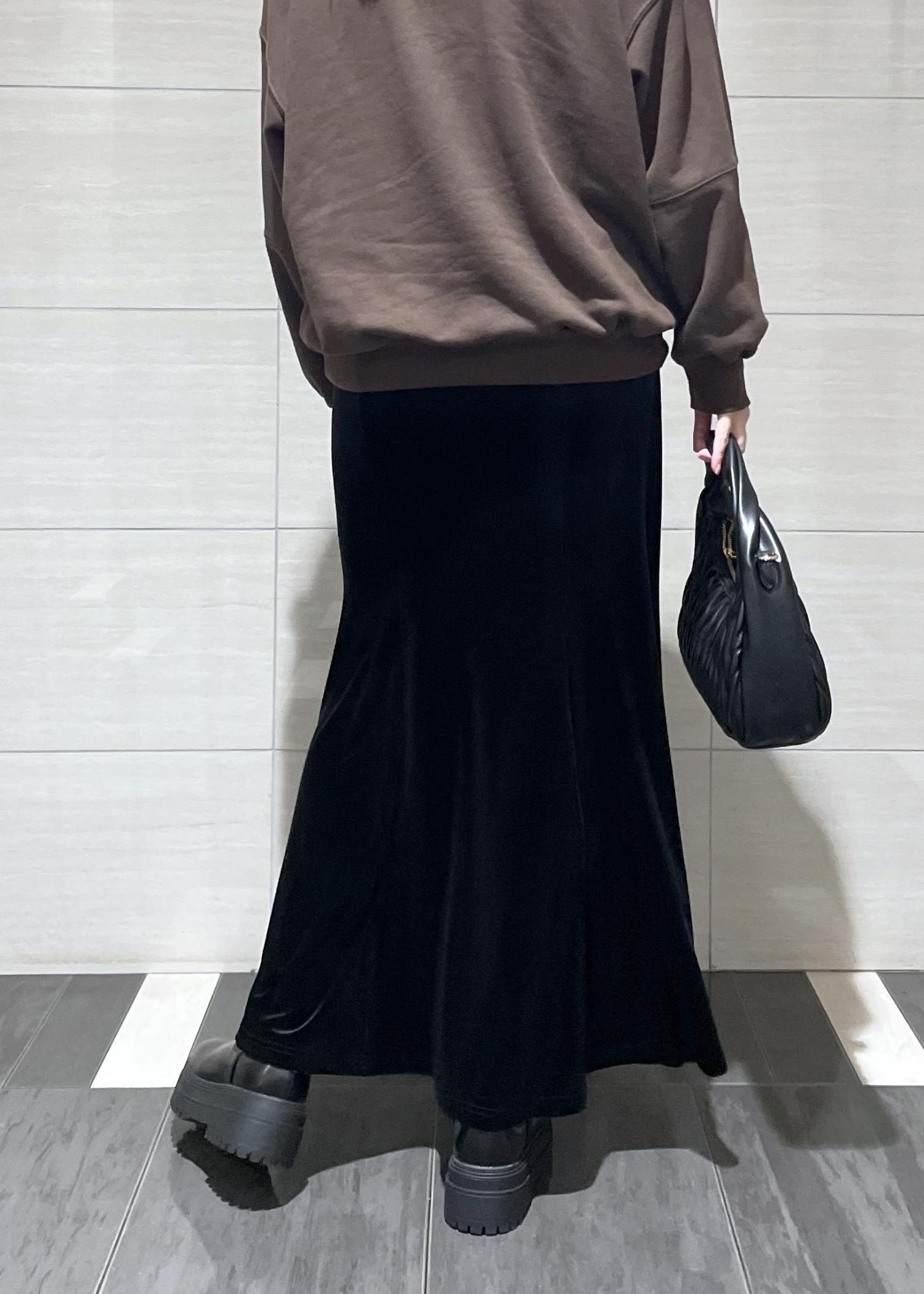 VISベロアナロースカートブラック / M¥6,589レビュー163cm Mサイズ着用でウエスト折り返しせずでくるぶしくらいの丈感です。高身長でも丈感がしっかりあるのでバランスが取りやすいです。柔らかい厚めのベロア生地なので身体のラインを拾わずに気になる腰回りもカバーしてくれます◎