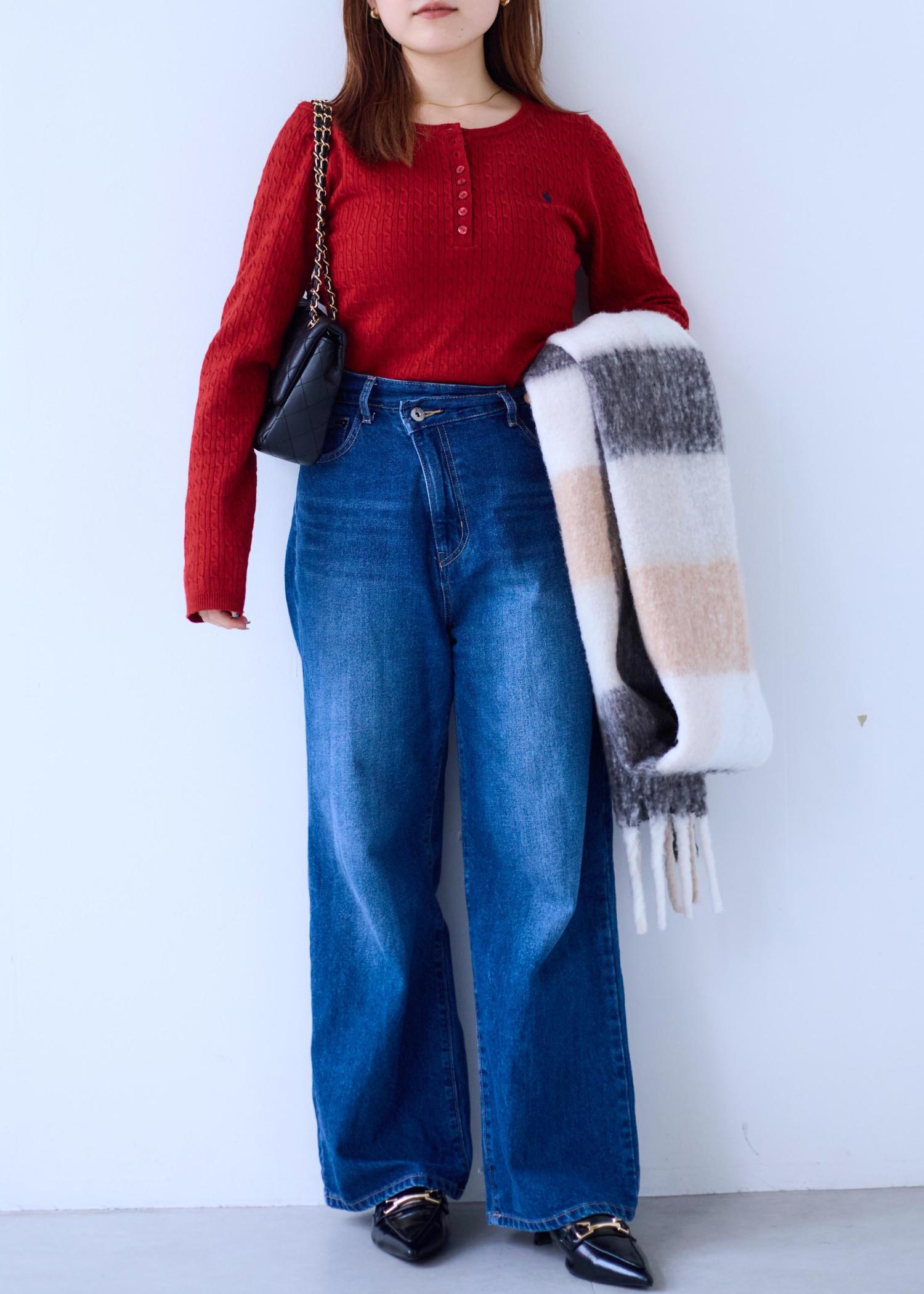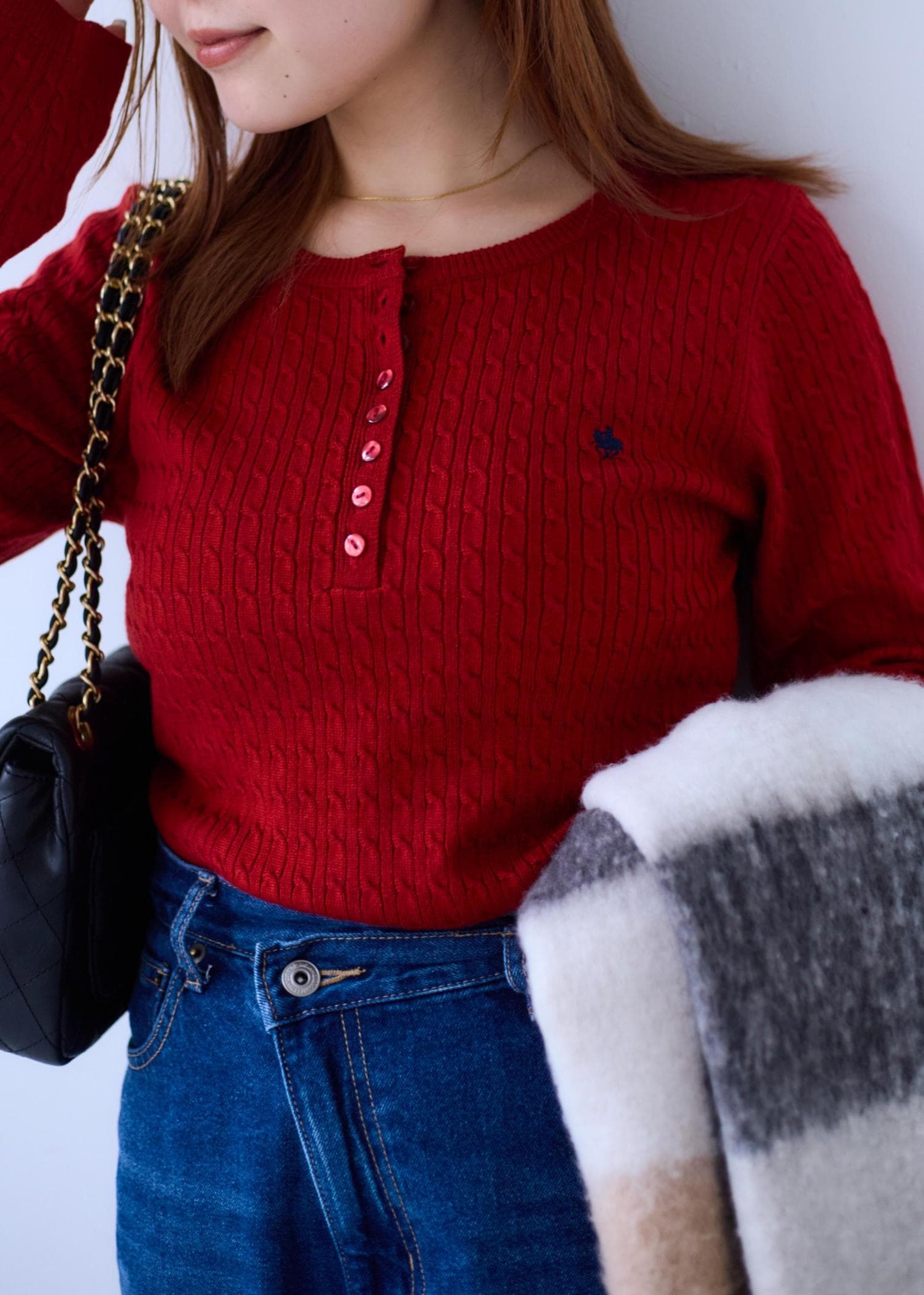 VIS【POLO BCS】VIS別注ヘンリーネックミニケーブルニットトップスレッド系 / F¥6,600レビュー身長150センチお尻半分かかる丈感