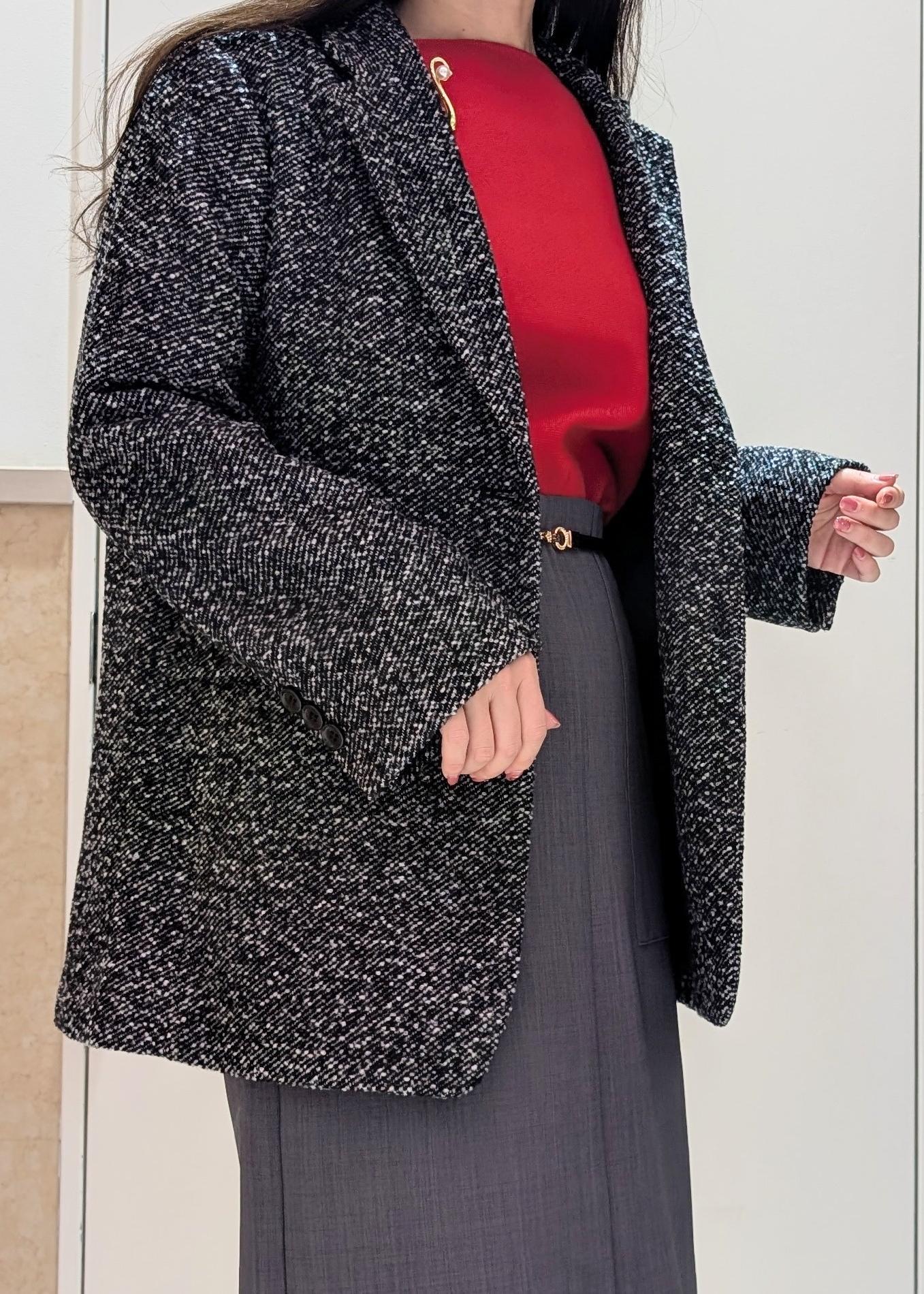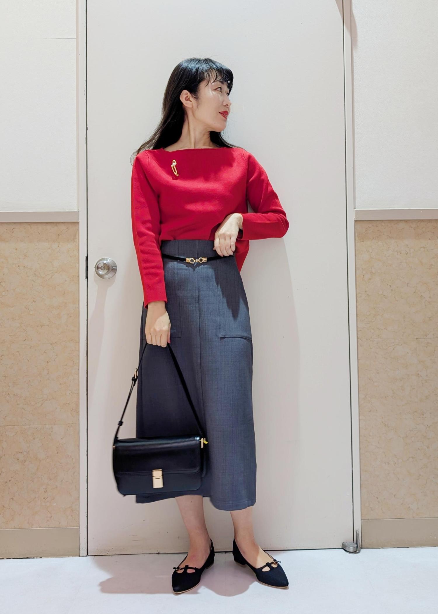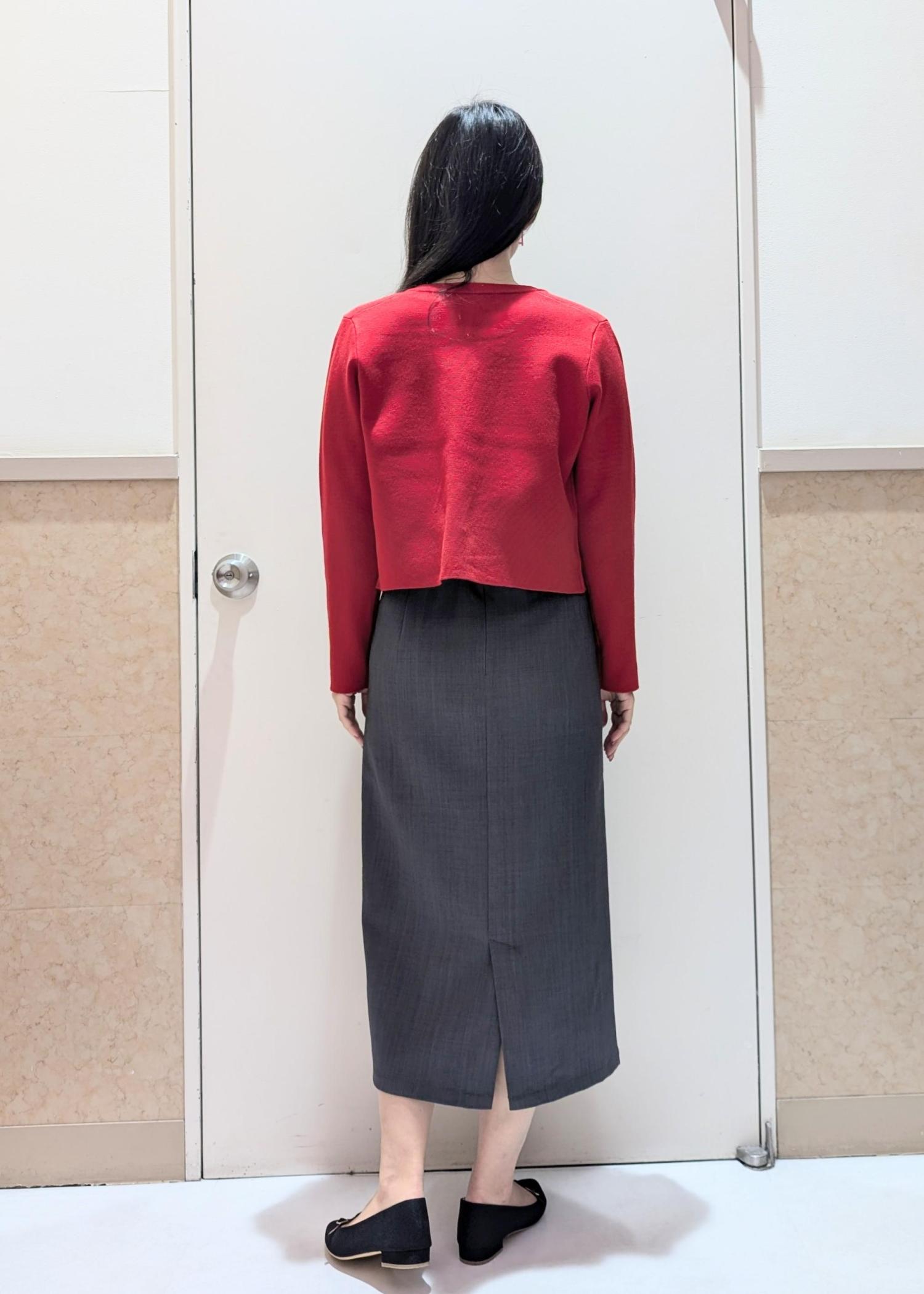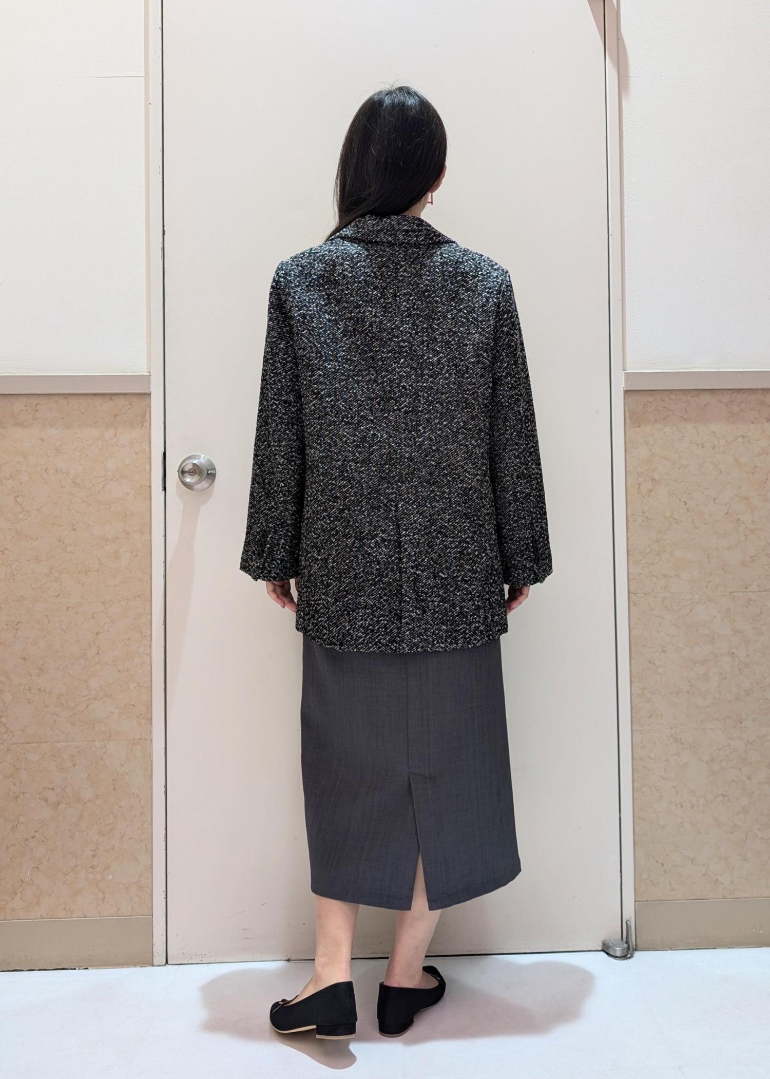 ジャケットがややビッグシルエットなので、ボトムははタイトスカートでバランスを取りました(^^)