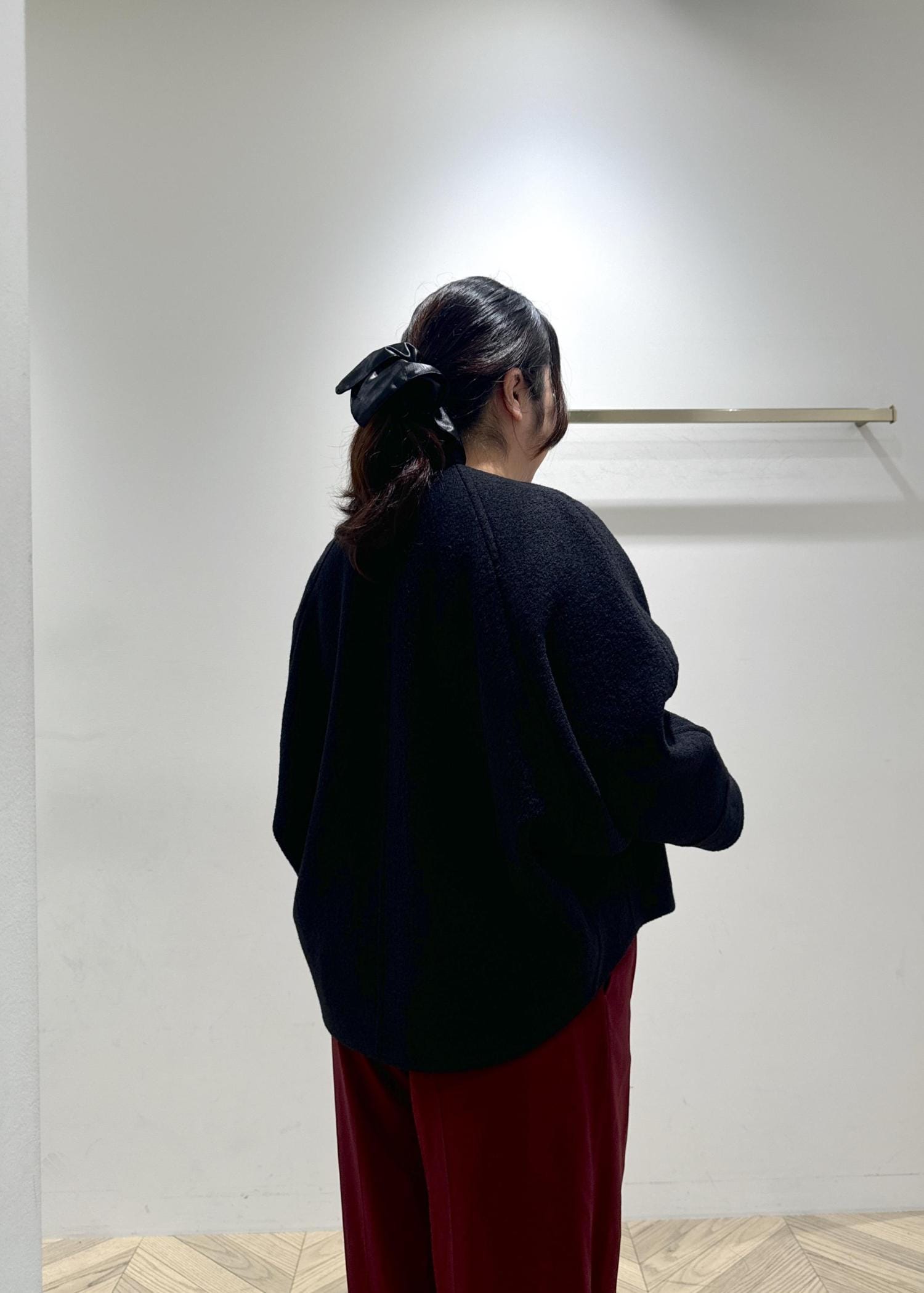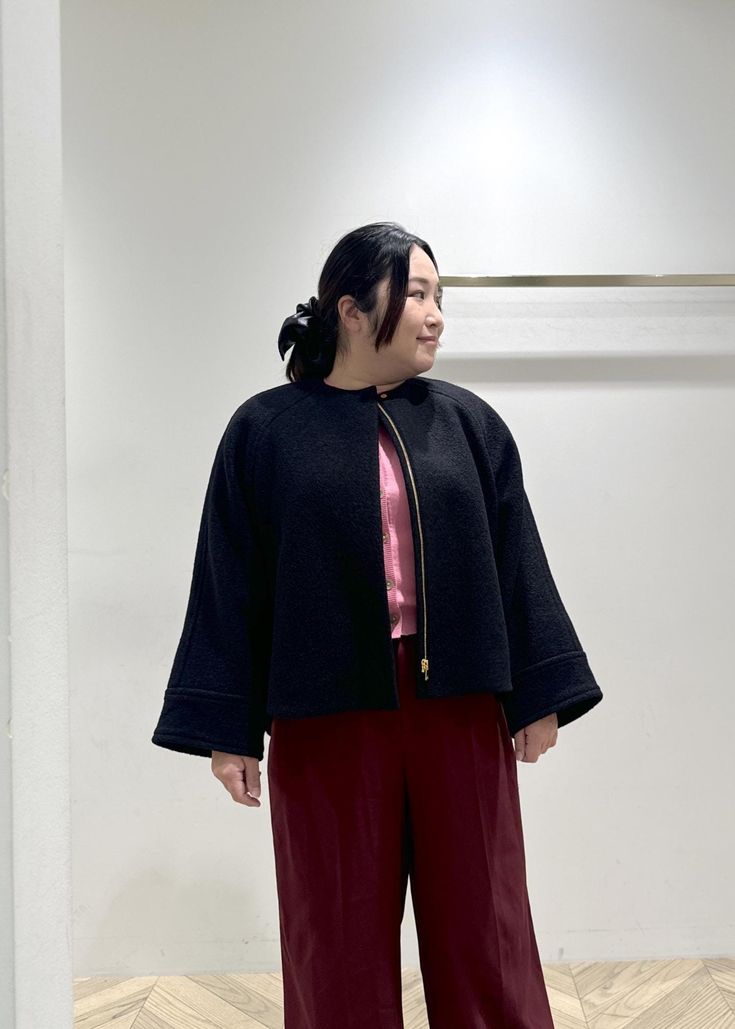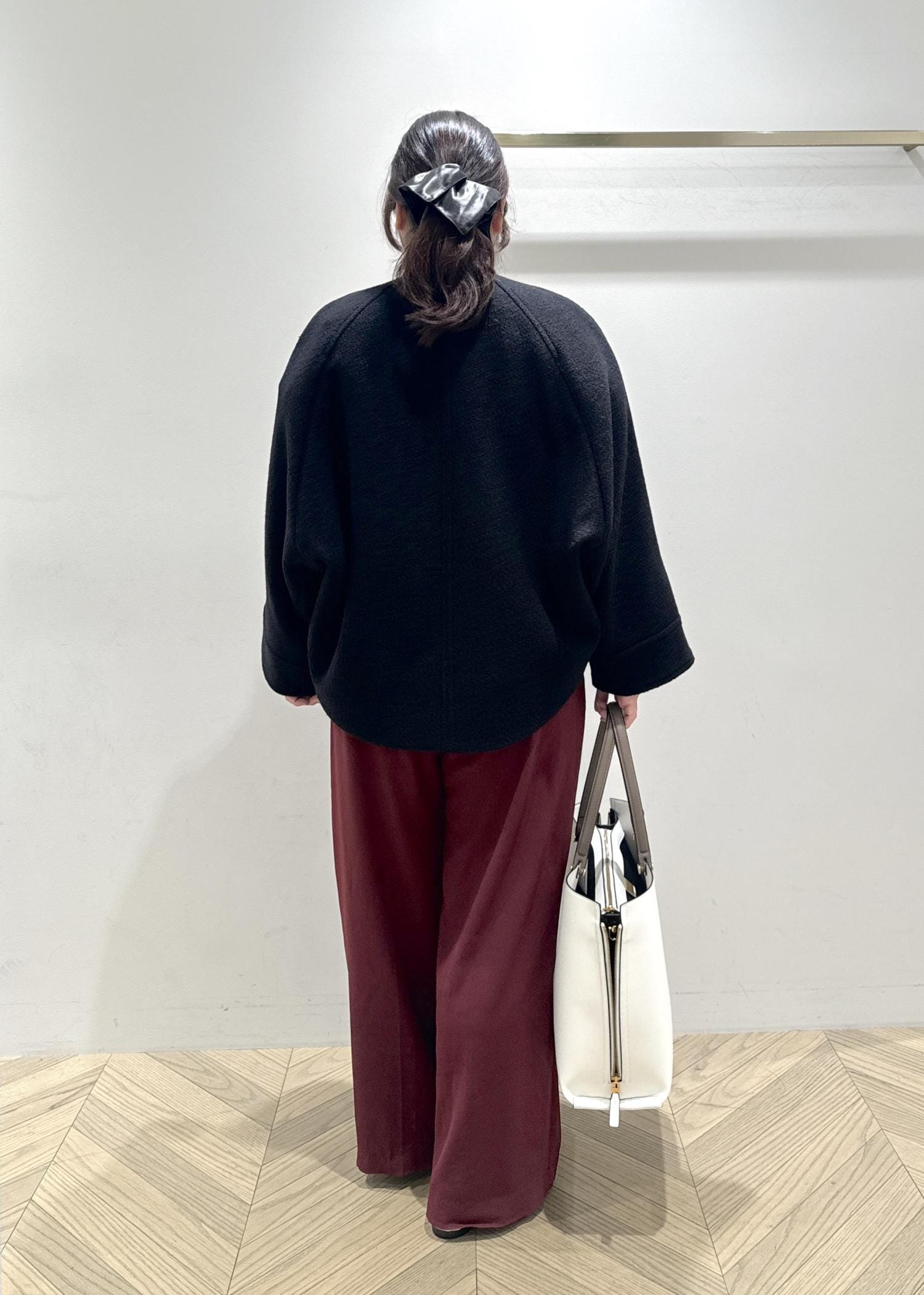 肩周りもスッキリなので、アウターは羽織りやすいです -