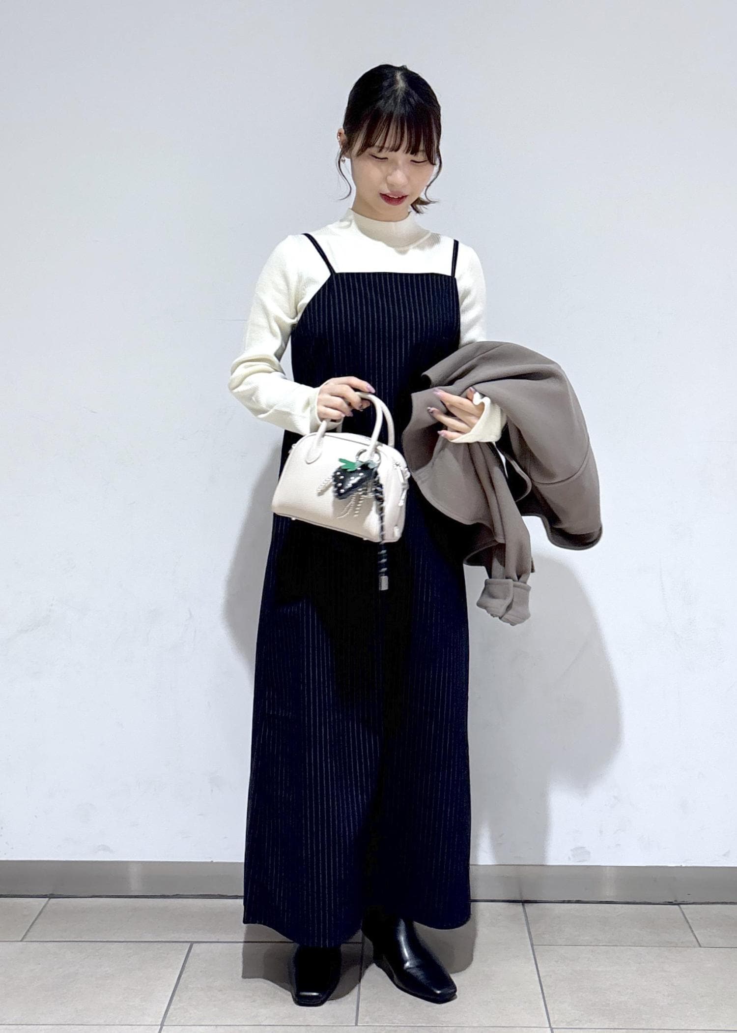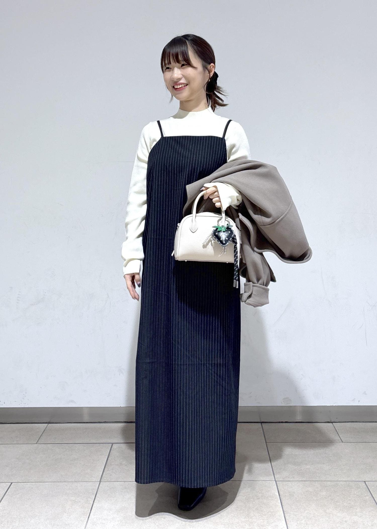 ROPÉ PICNICストライプアイラインキャミワンピース/セットアップ対応ネイビー / F¥4,994レビュー肩紐で長さが調節可能です。151cmの私だと、いちばん短くしてマキシ丈くらいなので、ヒールのない靴と合わせても着用できました。