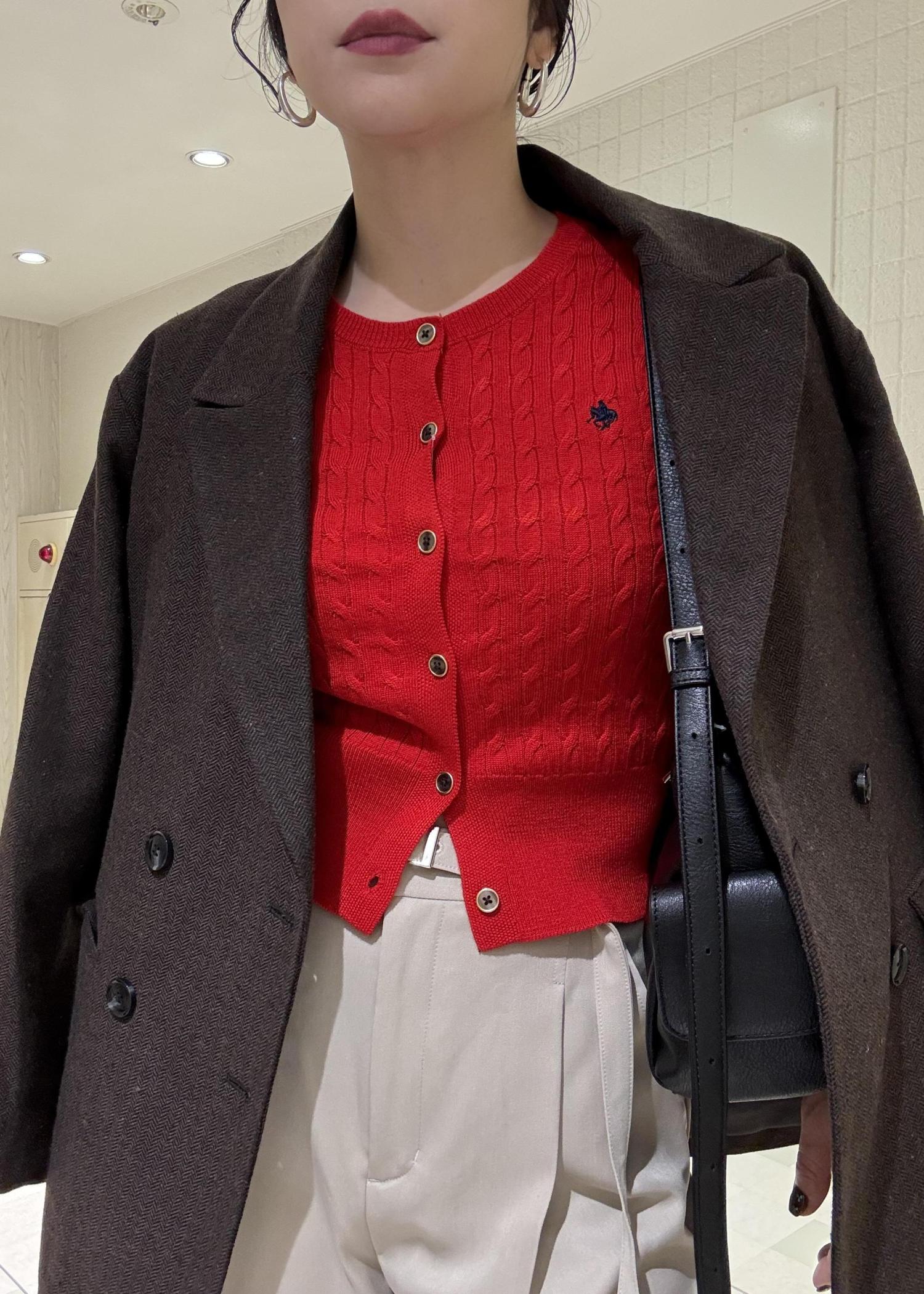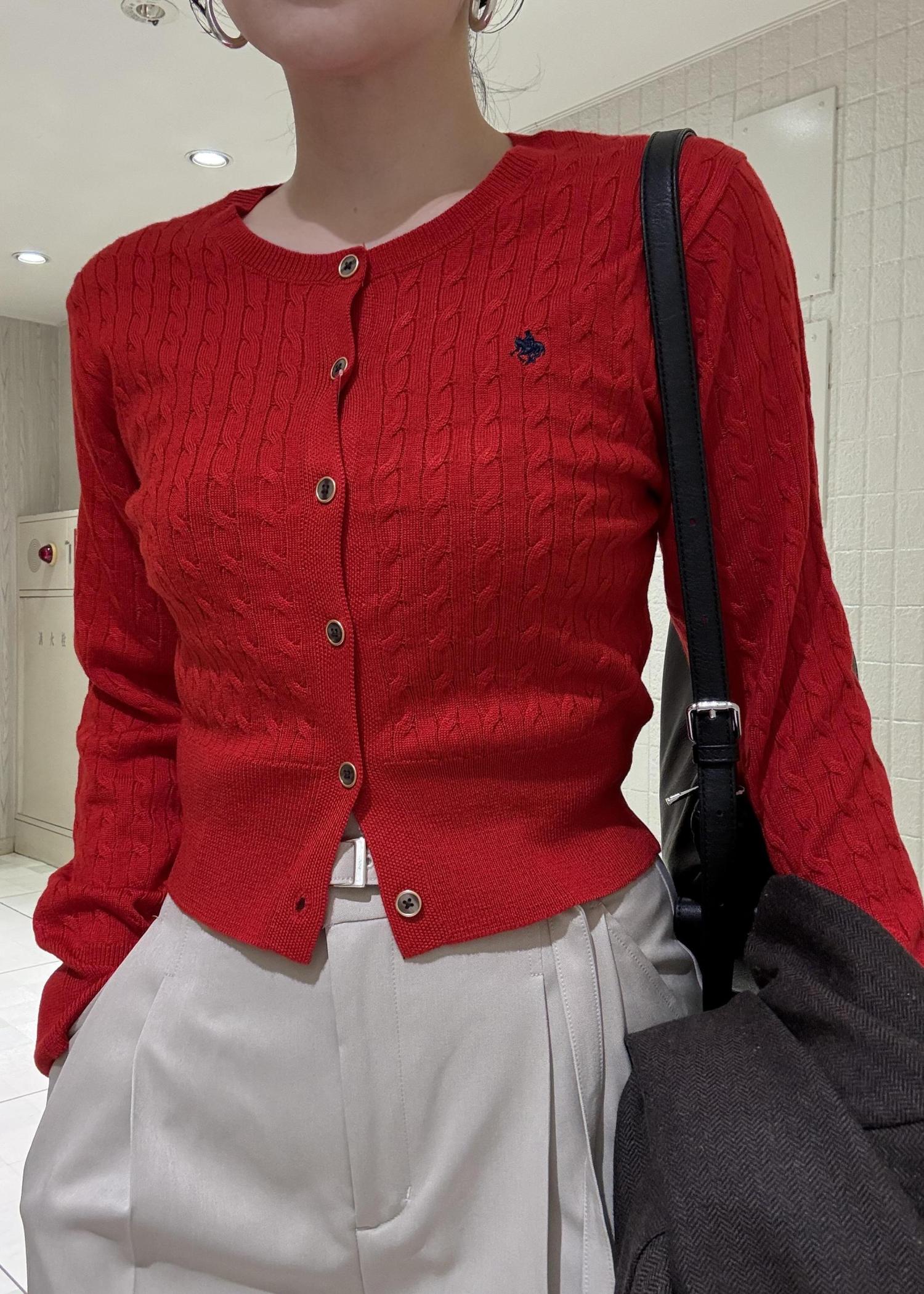 VIS【POLO BCS】VIS別注ミニケーブルノーカラーニットカーディガンレッド / F¥6,930レビュー【POLO BCS】