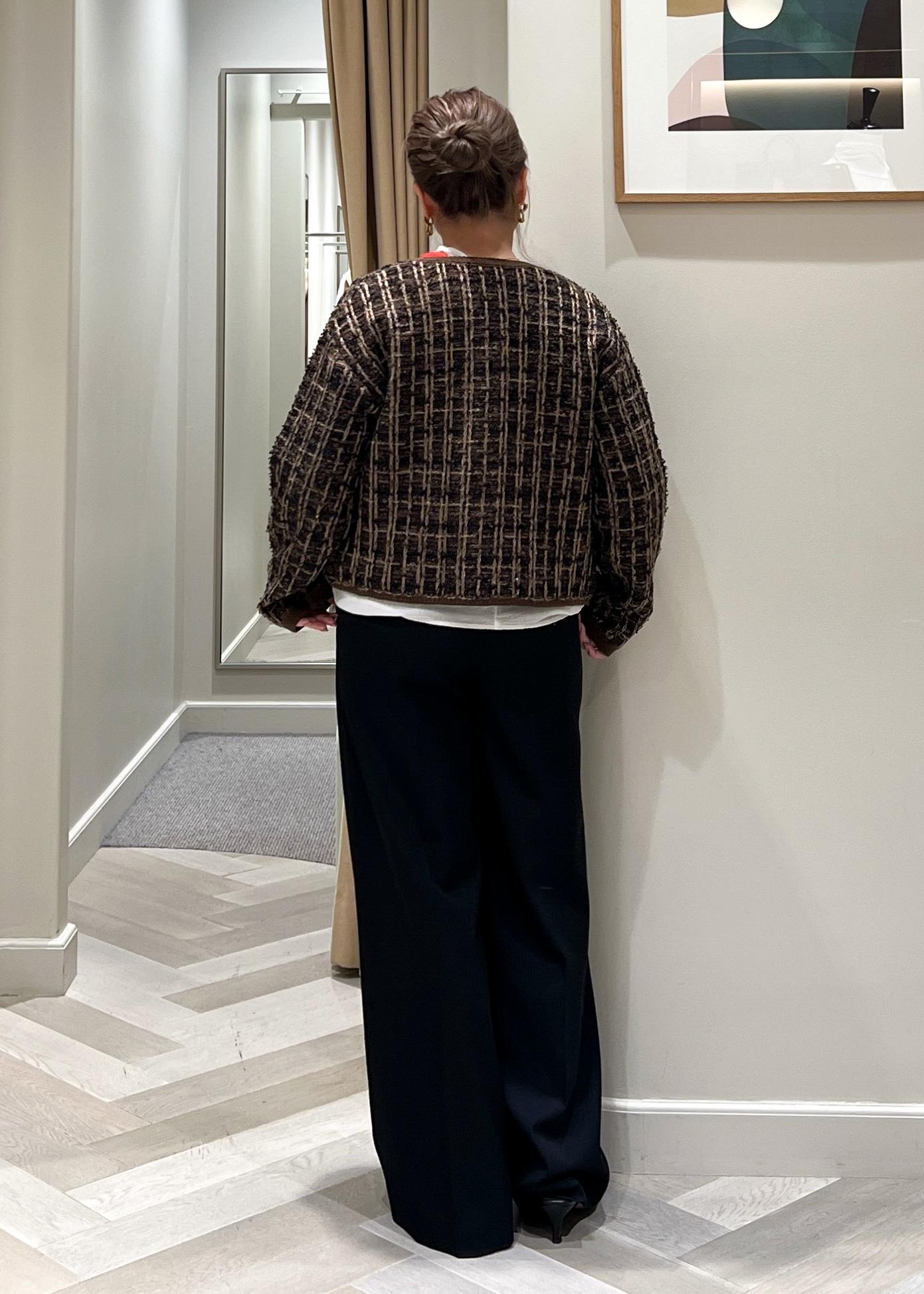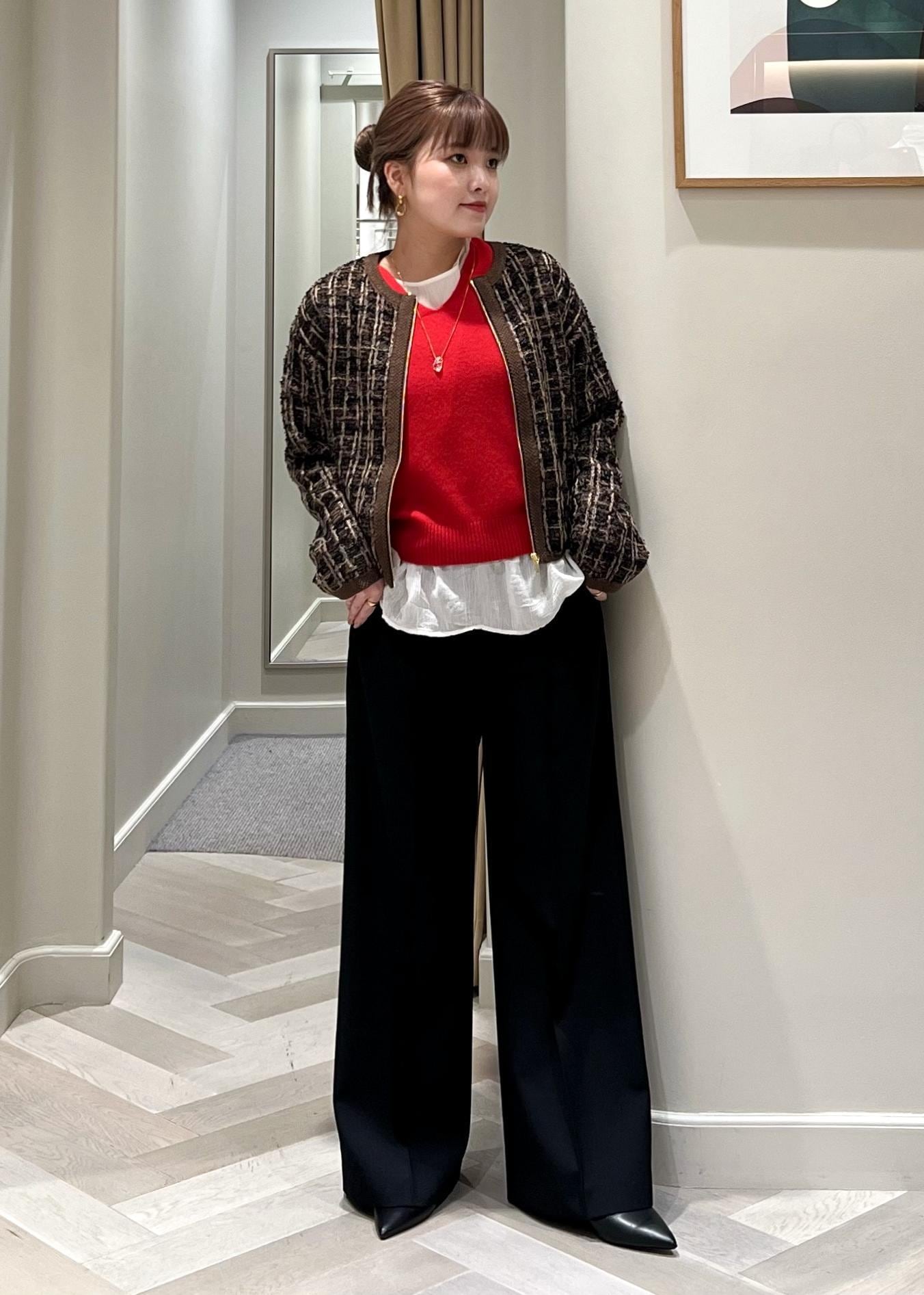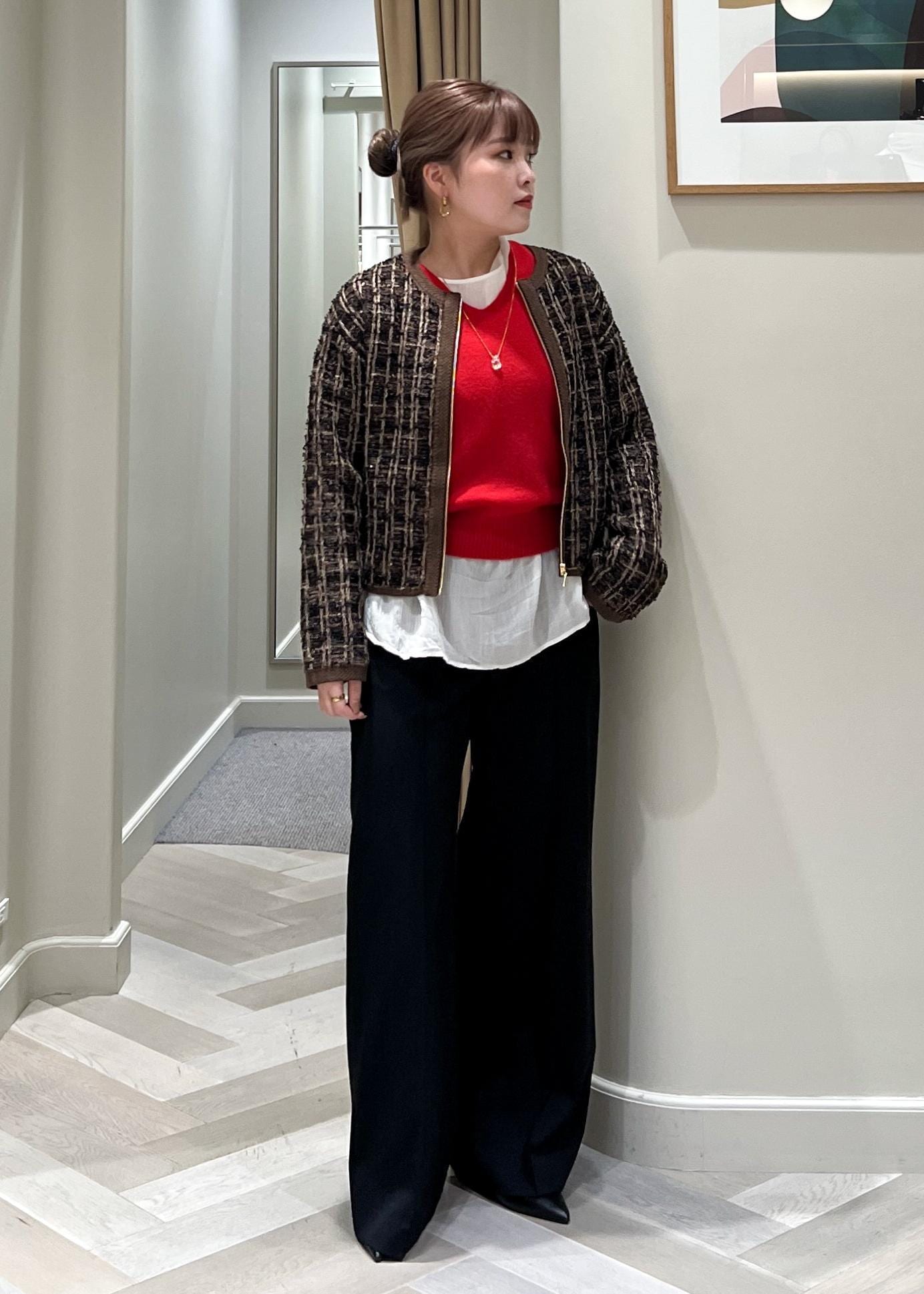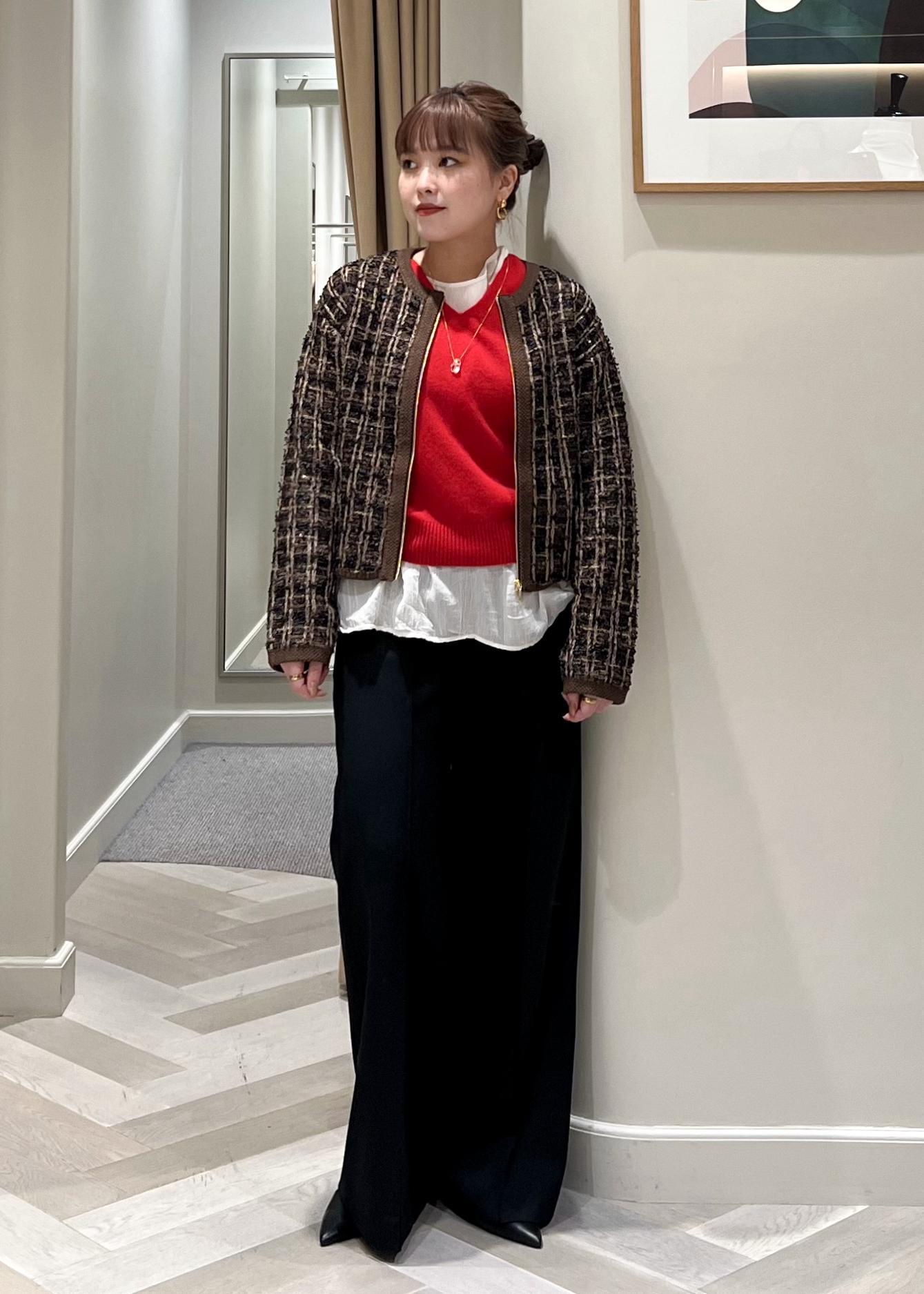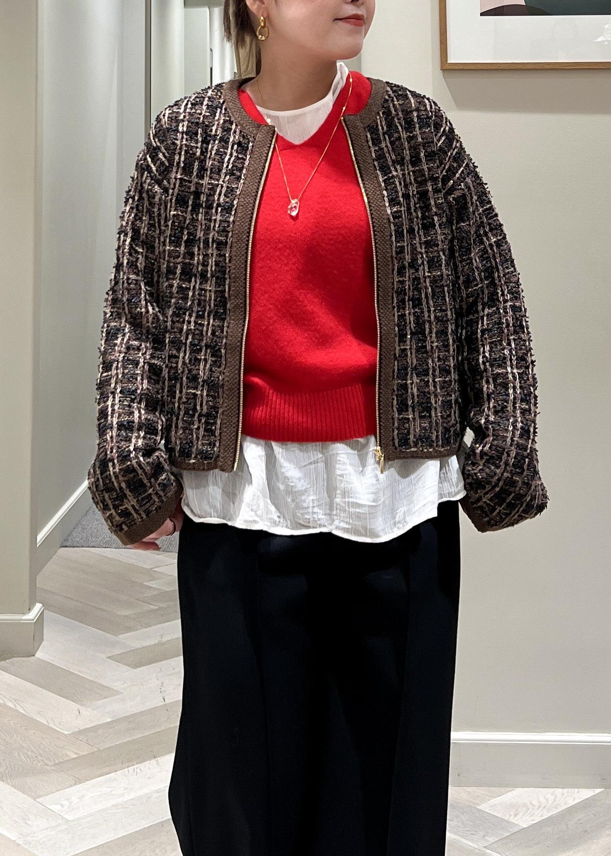 ROPÉツイードZIPノーカラーカーディガン/イージーケアブラウン / F¥25,300レビューフリーサイズ着用で比較的すっきりした