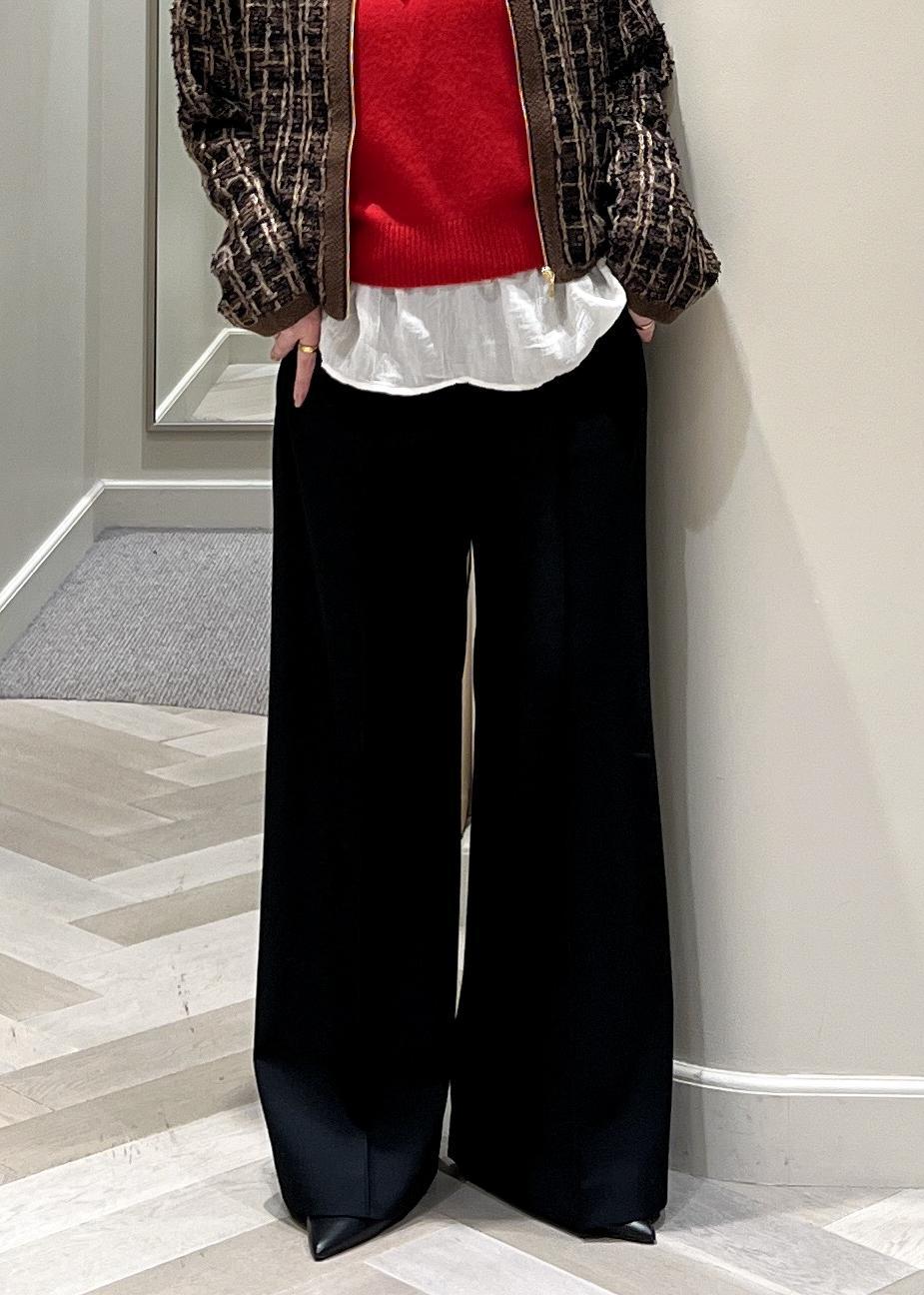 ROPÉ梳毛ギャバ プリーテッド ワイドパンツブラック / 38¥29,700