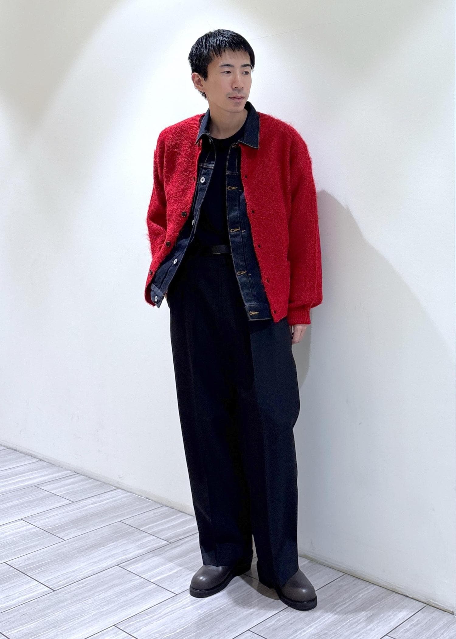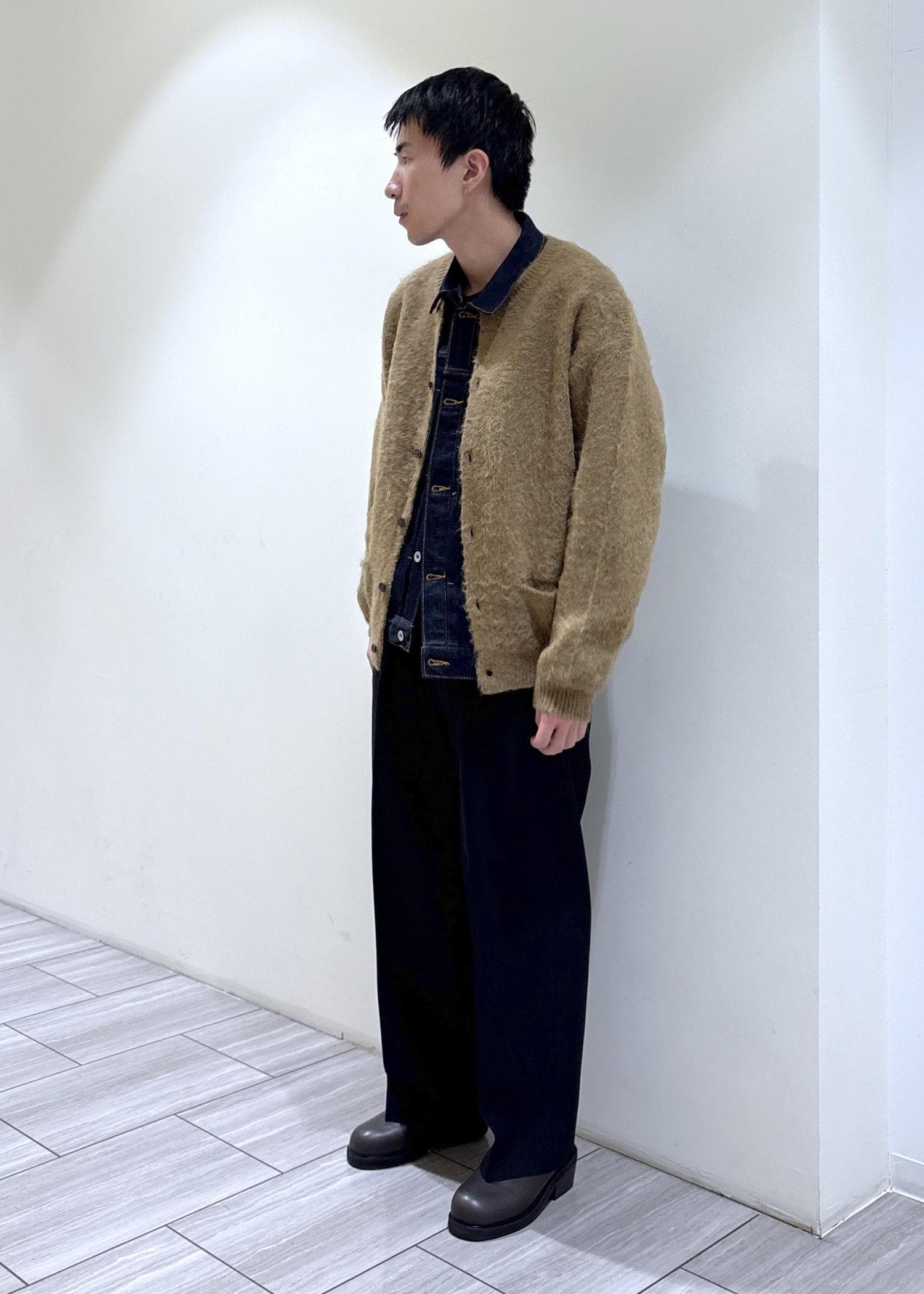ADAM ET ROPÉ HOMMEモヘアミックス オーバーサイズ クルーネックカーディガンキャメル / L¥17,930レビュー175cm、L着用。
