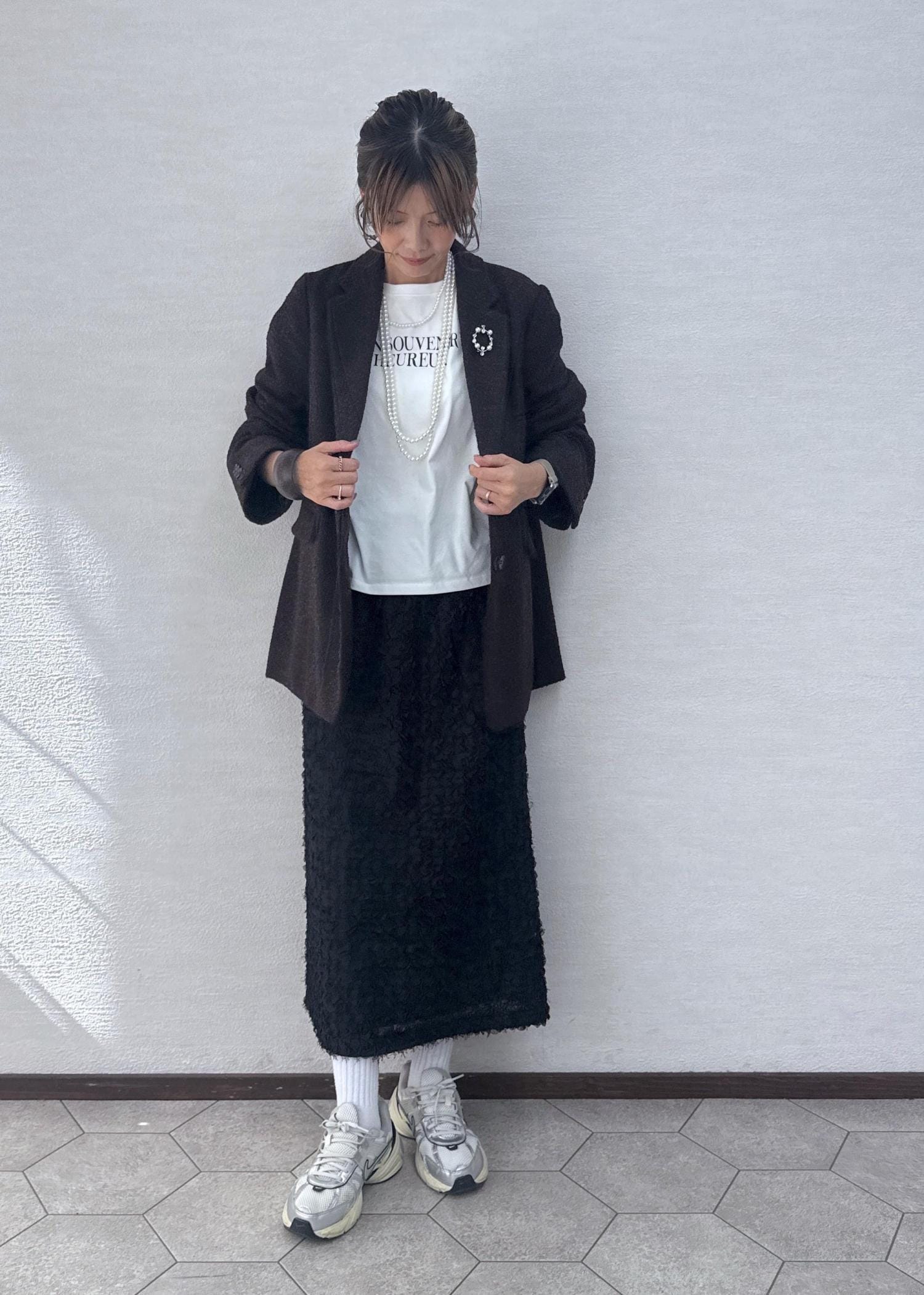 オーバーサイズで落ち感もありこなれた印象に。 -