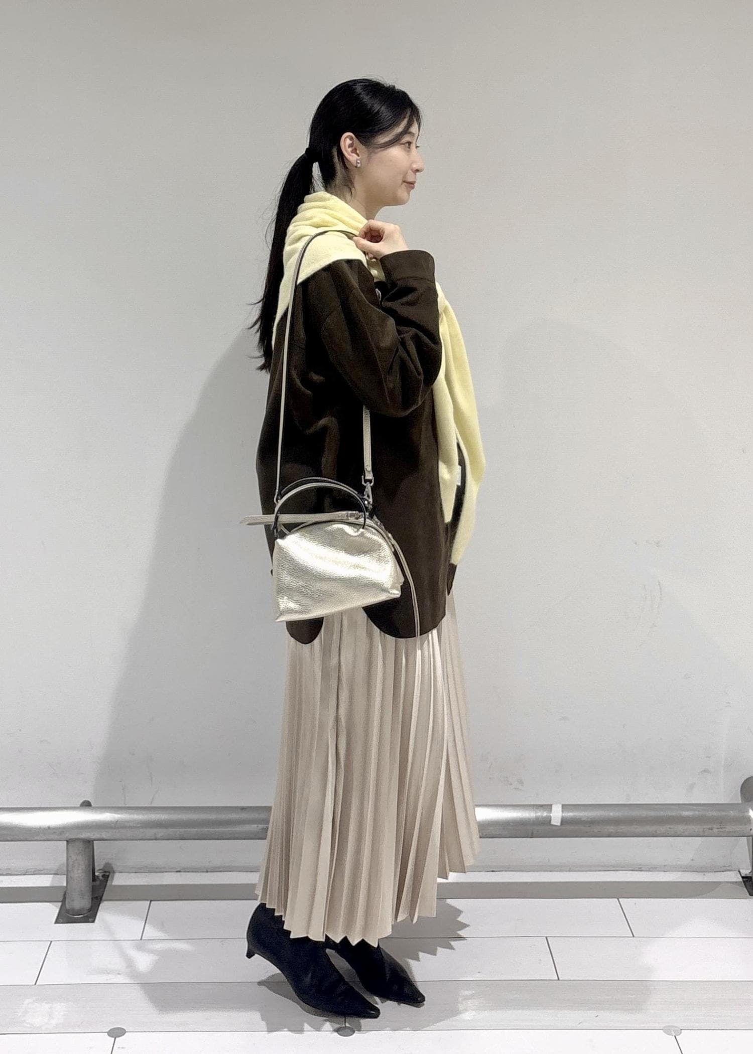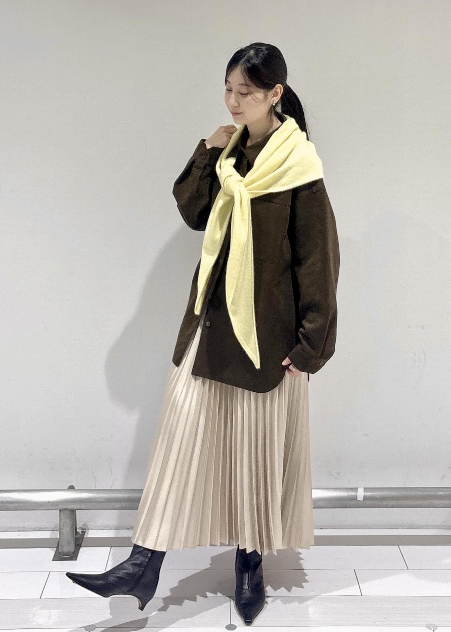 寒い季節はやはりこっくりした色が気になってしまいますが、暗くなりすぎないように柔らかいレモンイエローを差し色にしてみました。