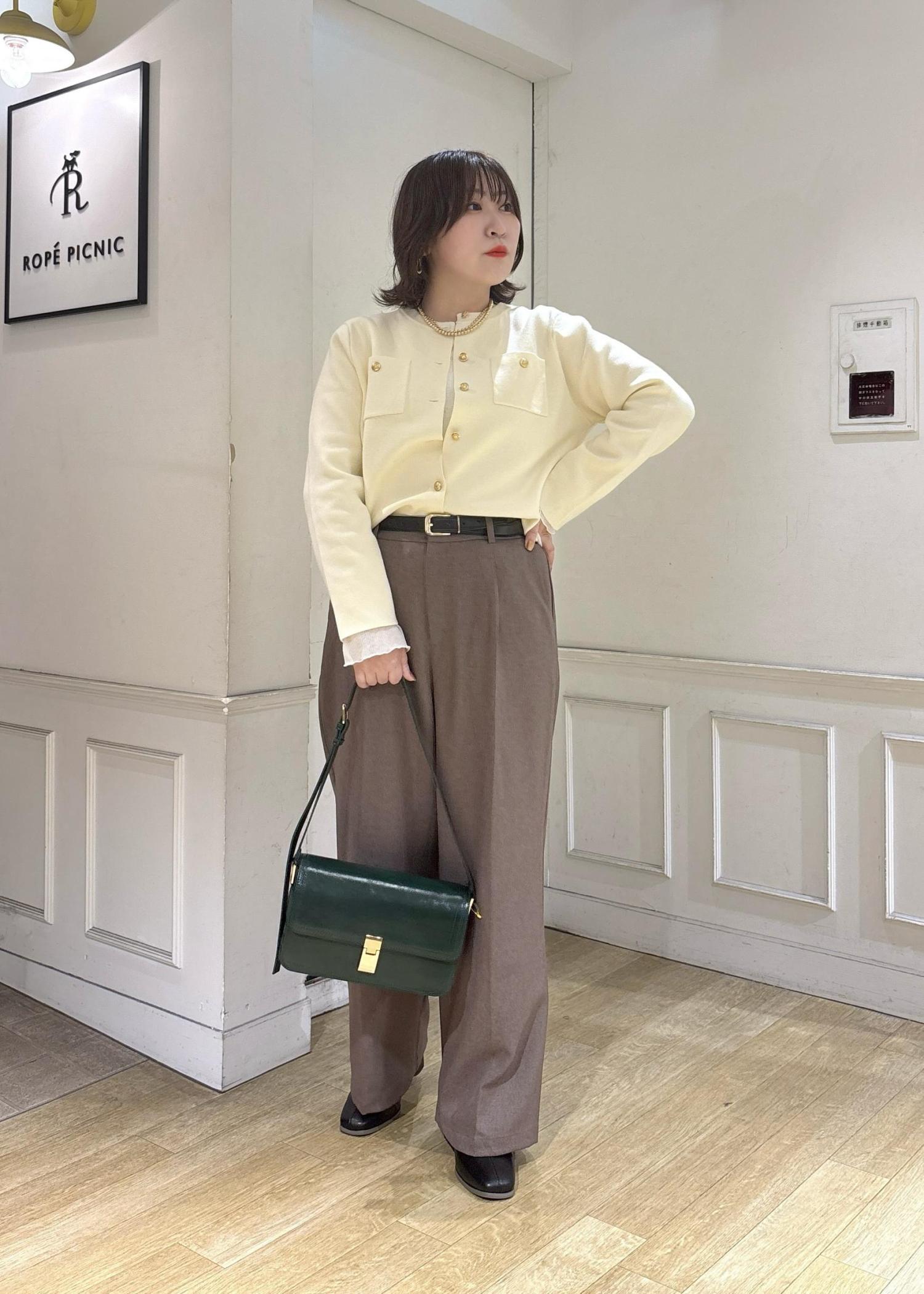 ROPÉ PICNICレディハンサムシリーズ ウールライクウエストタックセミワイドパンツ/セットアップ対応ベージュ系 / L¥5,489レビュー157cmでLサイズを着用。ローファーなどヒールがないシューズでもちょうどいい丈感でした。センタープレスが入っているので、足のラインが真っ直ぐ見え、スタイルアップして見えます。
