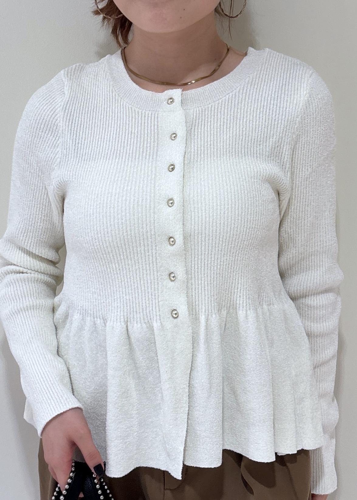 VISペプラム切替モールニットカーディガン/イージーケアホワイト系 / F¥6,589レビュー身長150センチ、ヒップまるまる隠れる丈感