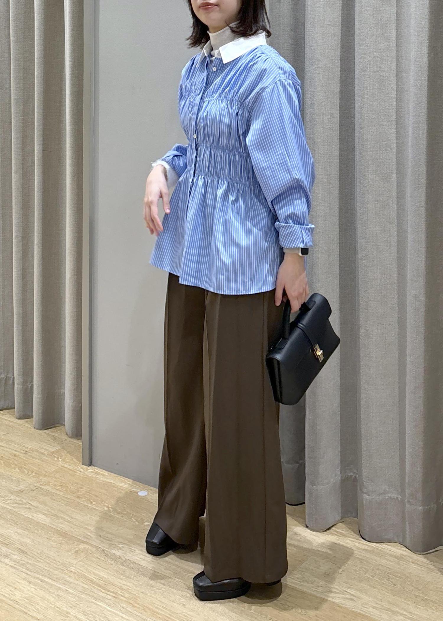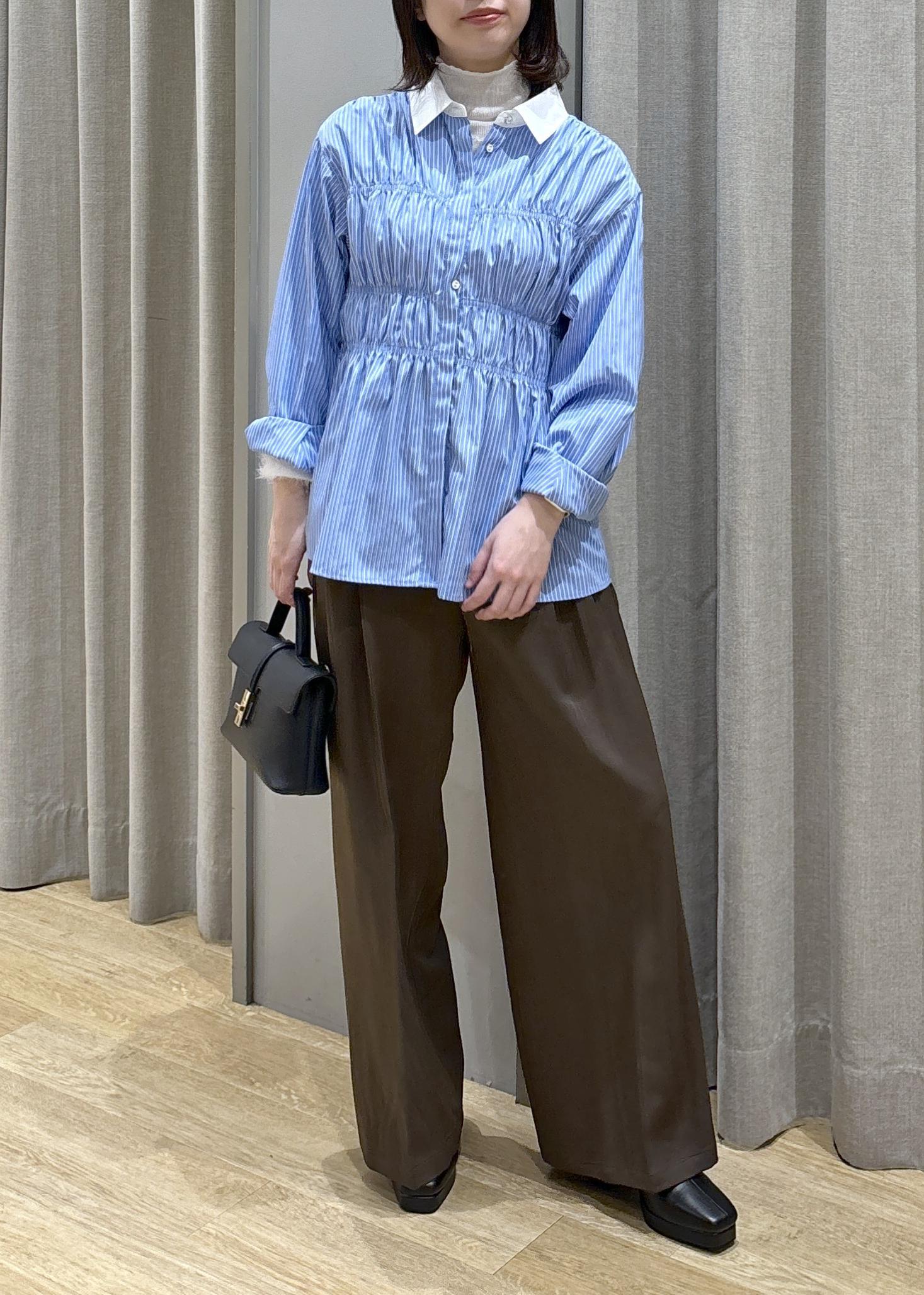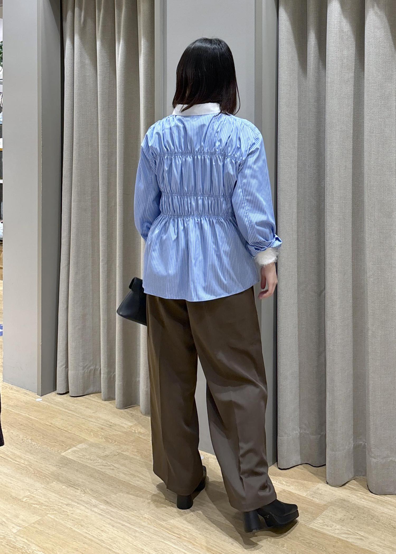 VISシャーリングデザインシャツブルー系 / F¥5,489レビュー身長158cm、Fサイズ着用。