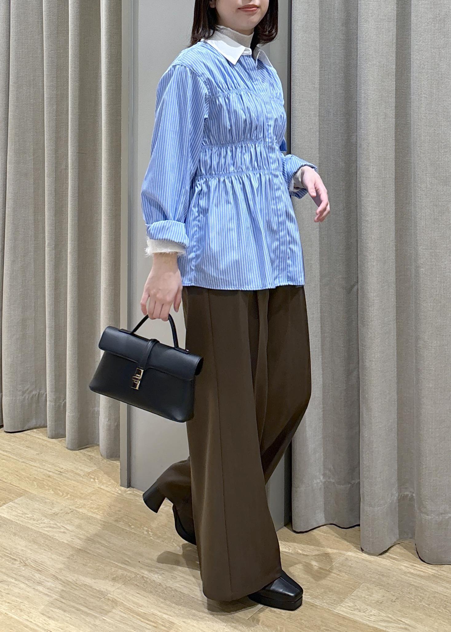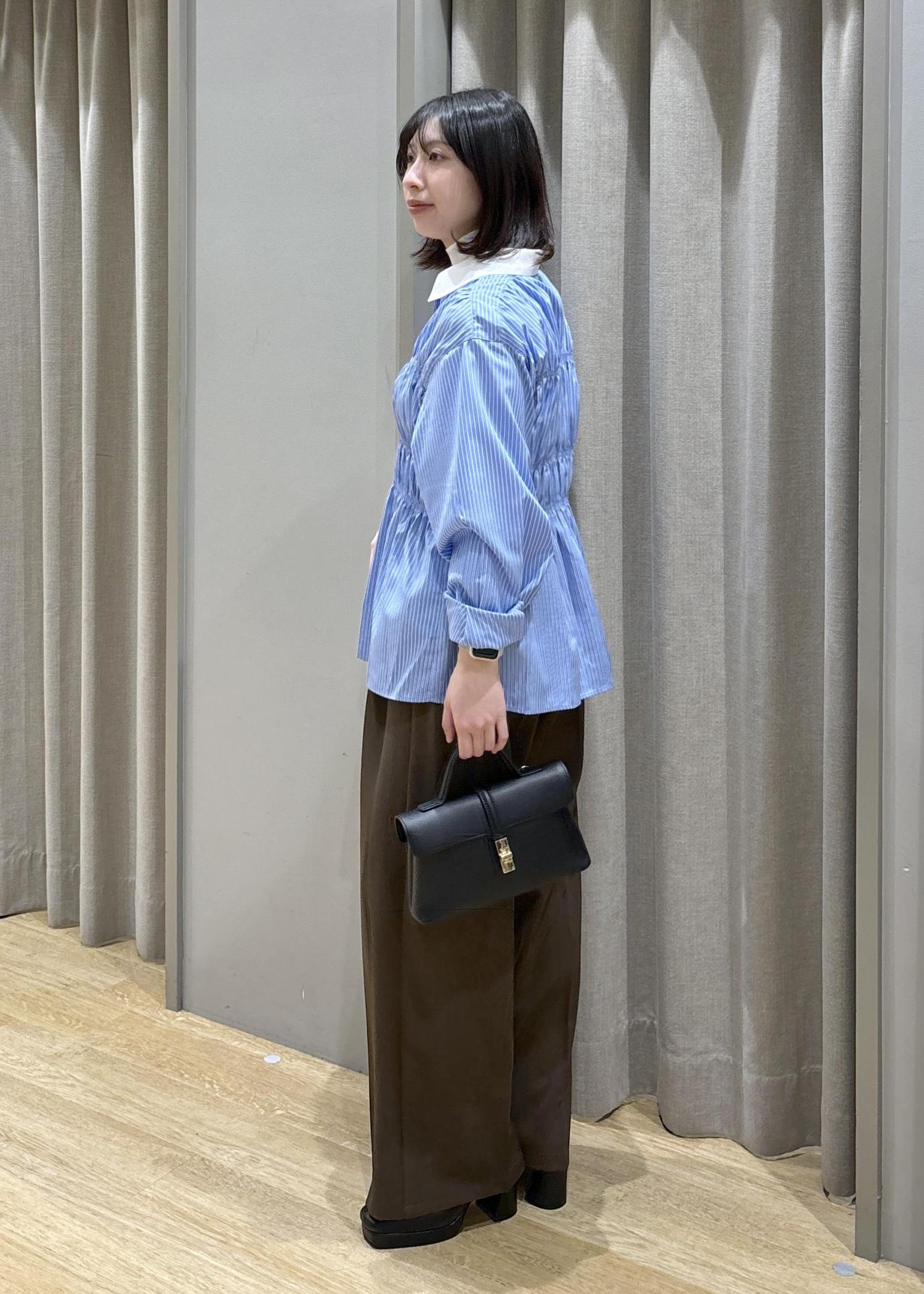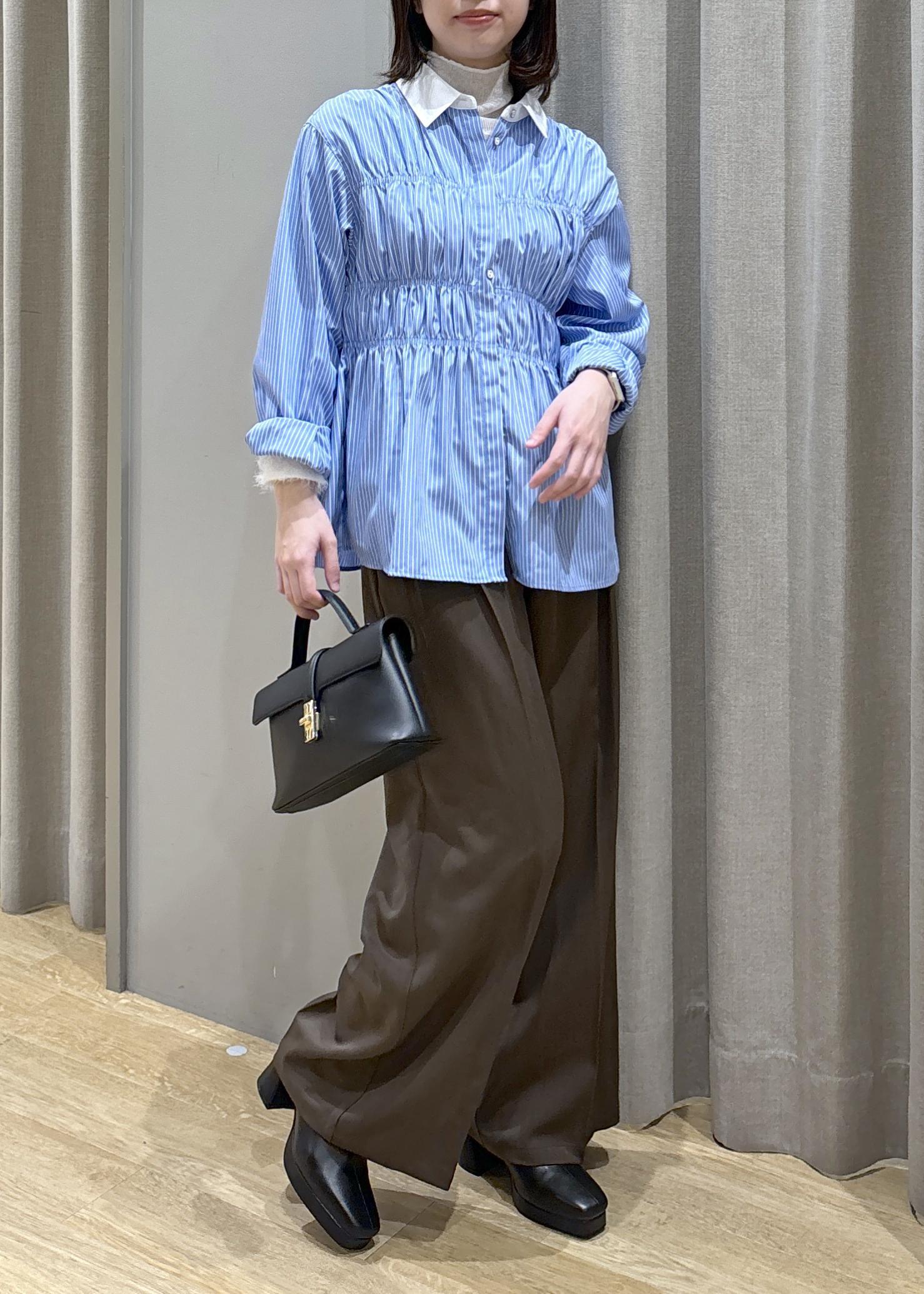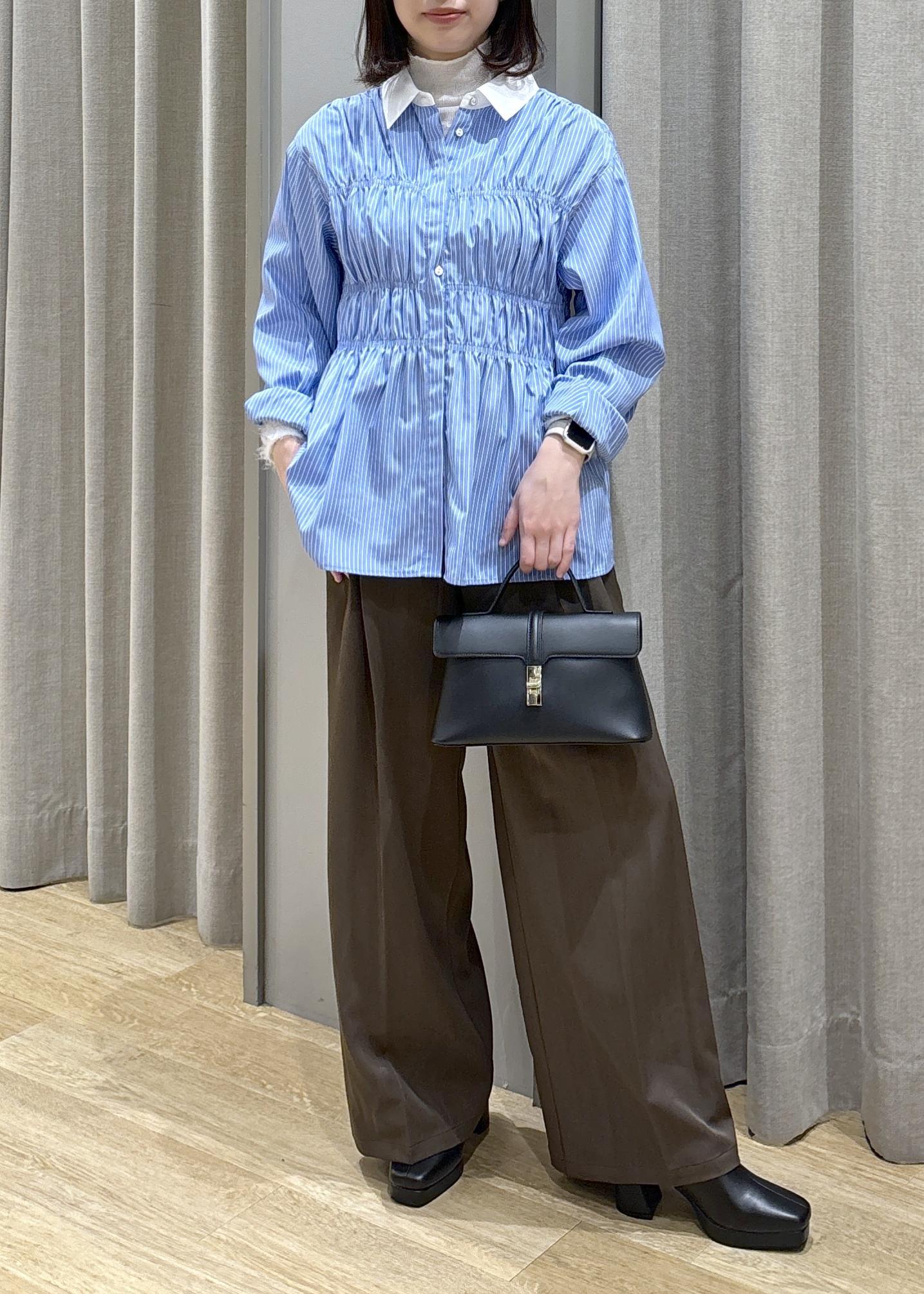 VISシャーリングデザインシャツブルー系 / F¥5,489レビュー身長158cm、Fサイズ着用。