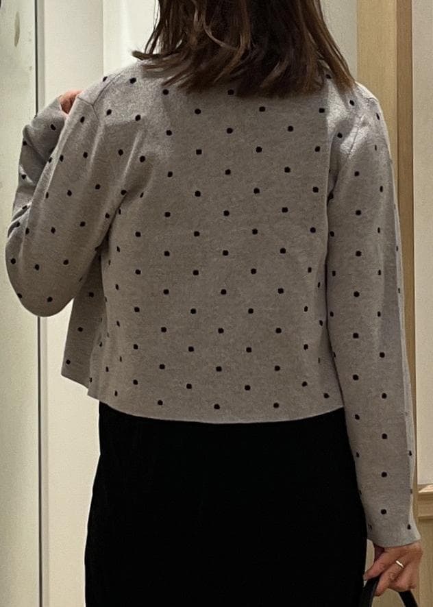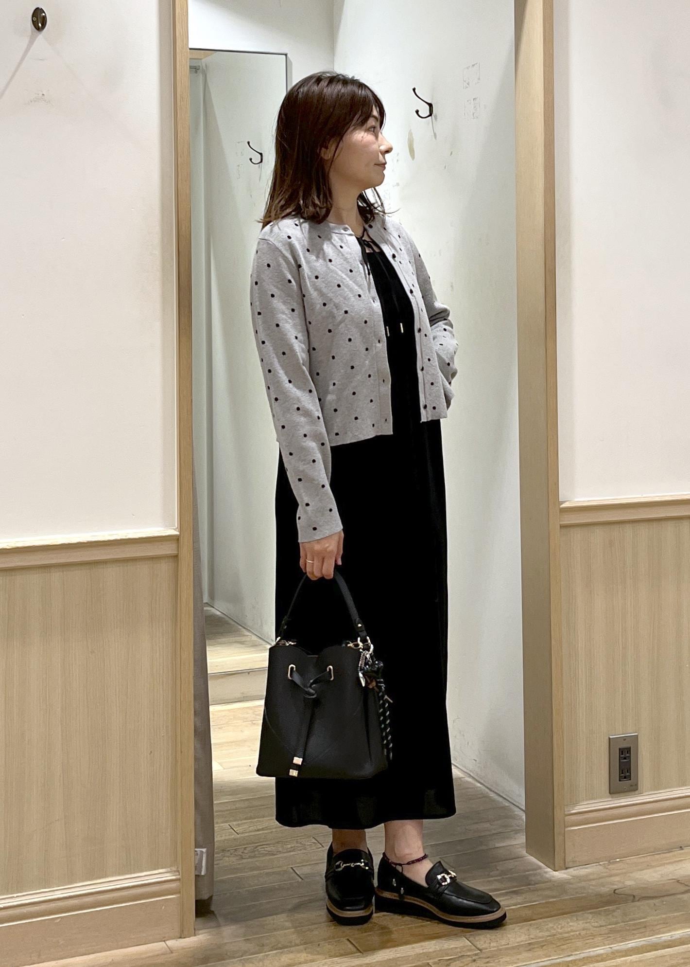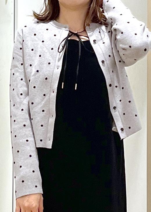 VISドットジャガードカーディガングレー系 / F¥5,929レビューモチモチとした、柔らかい生地で、着心地が良いです。丈は長すぎず丁度腰にくるくらいの、丈で着られました。クルーニットですっきりした印象のカーディガンです。