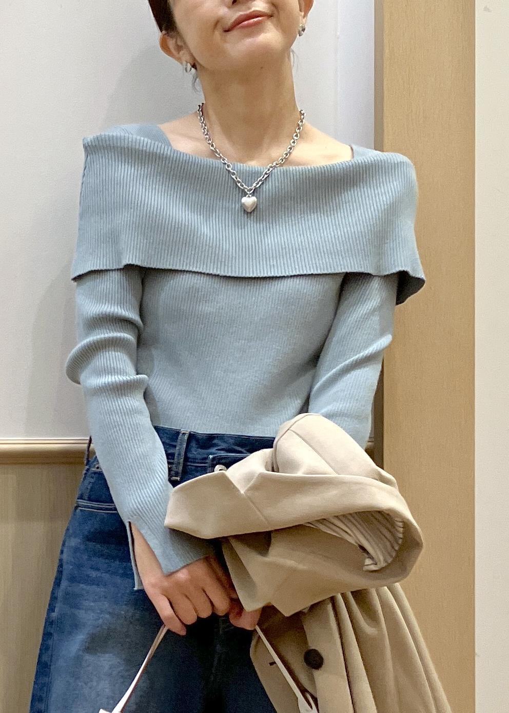 NEW!VIS【美得】オフショルダーモチモチリブニット/好評につき再入荷グリーン系 / F¥5,489レビューモッチモチの肌触りで着心地◎