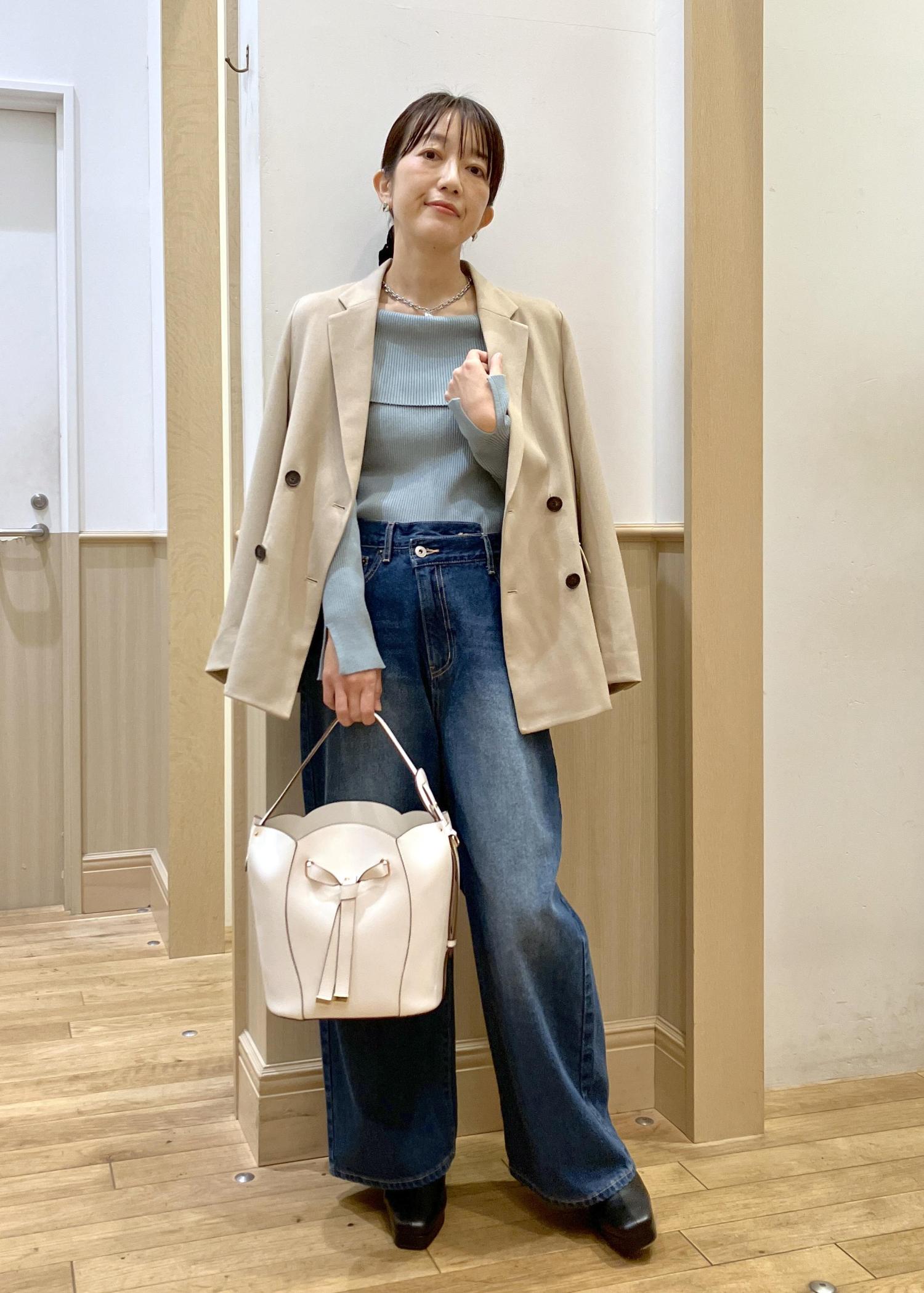 通勤服の適度な肌見せ、デニムにはジャケット合わせが安心ですよね。大人女子にもオススメのstylingです。