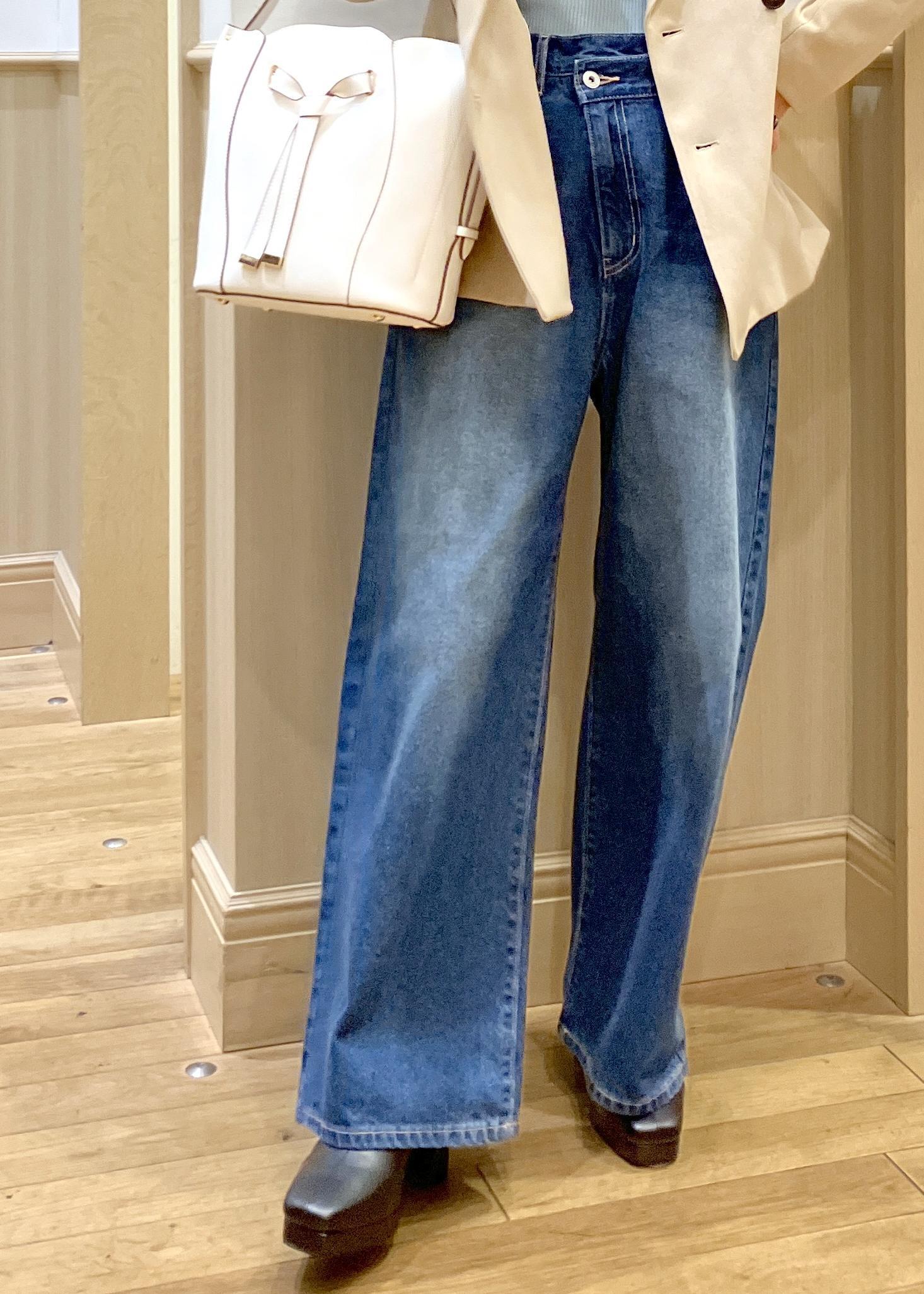 普段SSサイズ着用の私が着ると、少し腰で落としてルーズに履く感じになります。その分着丈も少し長めになってくるので身長155cmでフラットシューズはギリギリの長さでした。 -