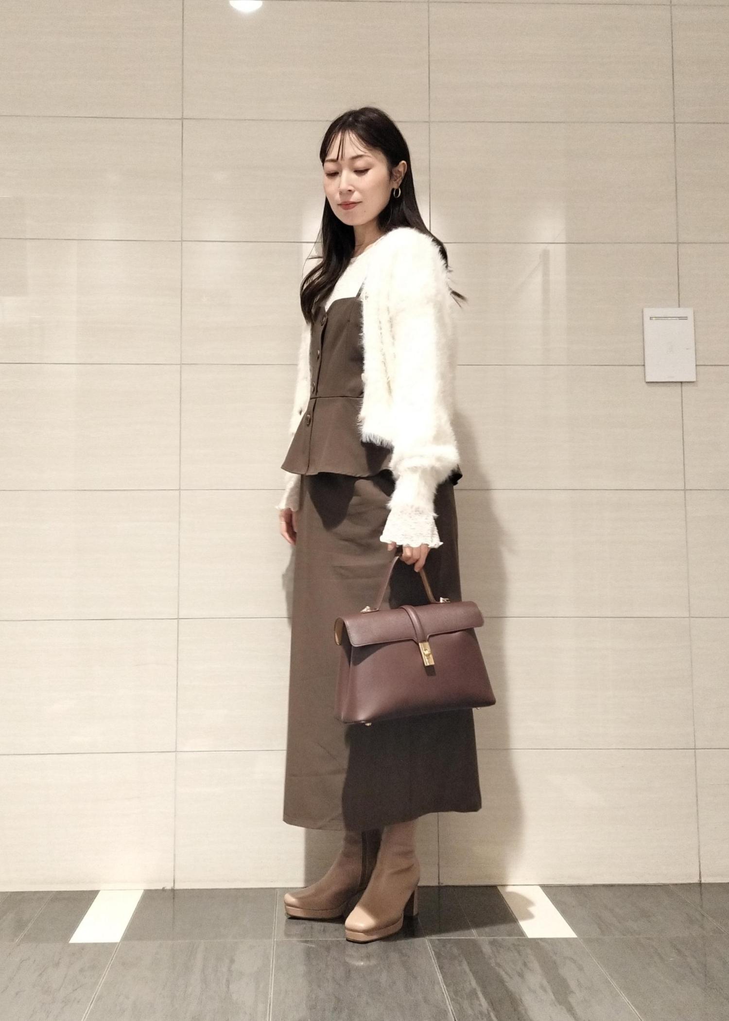 VISビスチェドッキングライクキャミワンピースダークブラウン系 / F¥7,689レビューペプラムシルエットがまるでセットアップを着てるようなデザイン♪スカート部分はほどよくタイトなシルエットで綺麗です!