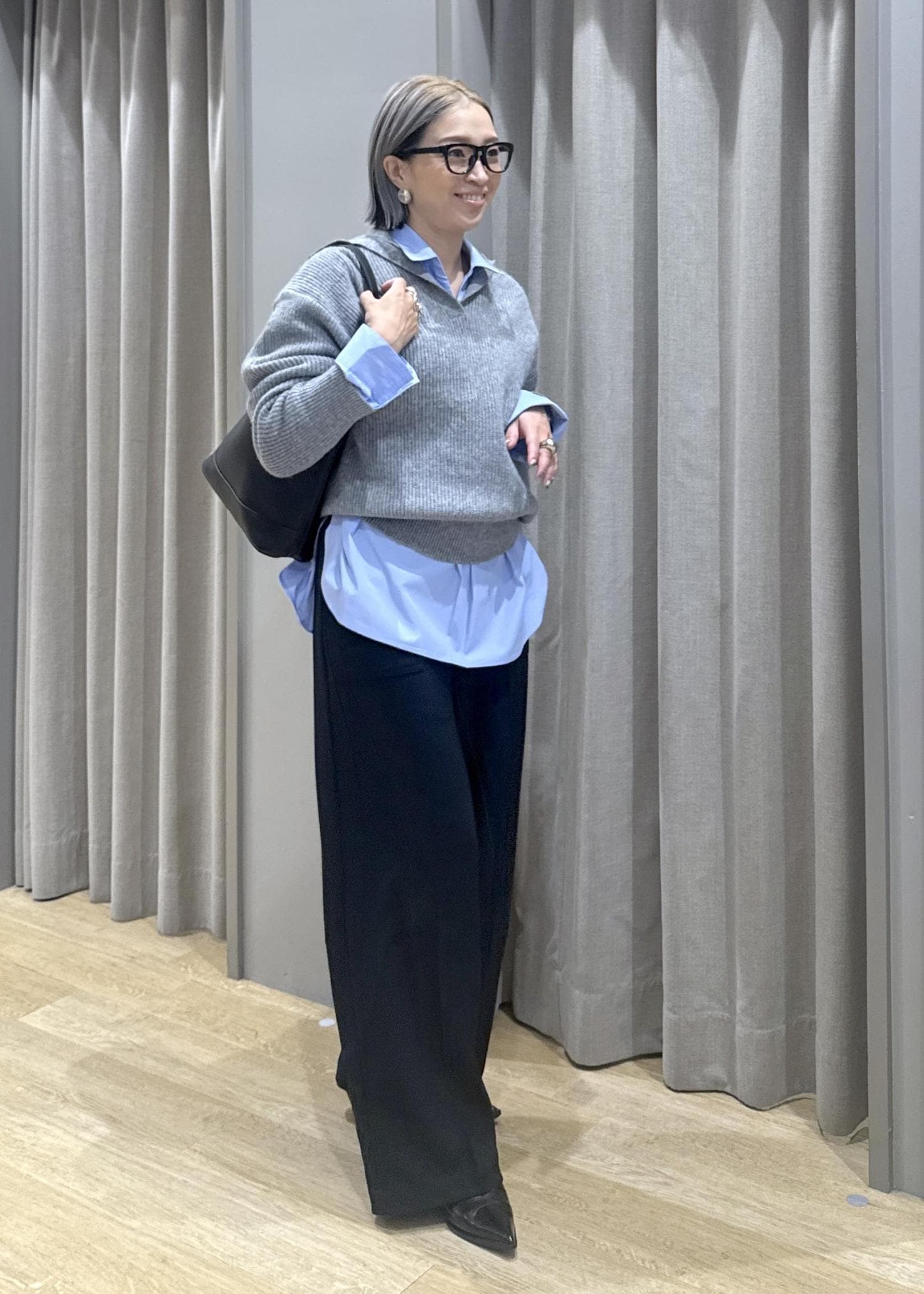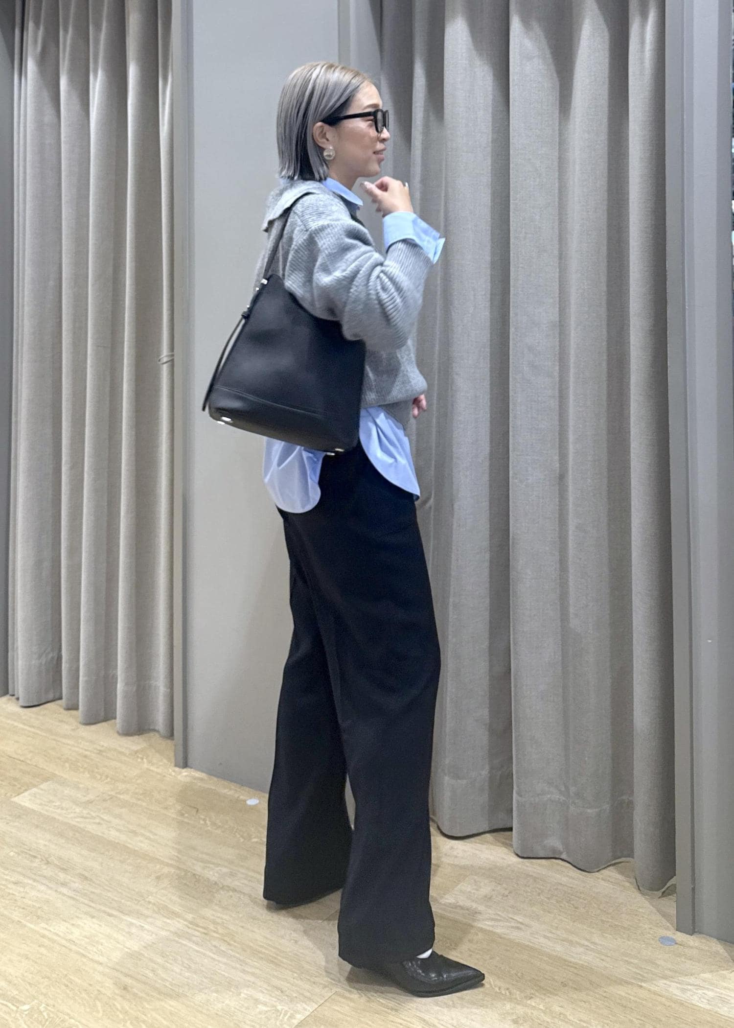 このように着ると、オフィスカジュアルでも行けますね!