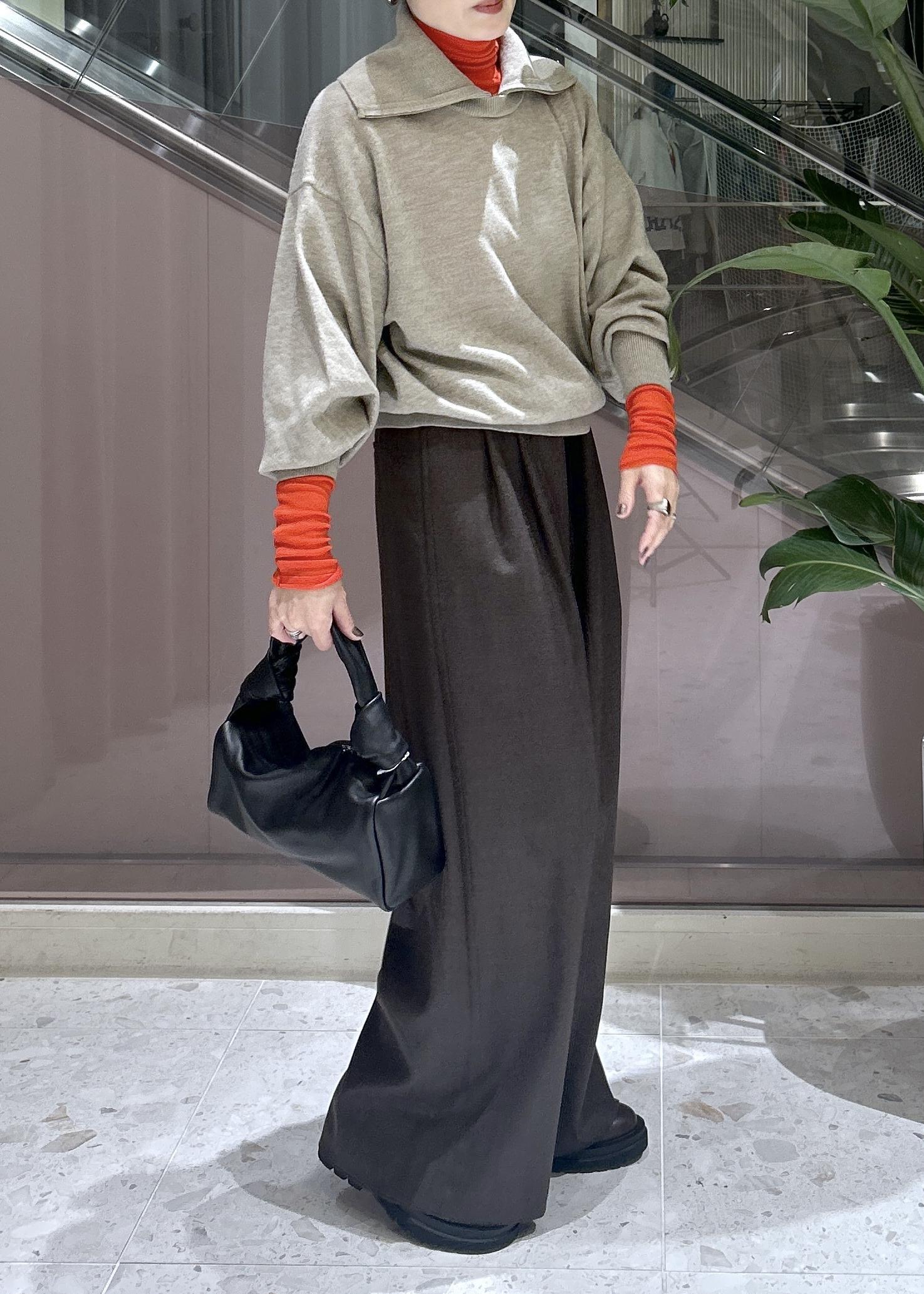 首元の立ち上がりも良く、たるんでくる感じはありませんでした。明るい色は差し色使いにもおすすめ!
