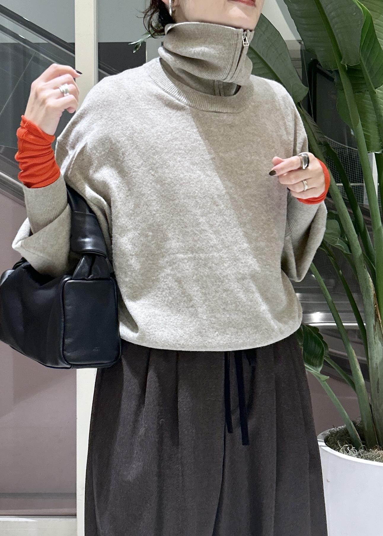 ウォッシャブルウールタートルネックカットオフプルオーバー