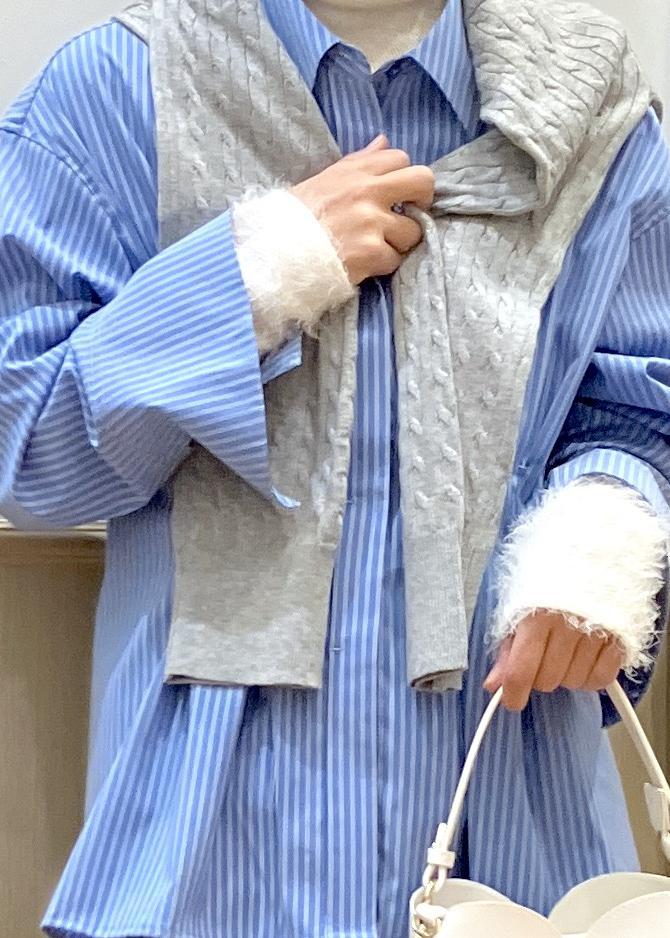 袖の長さは少しロングなのでニットなどと重ねた時のレイヤードも楽しめそうです。 -