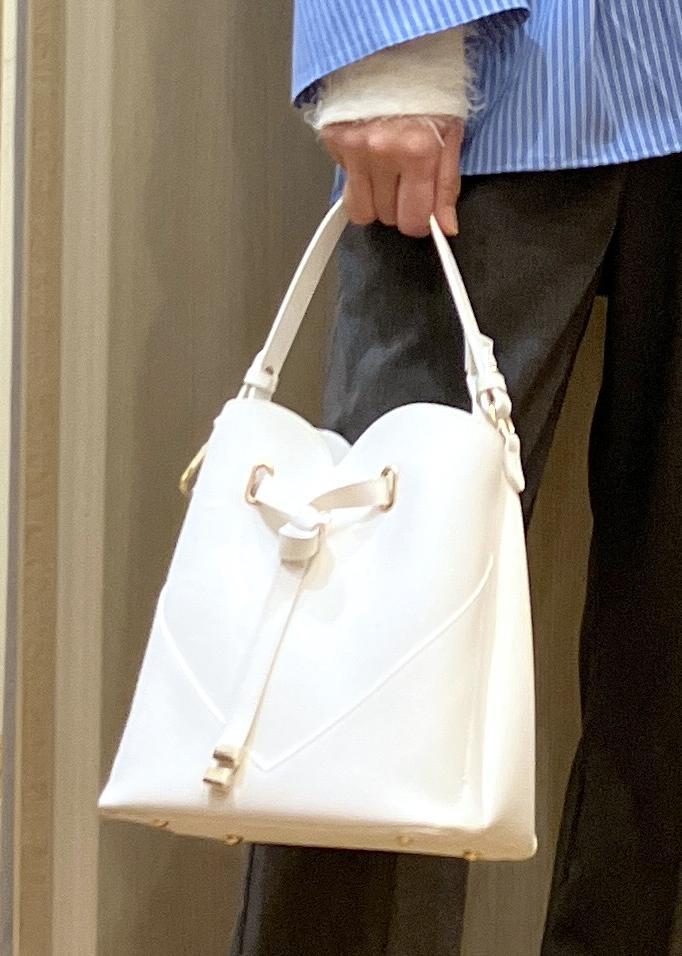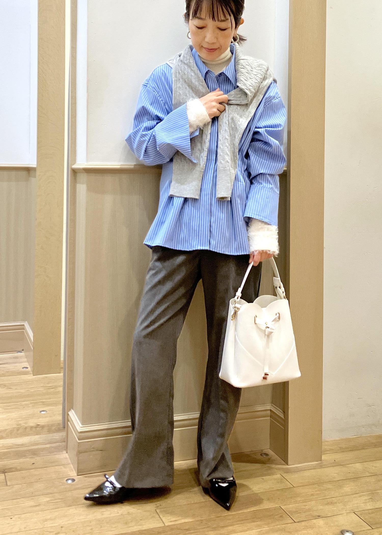 袖口から覗くファーのホワイトカラーにバッグも合わせてます。