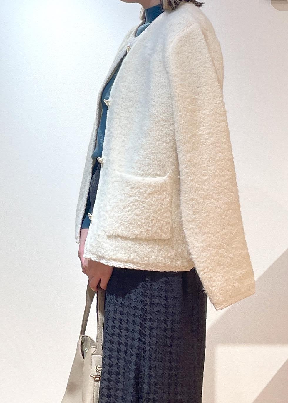 金ボタンがアクセントになるので、とめて着用もオススメです! -