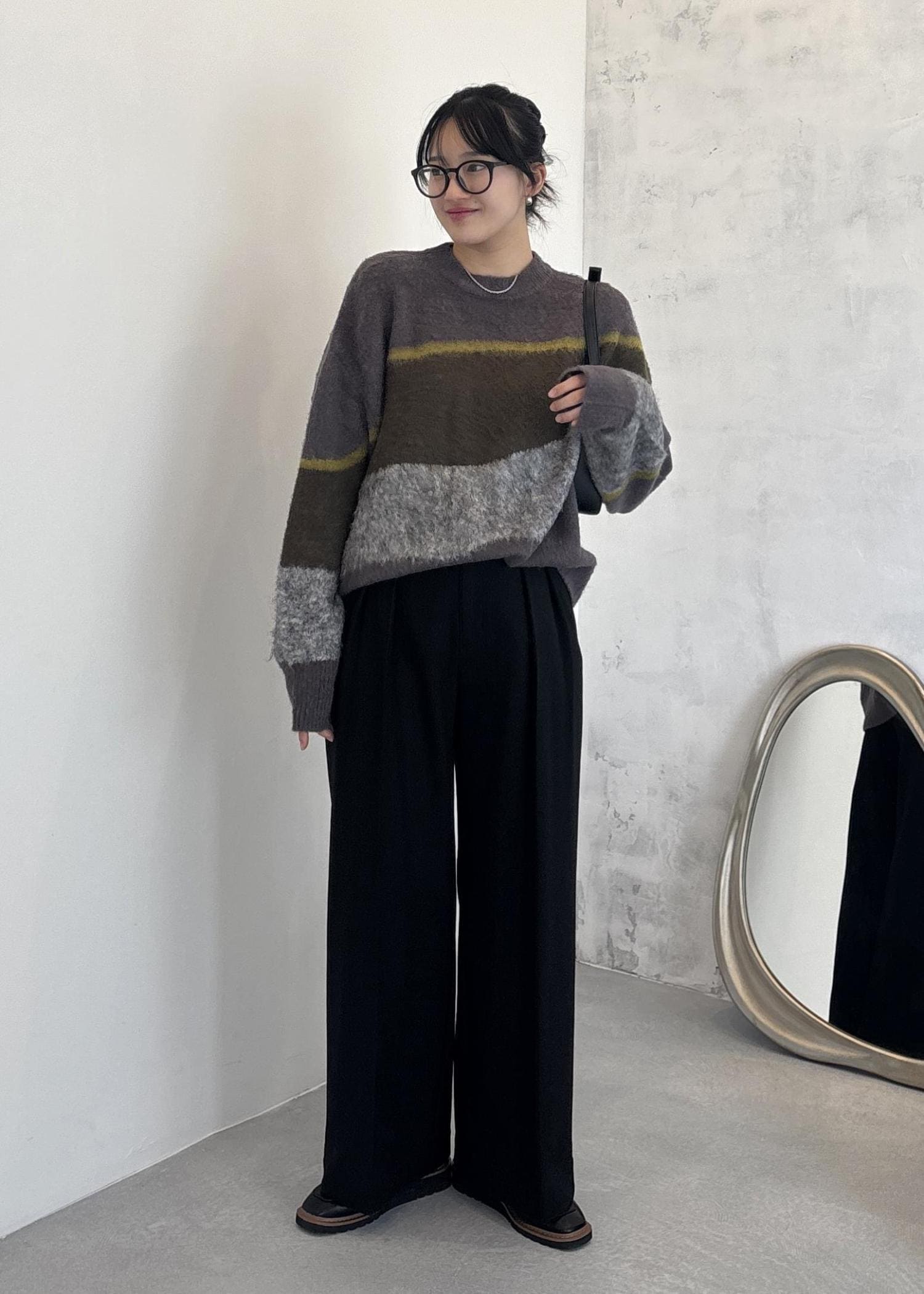VIS【WEB限定】グラデーションインターシャ起毛ニットチャコール / F¥6,919レビューゆったり感が可愛いニットトップス!