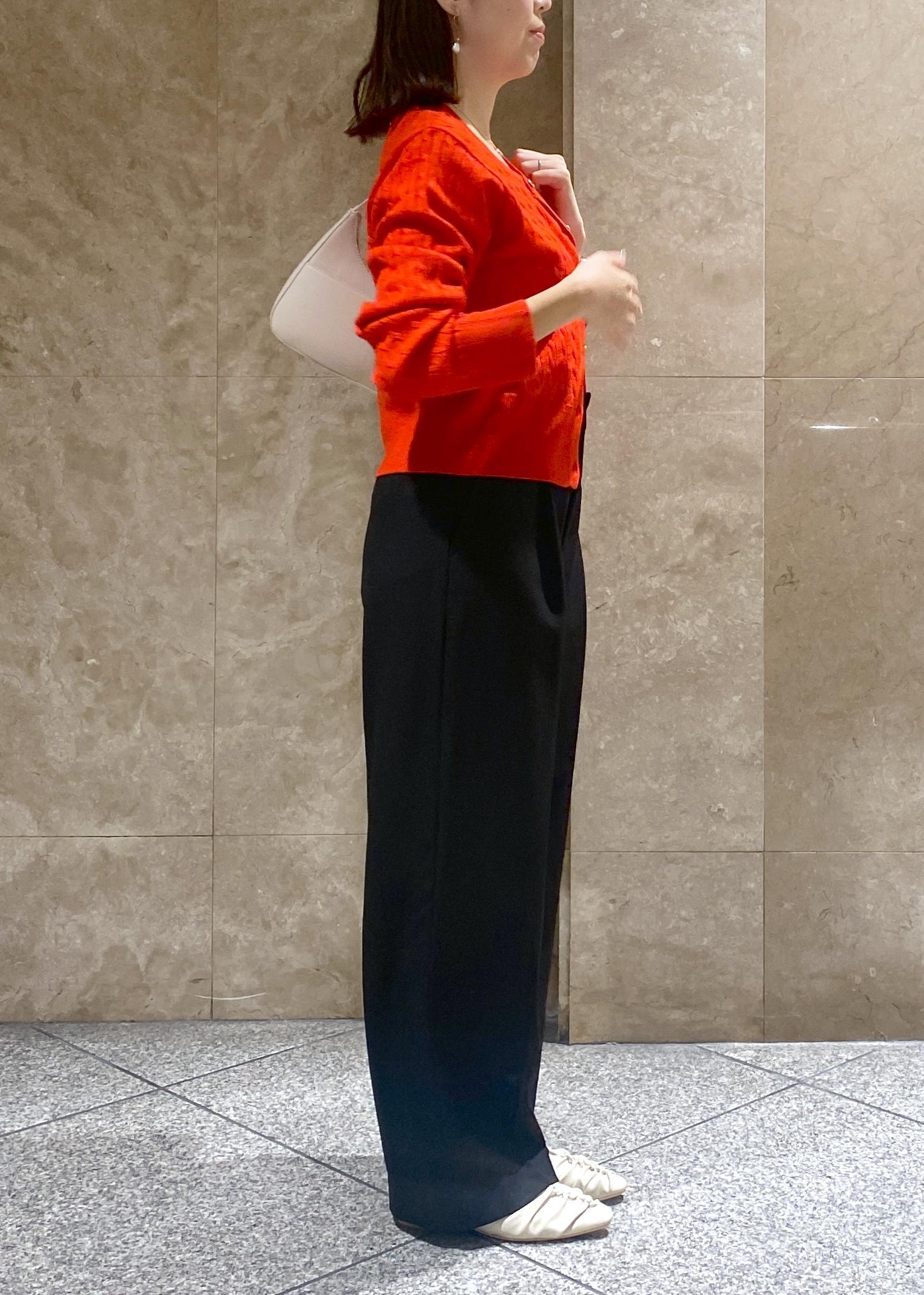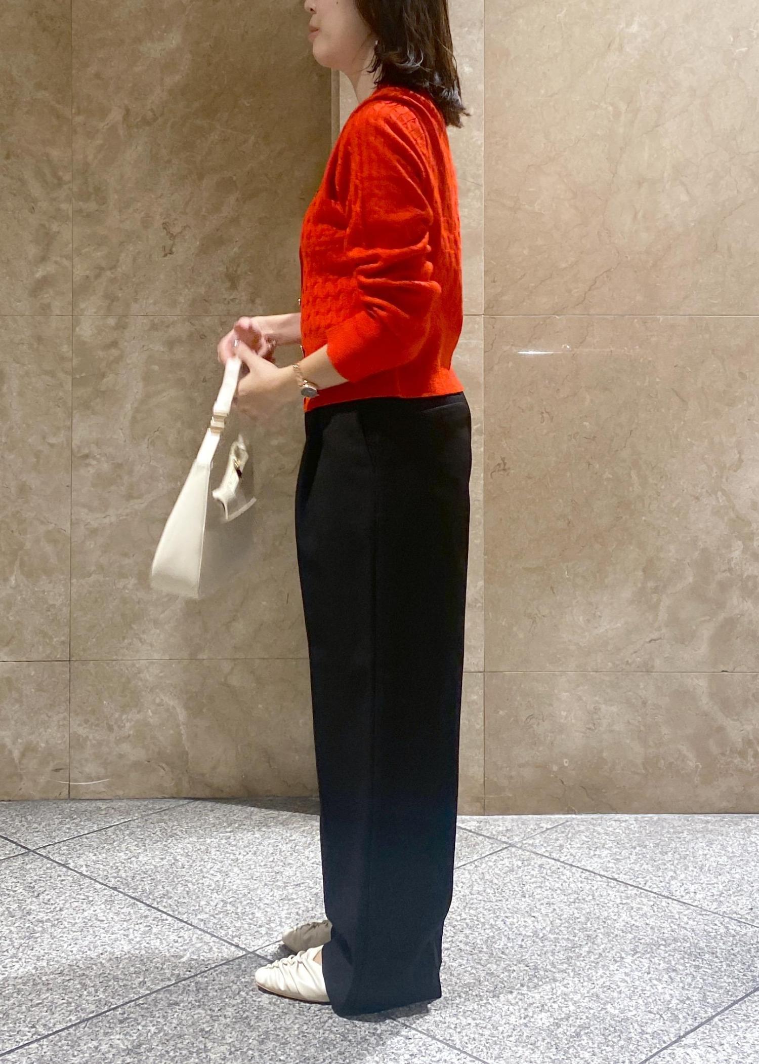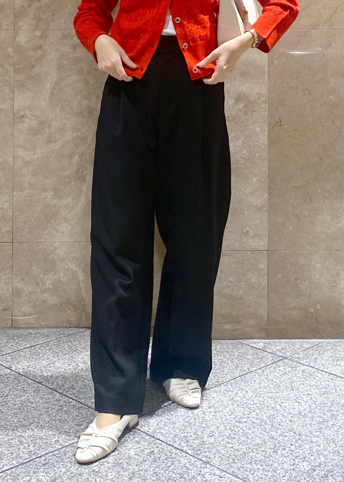 ウエストのサイドの所にボタンが付いており、サイズ調節ができるアイテムです!タックが入っており脚長効果抜群です◎ -