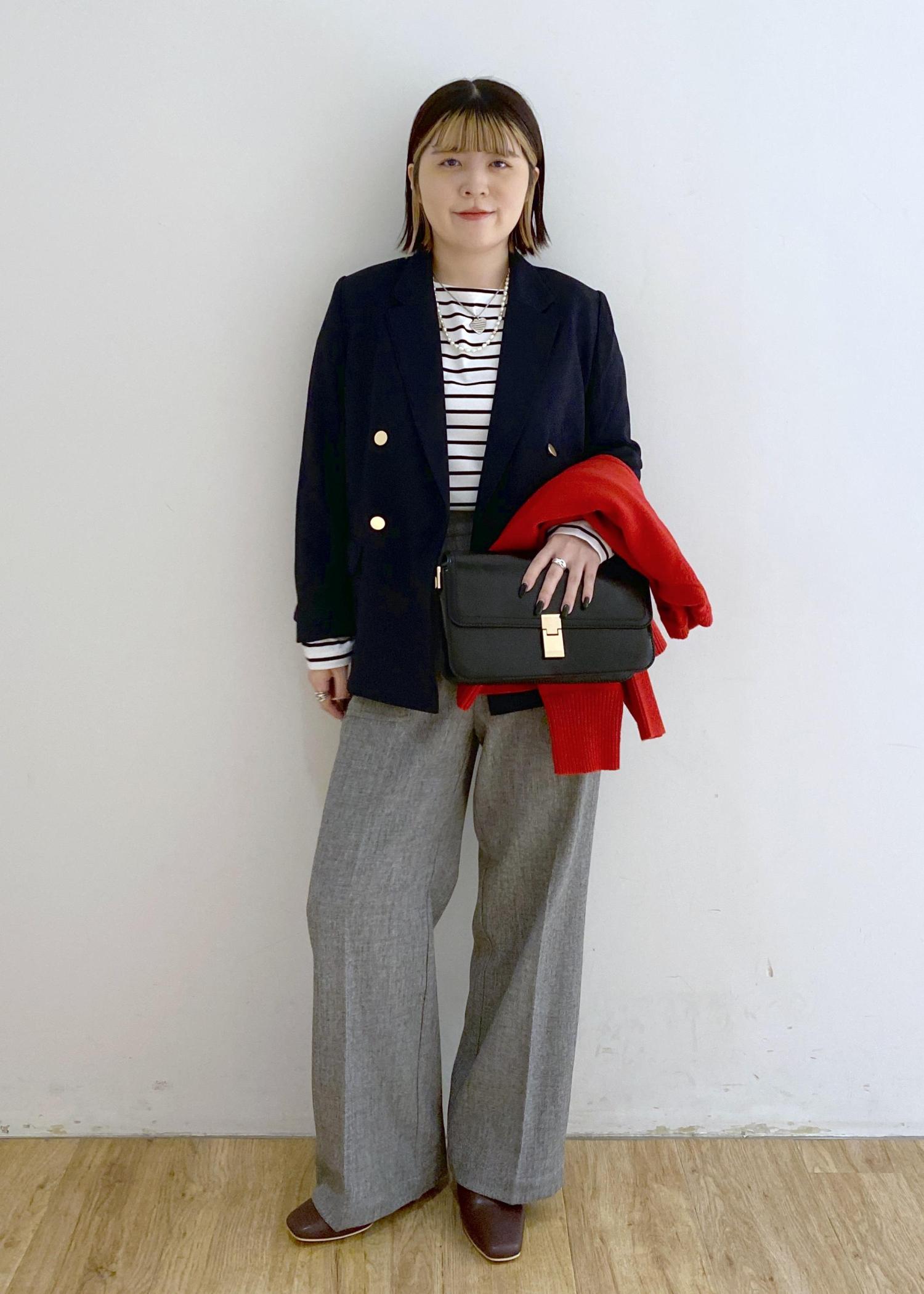 ROPÉ PICNICレディハンサムシリーズ ウールライク金ボタンジャケット(総裏地)/セットアップ対応ネイビー / L¥8,098レビュー156cmでLサイズ着用しましたが、余裕を持って着用できました。袖は長めに感じたのでまくるのが◎中に長袖を着ても二の腕の窮屈感はなかったです。