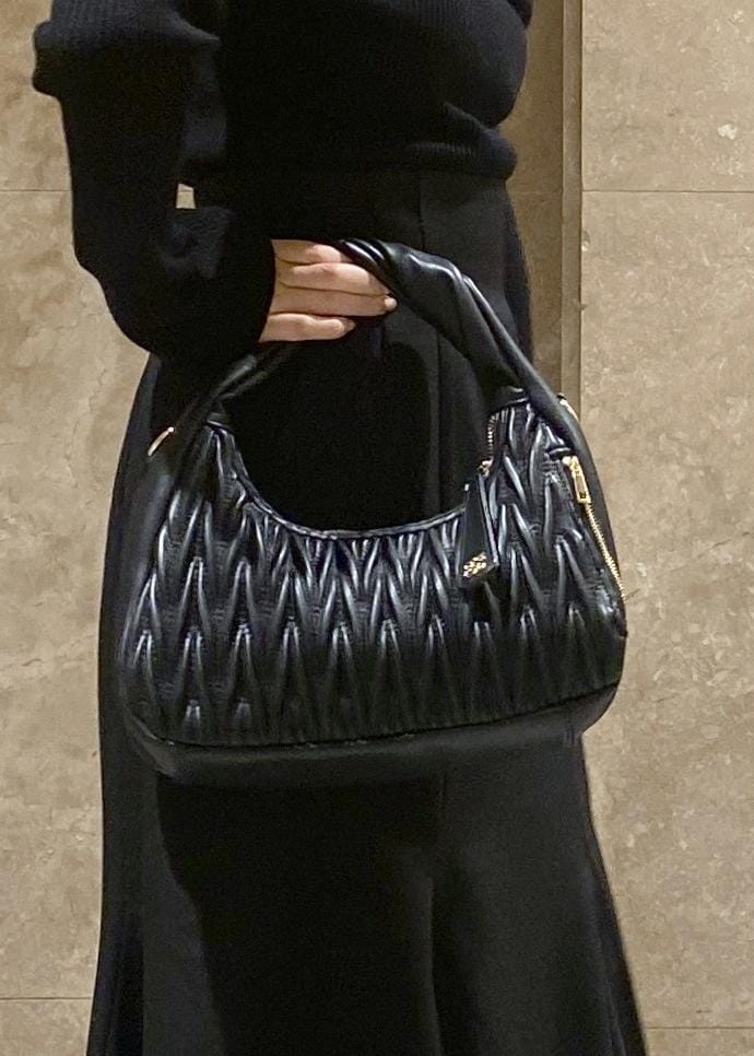 VIS【2WAY】ねじりハンドルキルティングバッグブラック / F¥7,909レビュー500mlのペットボトルや長財布が入るサイズ感です!コンパクトに見えますがたくさん収納出来るのでオススメです◎