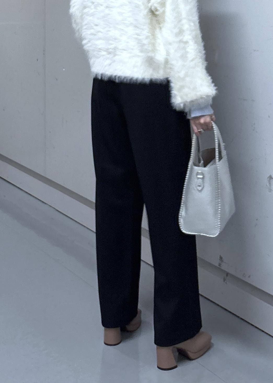 ストレートですがタックが入っていて腰周りは少しゆったりで若干裾にかけて細くなっている感覚。