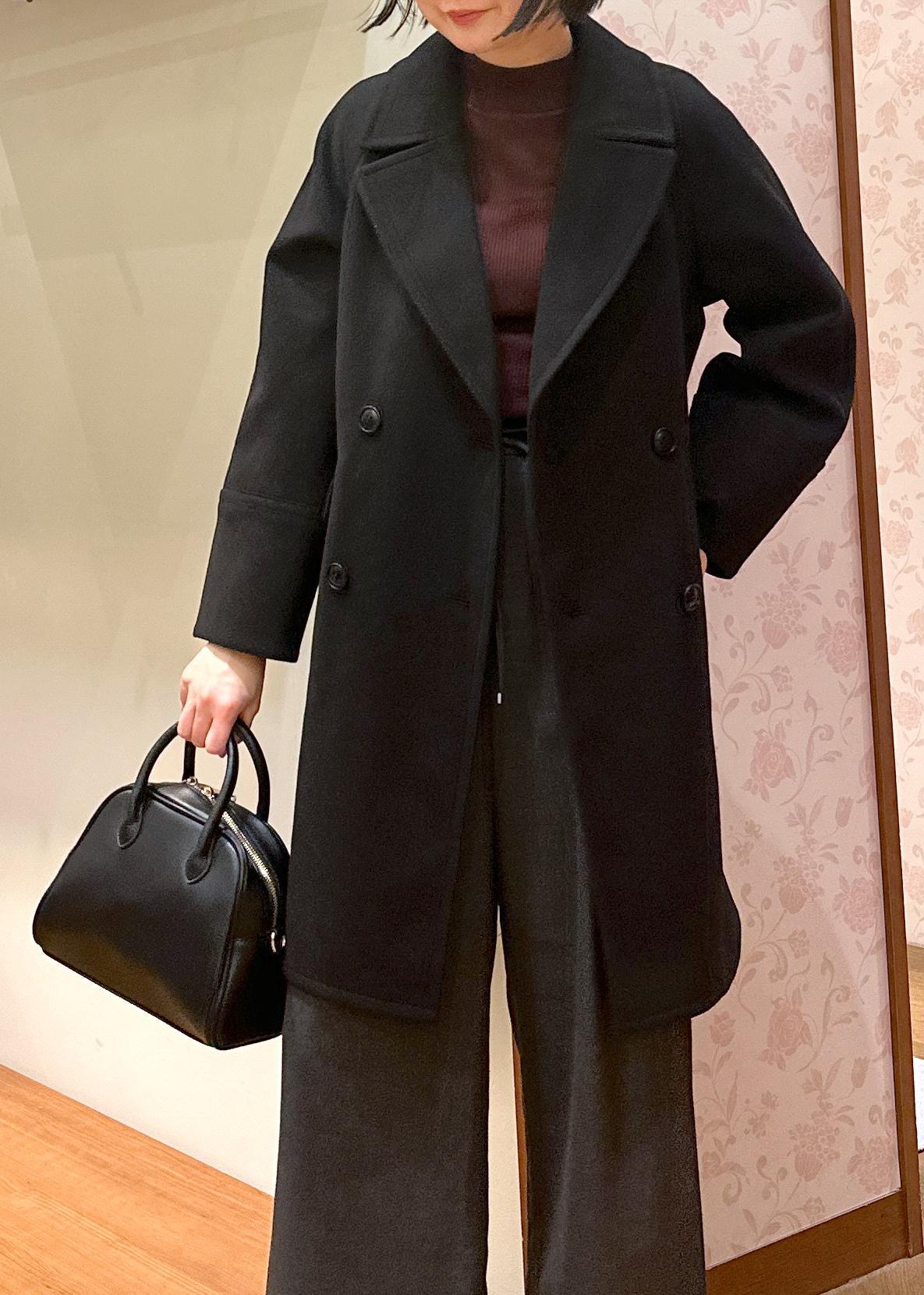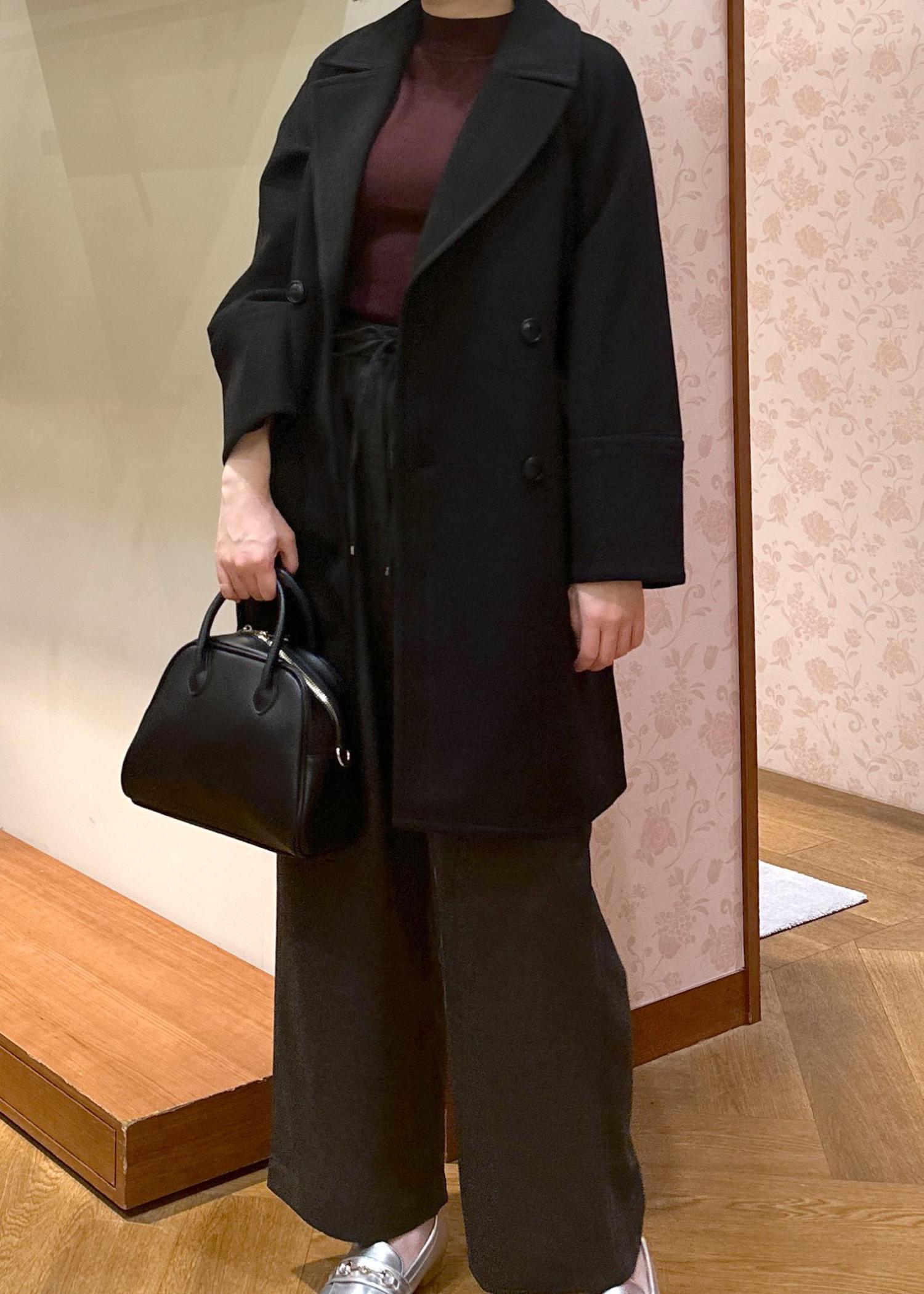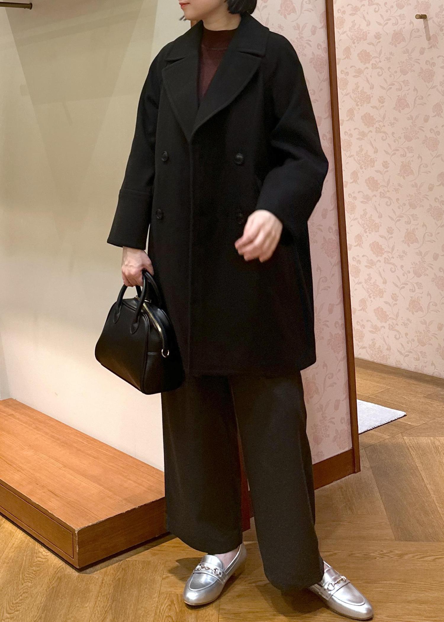 今回はコートをSサイズで着用、ワイドパンツと合わせてスタイリッシュにあわせてみました。