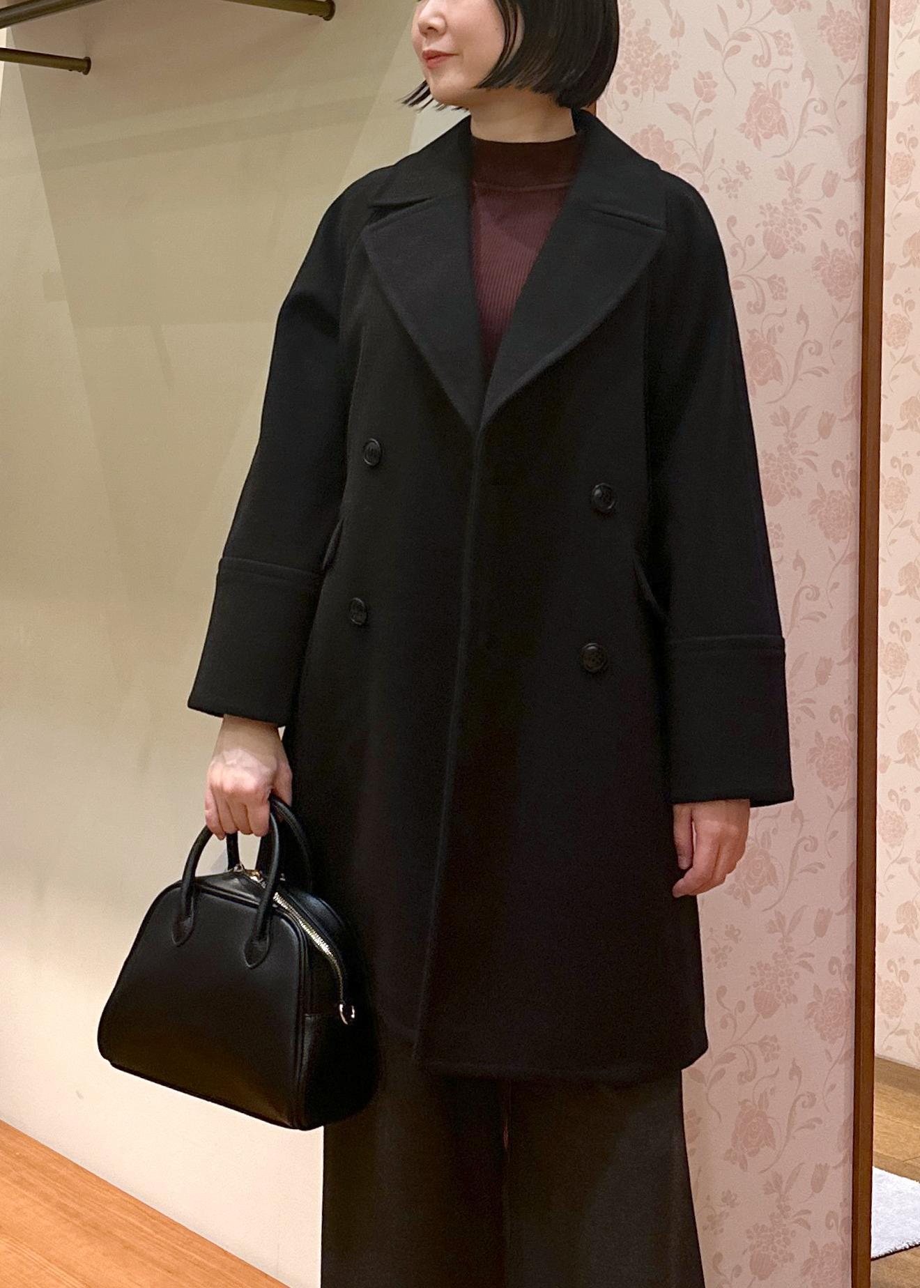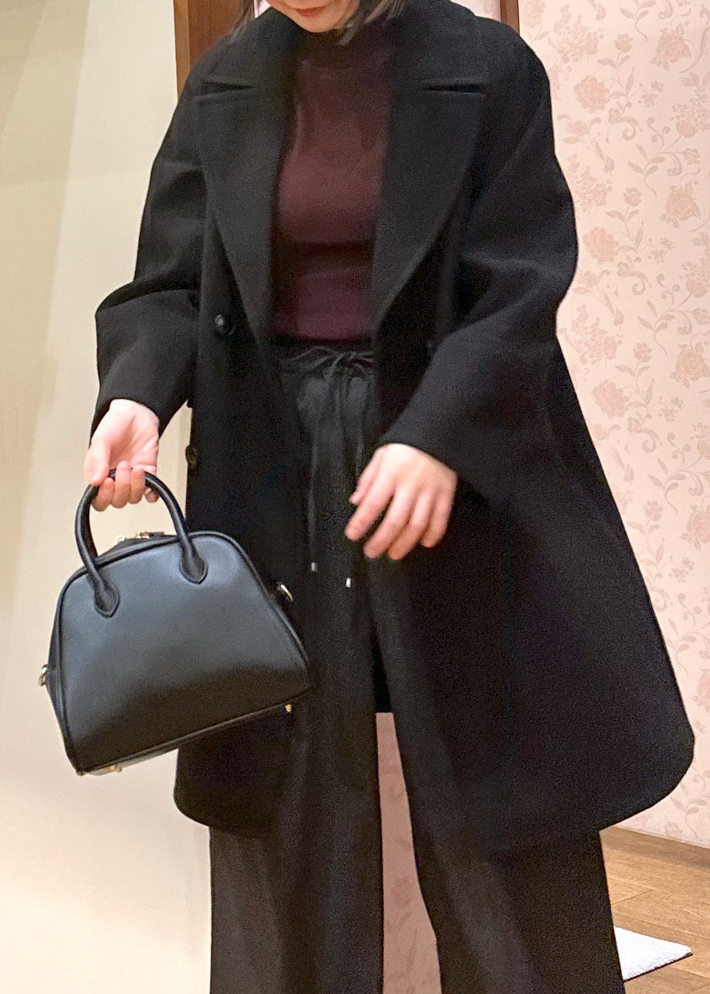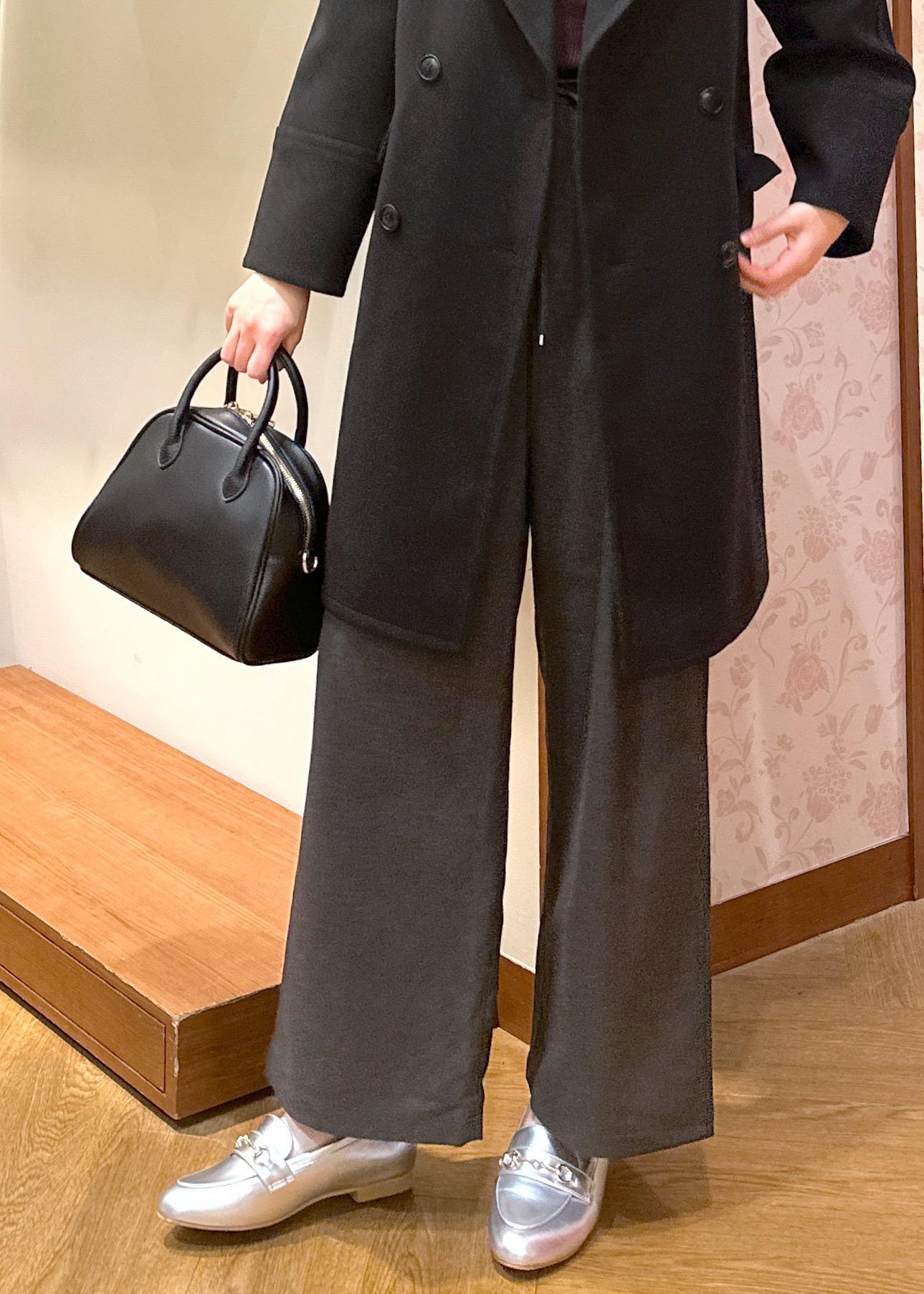 今回はコートをSサイズで着用、ワイドパンツと合わせてスタイリッシュにあわせてみました。