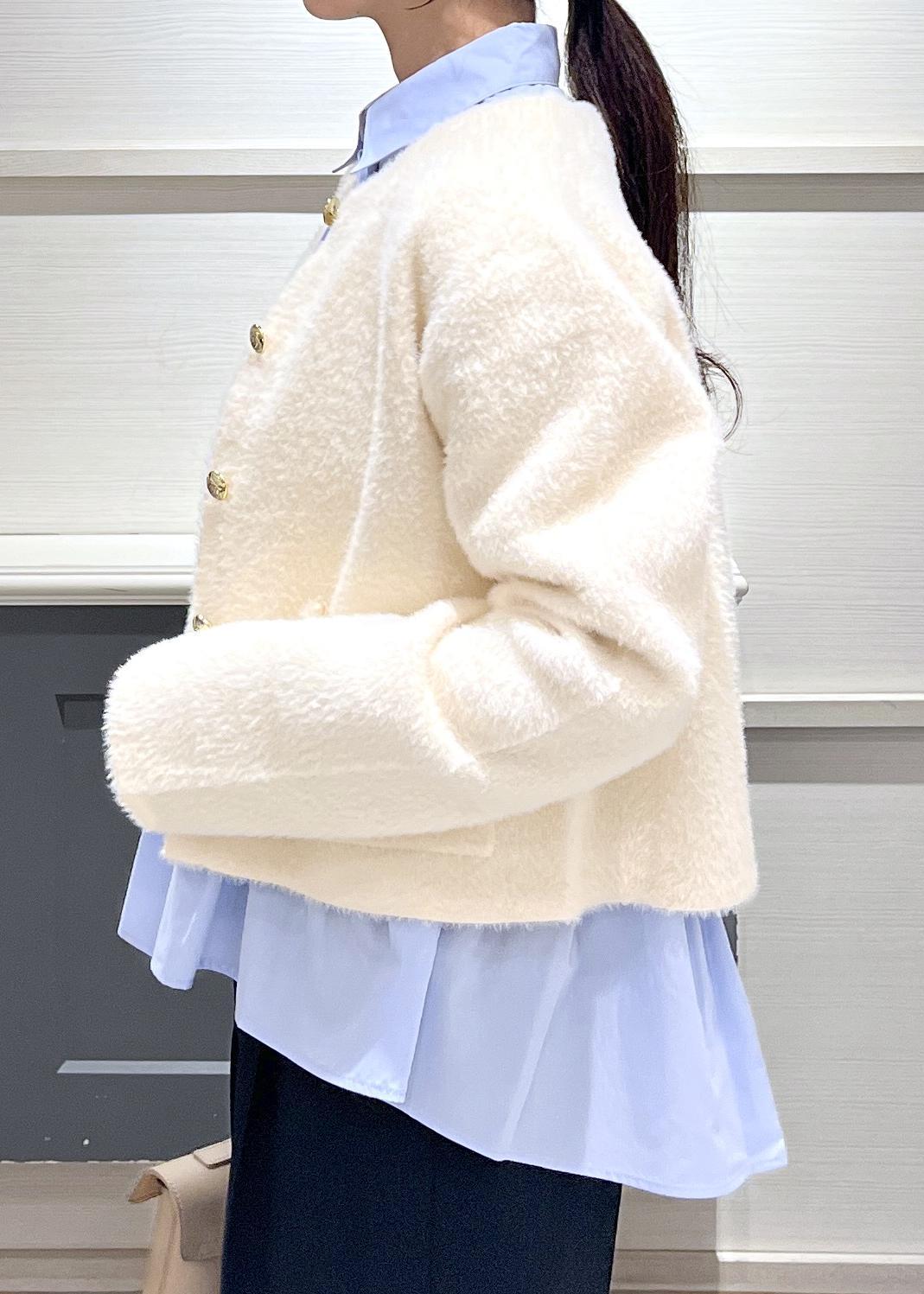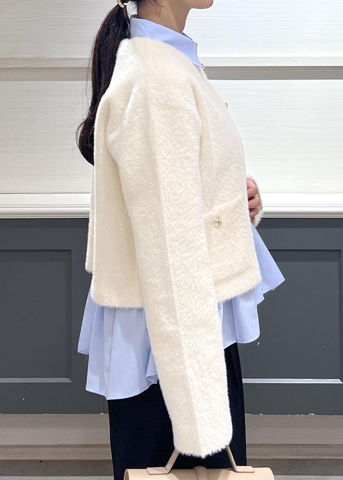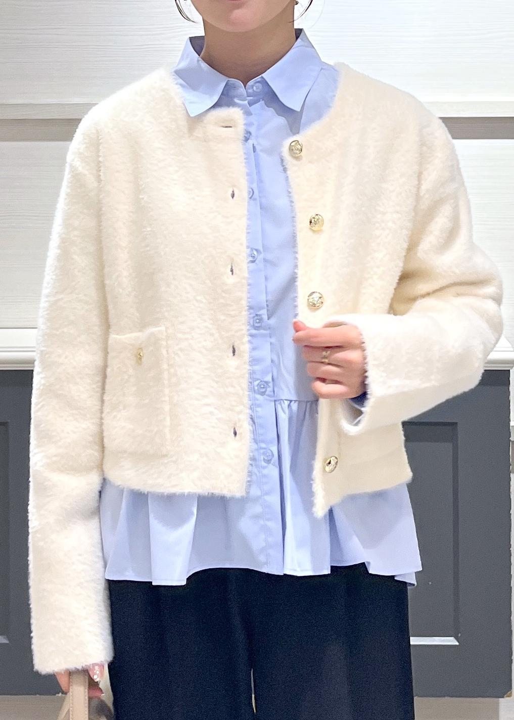 VIS接結ミニフェザーニットジャケットカーディガン/一部WEB限定カラーオフホワイト / F¥6,919レビュー156cmで腰が隠れる丈感です。