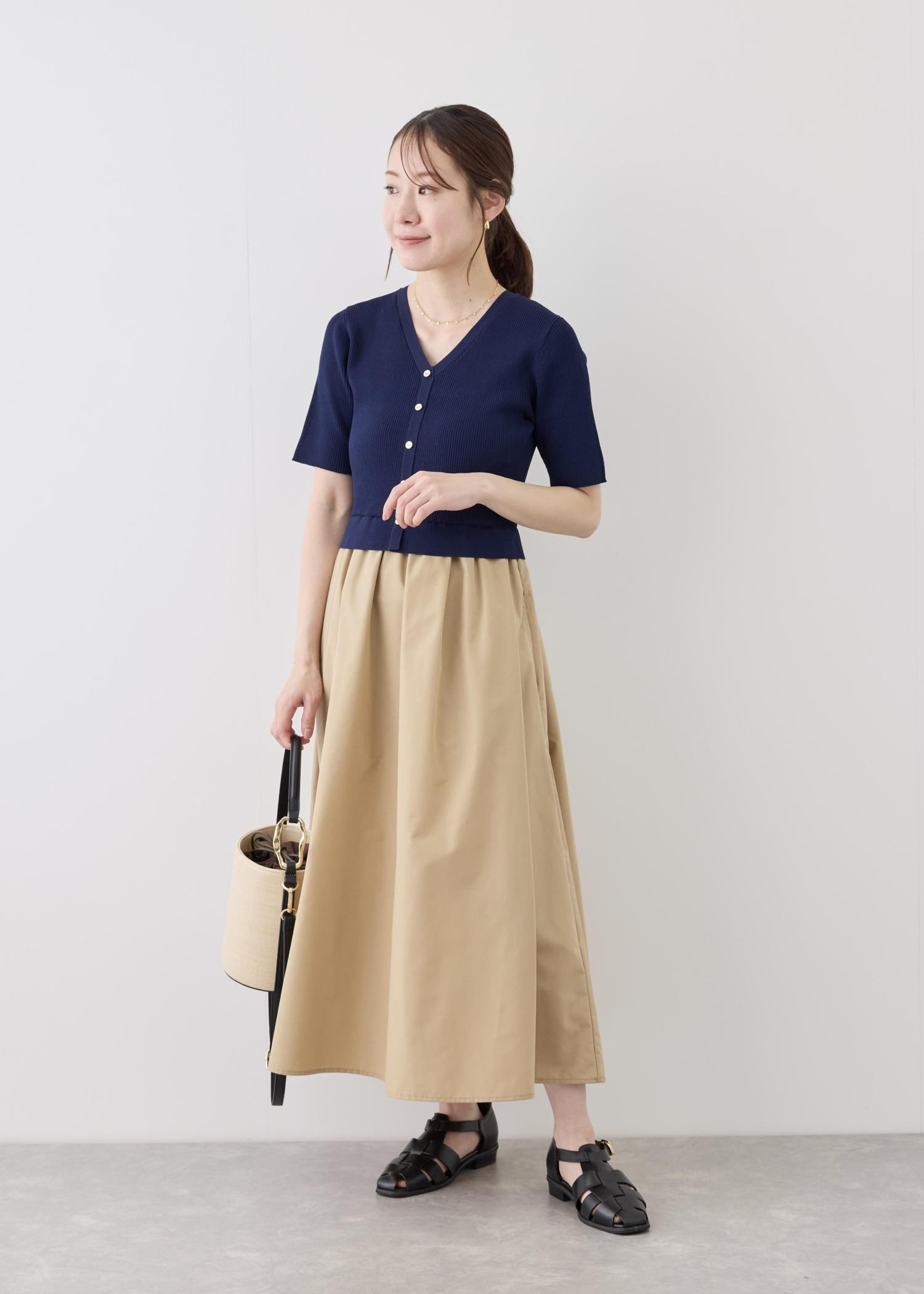 ウエストはリブニット仕様でフィット感がありました。スカートはさらっとしていて、スタイルアップしながらも着心地が良かったです。 -