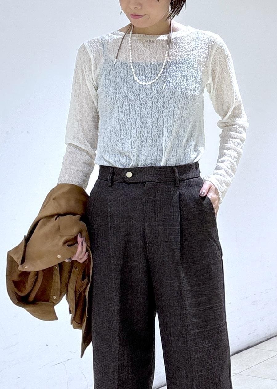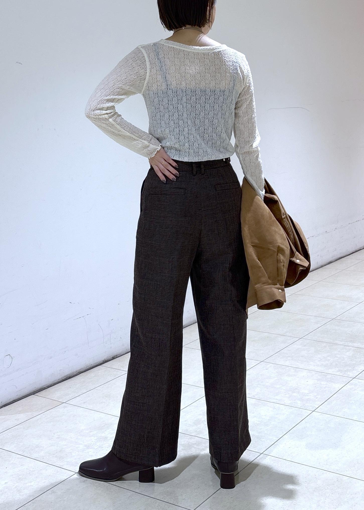 ウエストは程よくゆとりがあり、内側のボタンで詰めることができるのでトップスの厚みに合わせて調整しやすかったです。