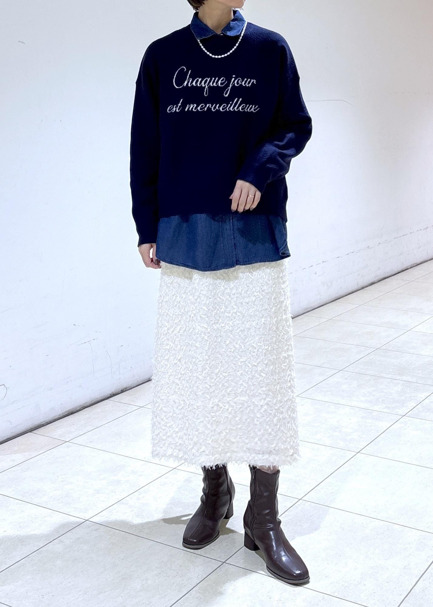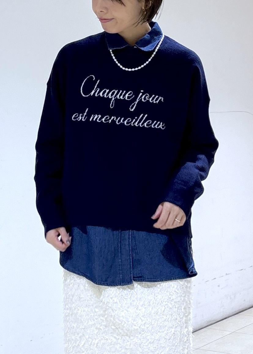 ロゴがポイントのニットを合わせた