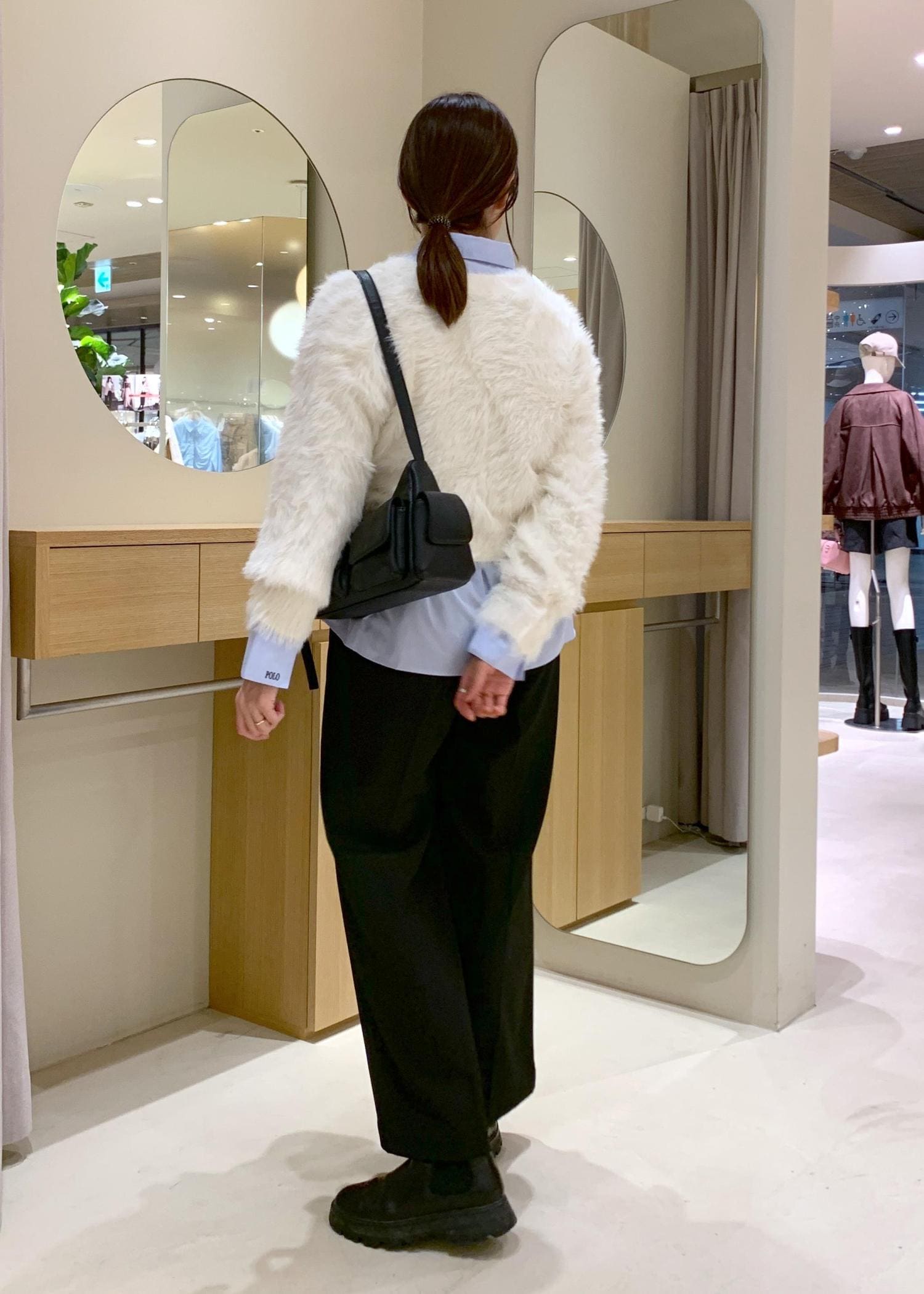 着膨れしてしまうほどの起毛ではないので、見た目はすっきりですよ。ワイドシルエットで体型を拾わないので、ショートブーツなども履きやすいですよ。