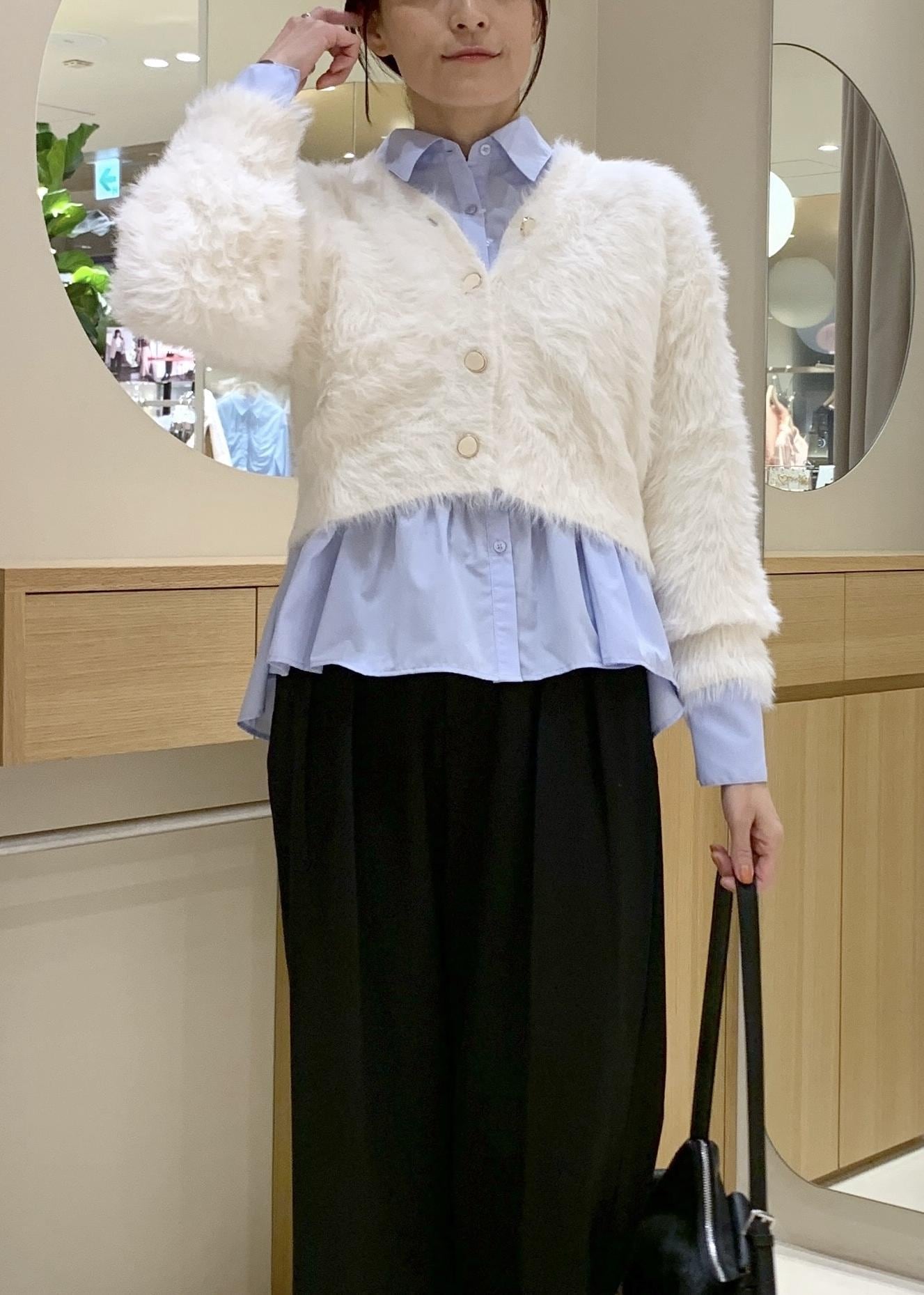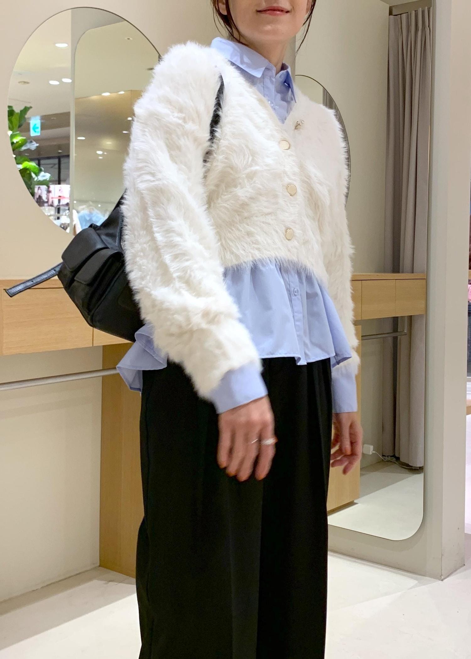 VISラビットファーVネックカーディガン/イージーケア・WEB限定カラーオフホワイト / F¥5,929レビューふわふわした柔らかい質感、着用していて軽さがあります。着膨れしてしまう程の肉厚感ではないので、シャツやタートルなどの重ね着がしやすいです。