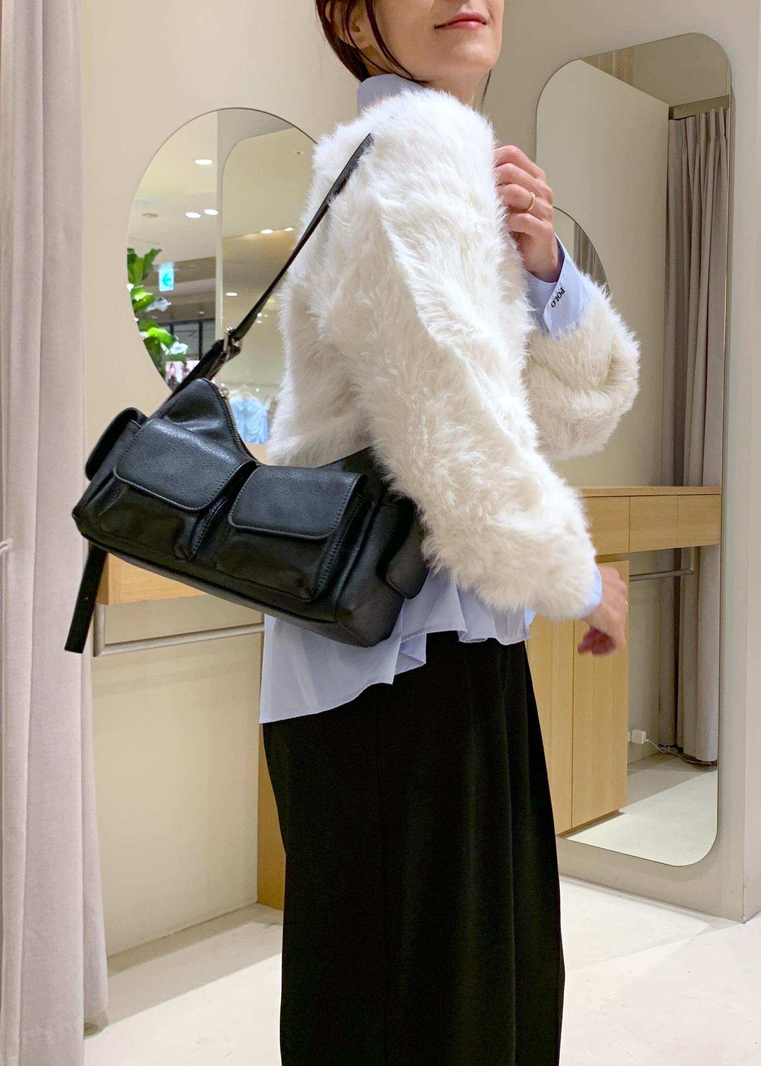 VIS【2WAY】ビンテージ合皮クアトロポケットショルダーバッグブラック / F¥6,919レビューコンパクト見えですが、マチもあり最低限の荷物が入りやすいです。細身のペットボトルも横入れできるサイズ感!