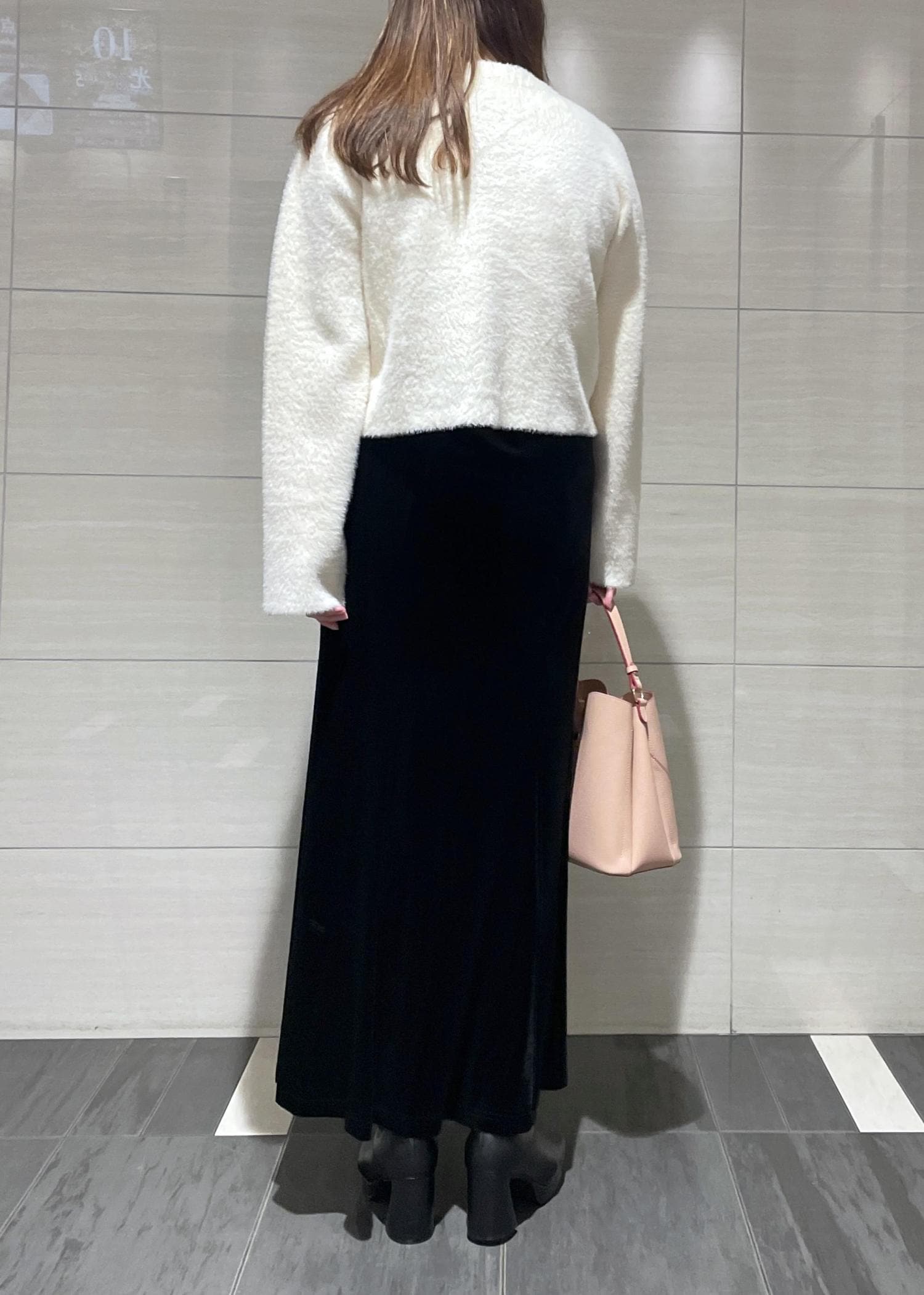 VISベロアナロースカートブラック / M¥6,589レビュー163cm Mサイズ着用でウエスト折り返しせずでくるぶしくらいの丈感です。高身長でも丈感がしっかりあるのでバランスが取りやすいです。柔らかい厚めのベロア生地なので身体のラインを拾わずに気になる腰回りもカバーしてくれます◎